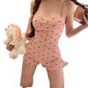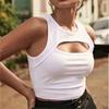 Chaleco adelgazante sexy y ajustado con estampado de lazo hueco para mujer, diseño moderno con hombros descubiertos y tirantes pequeños, para primavera y verano
