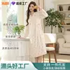 Camisón de Algodón Puro Kimono Gasa de Doble Capa para Mujer Largo Medio Manga Larga Primavera y Otoño Verano Fino con Lazo Vestido para Casa