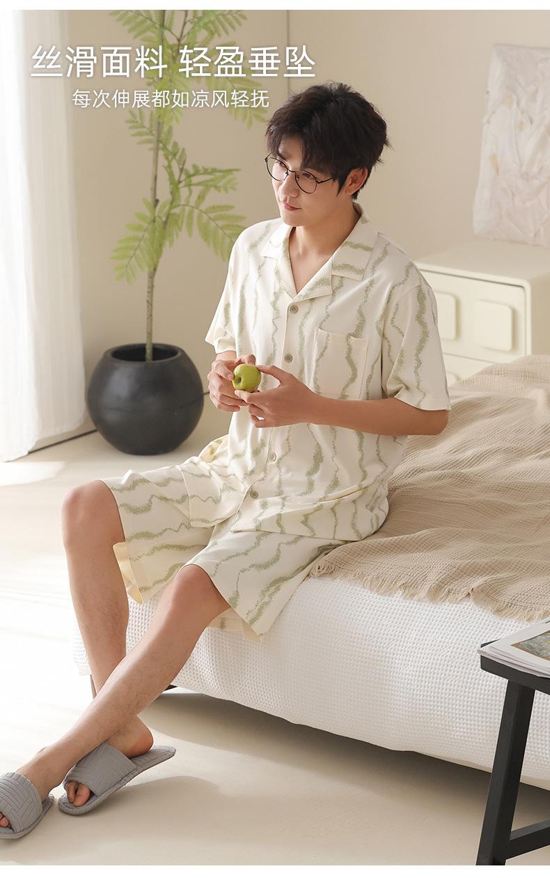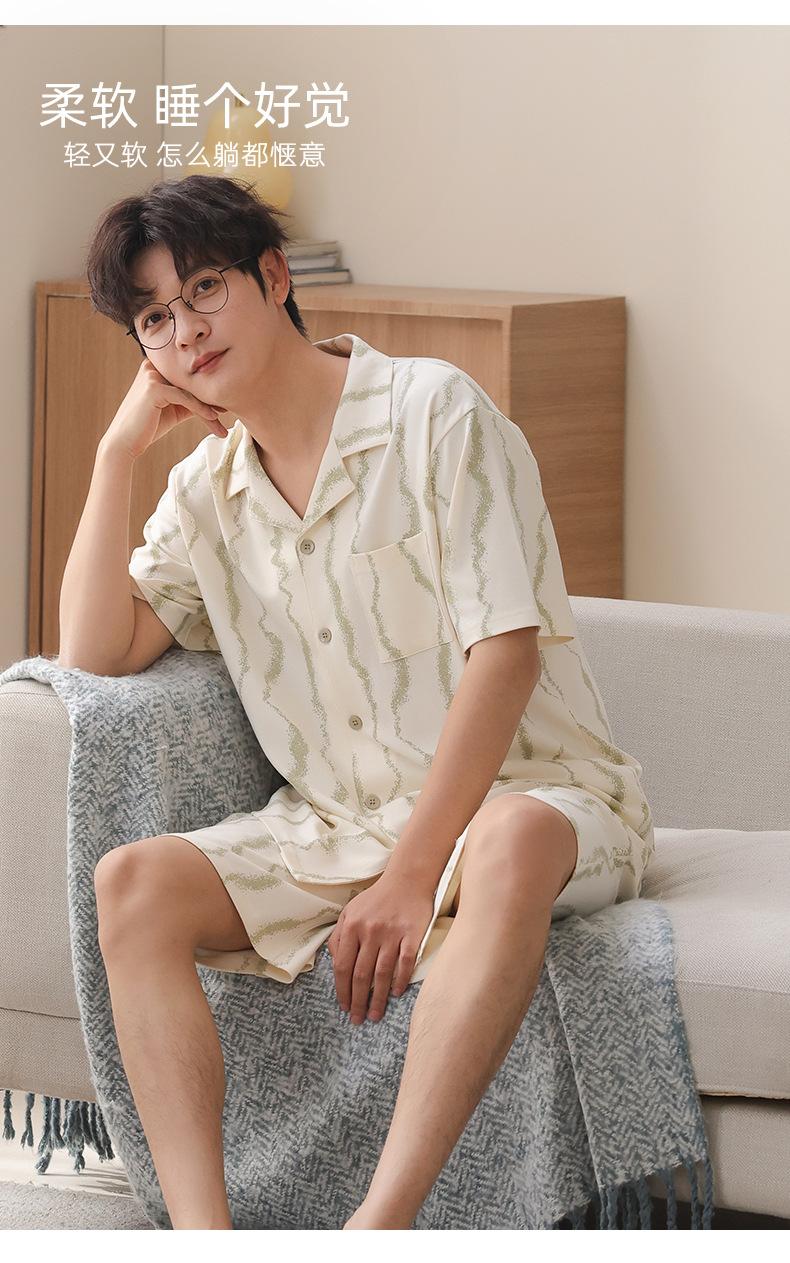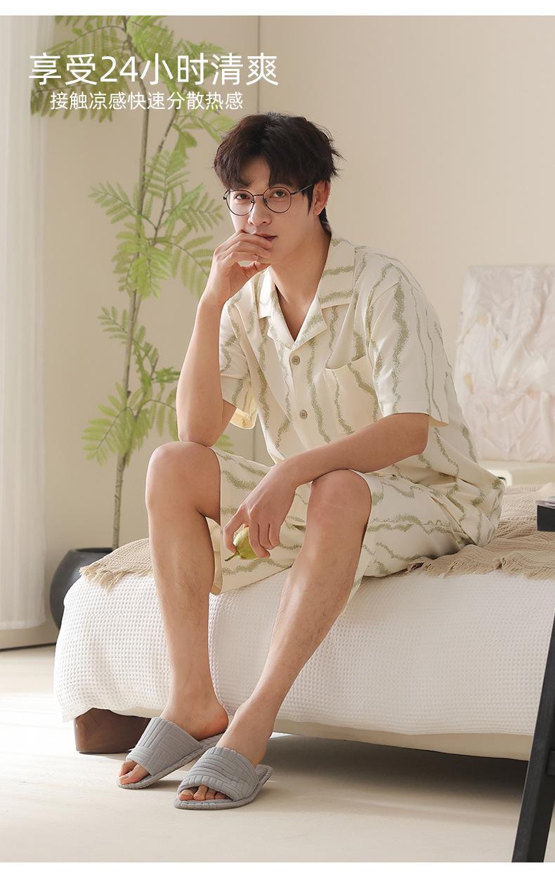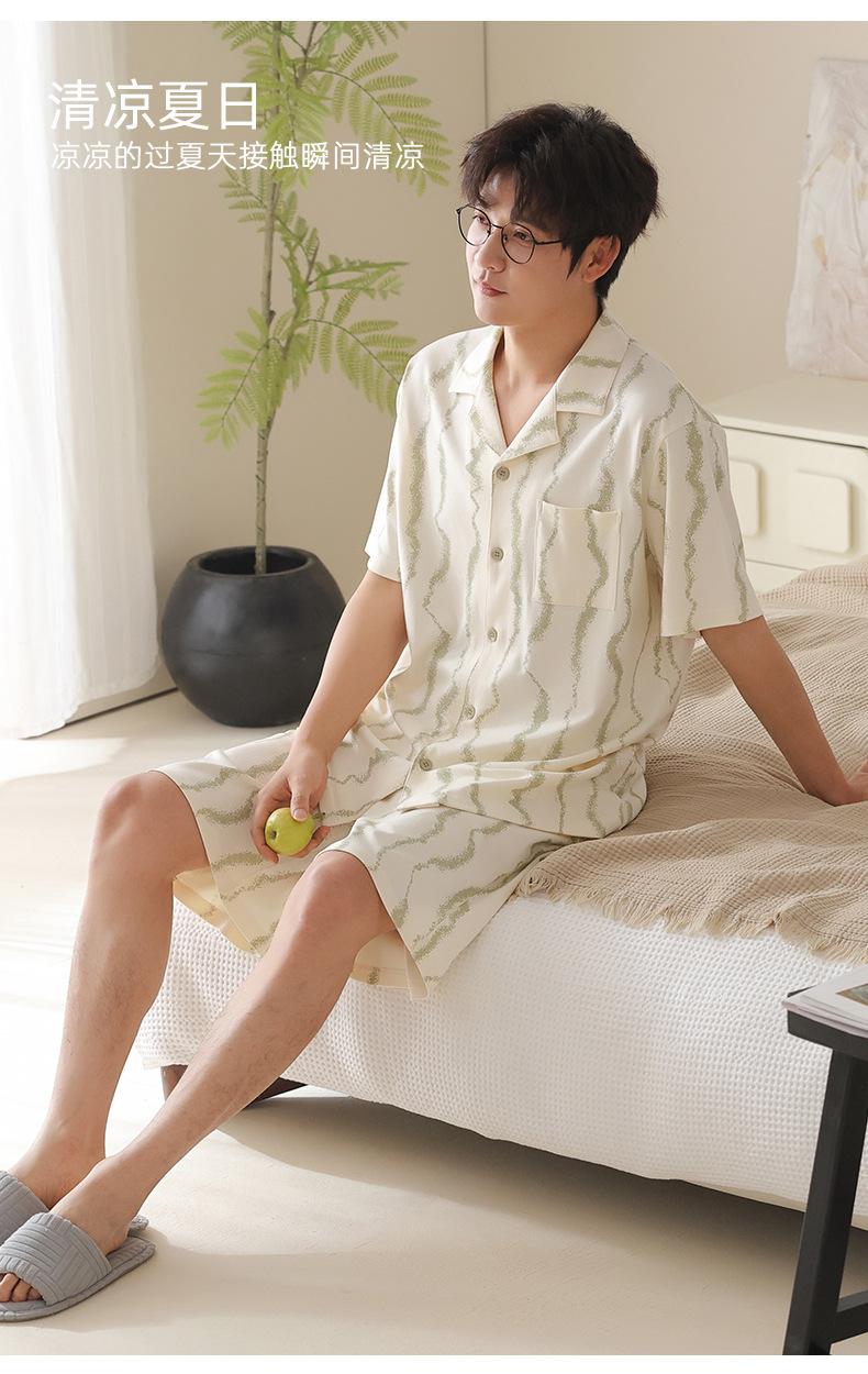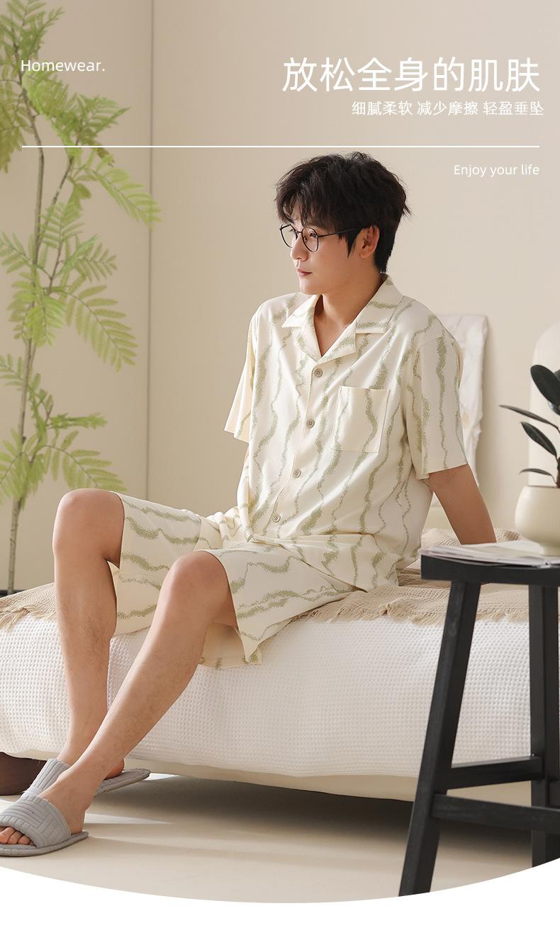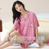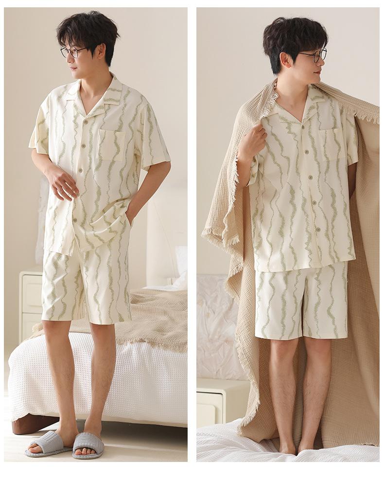 Pijama de verano 2025 nuevo, cárdigan holgado a rayas sencillo, ropa de abrigo de manga corta