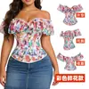Corsé de hombros con volantes de color europeo y americano, corsé Palace, moldeador corporal floral para mujer