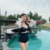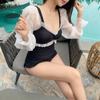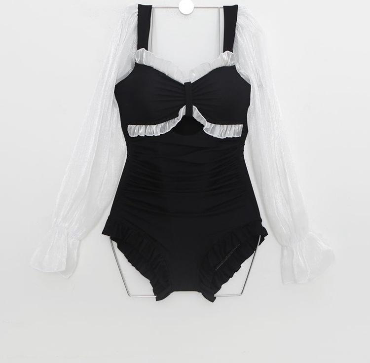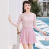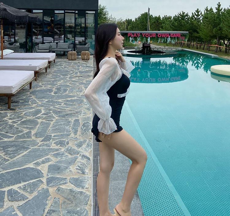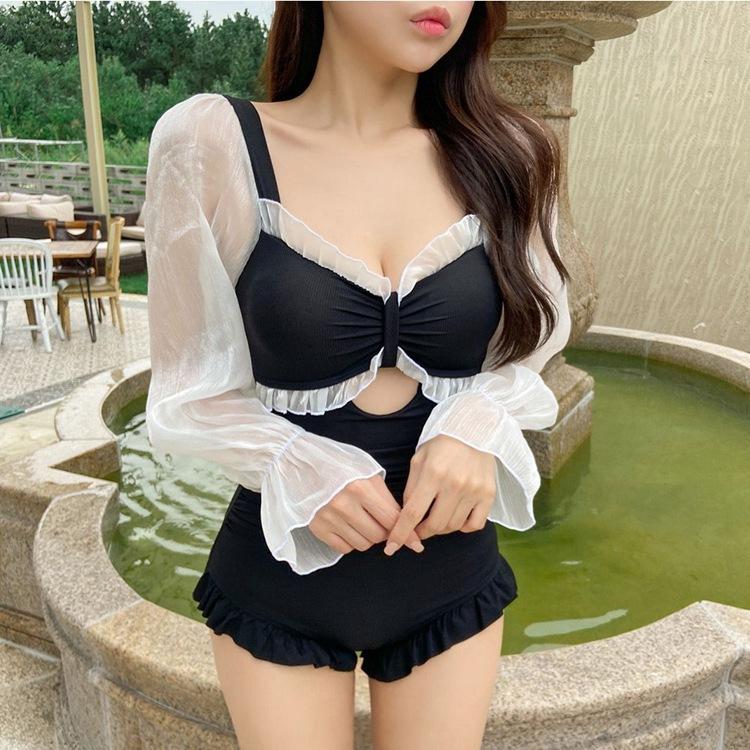 Traje de Baño Nuevo 2024 para Mujer Unido Super Hada Sexy Manga Larga Estudiante Conservador Cubre Vientre Adelgazante Aguas Termales Pecho Pequeño Traje de Baño