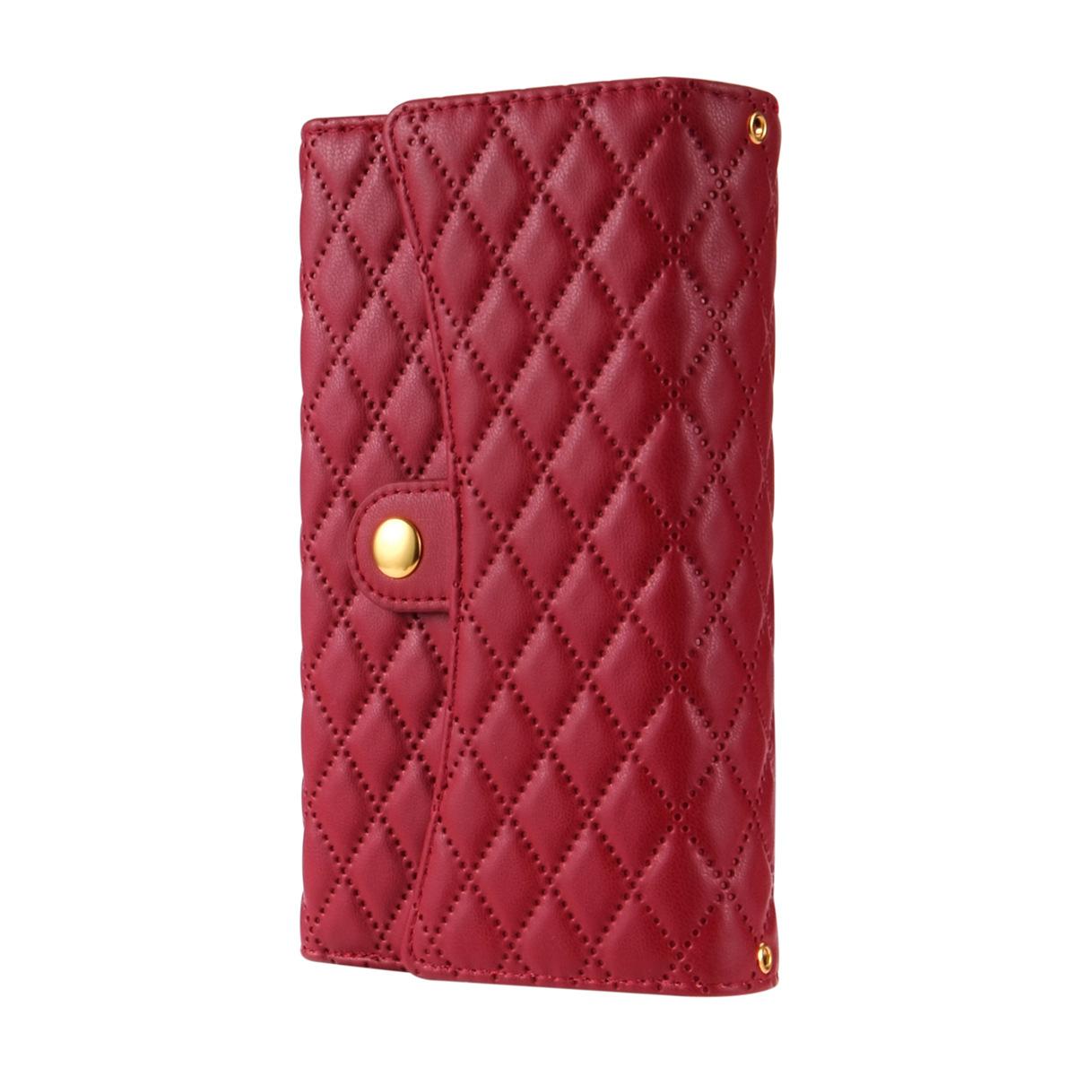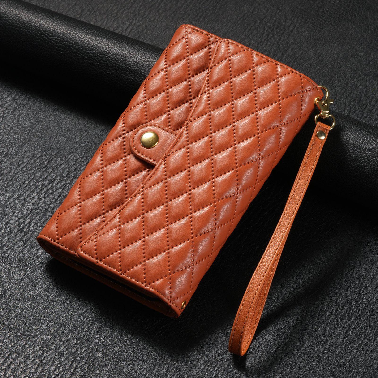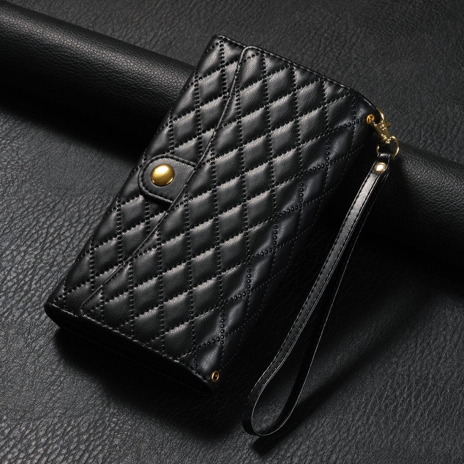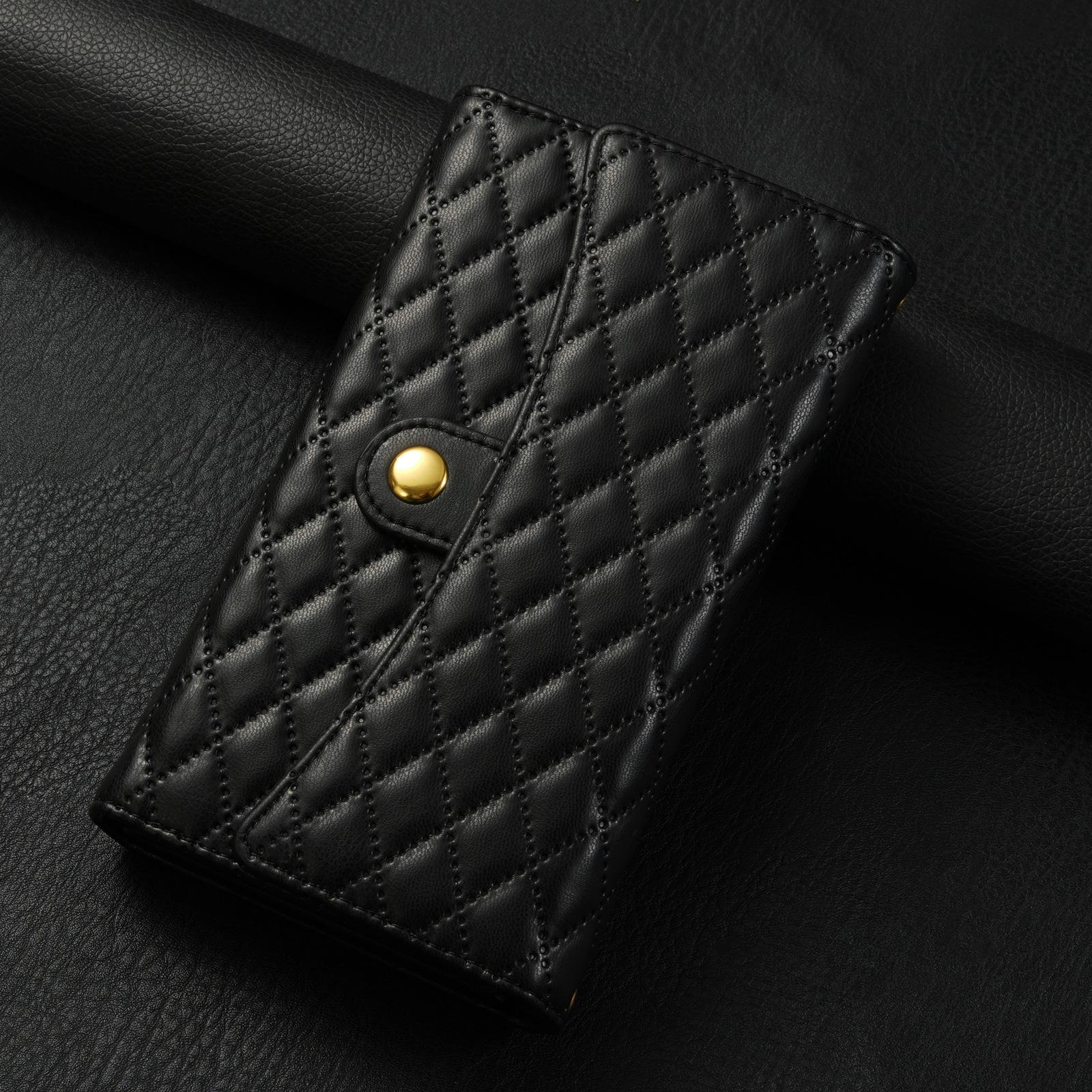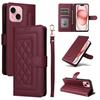 Funda de cuero para teléfono móvil compatible con iPhone 14 Pro/15 Pro Max, con diseño de rombos, con tarjetero y cordón.