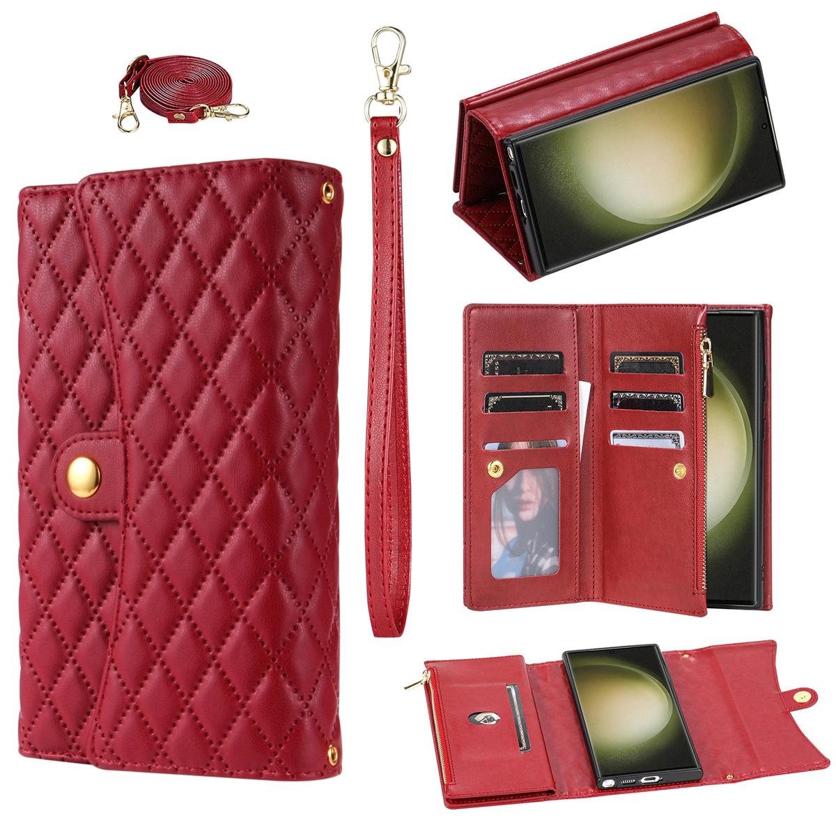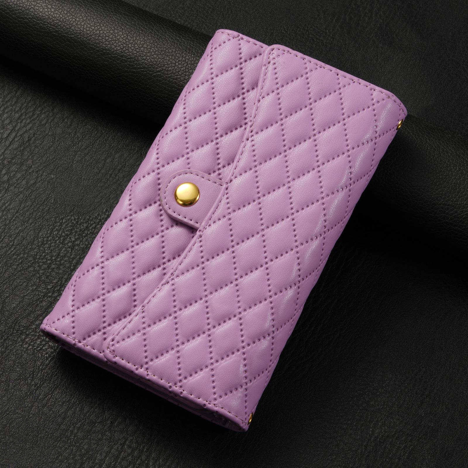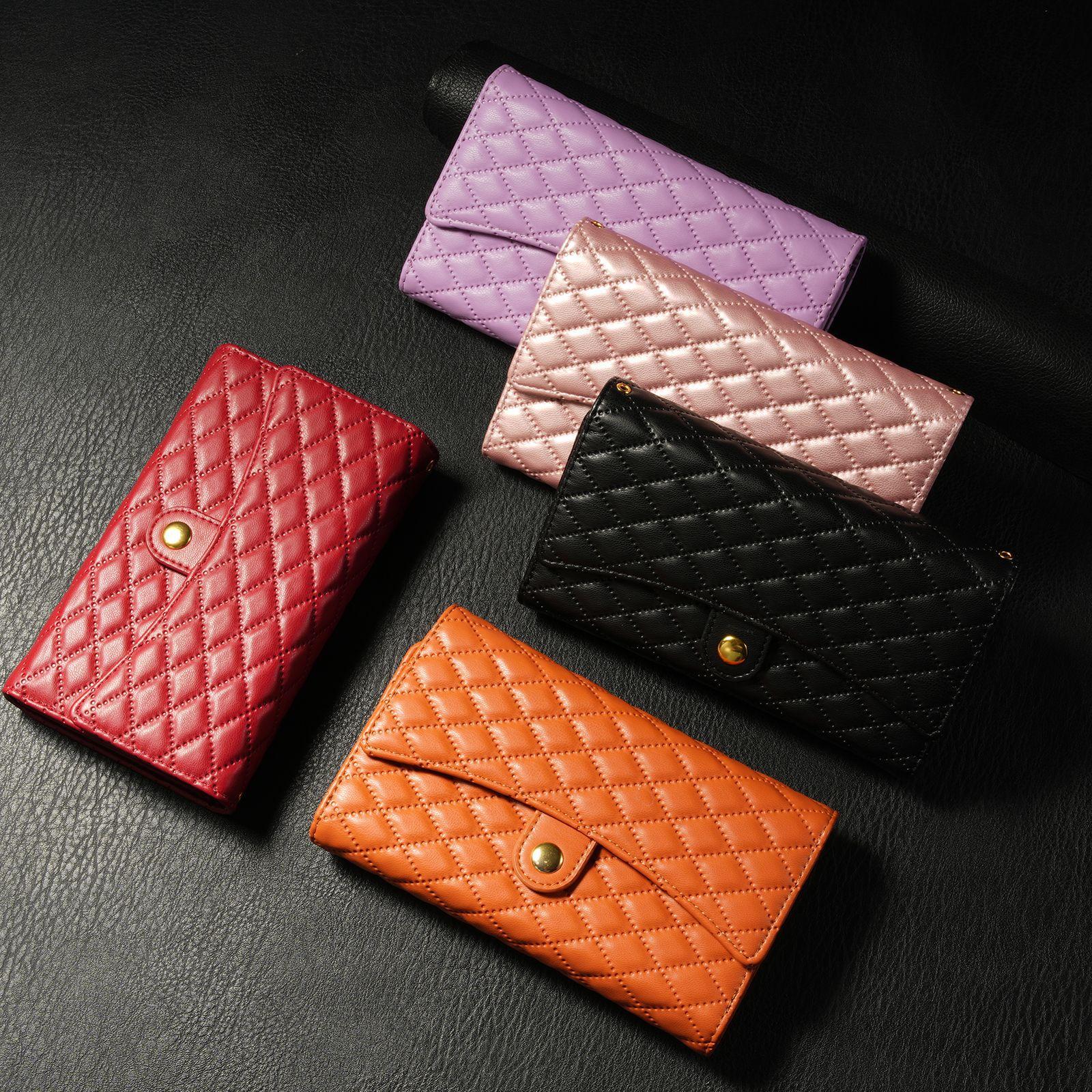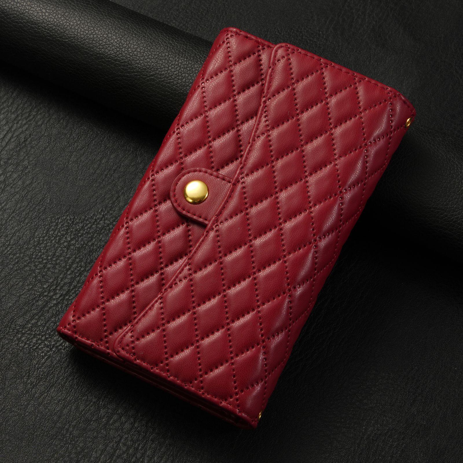 Funda de cuero para teléfono móvil compatible con iPhone 14 Pro/15 Pro Max, con diseño de rombos, con tarjetero y cordón.