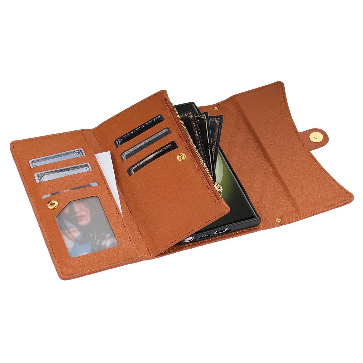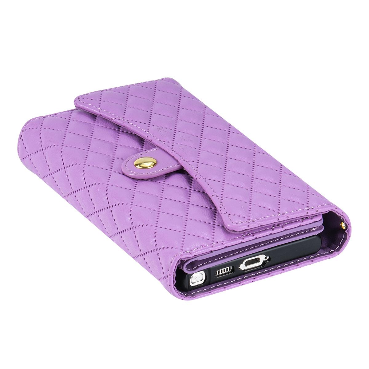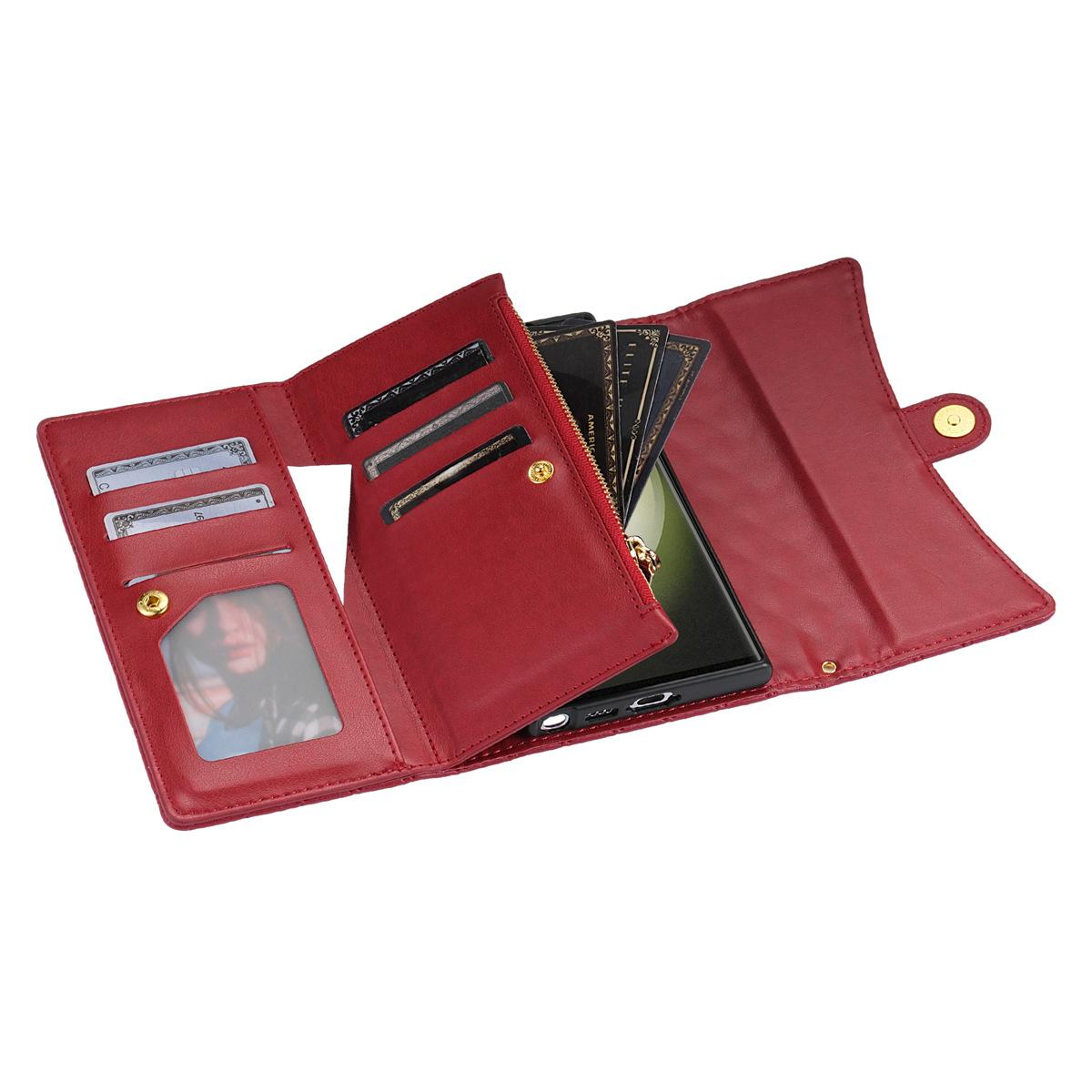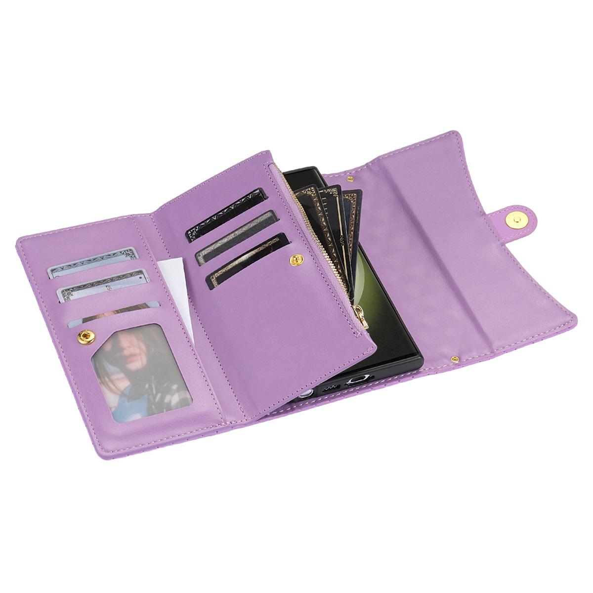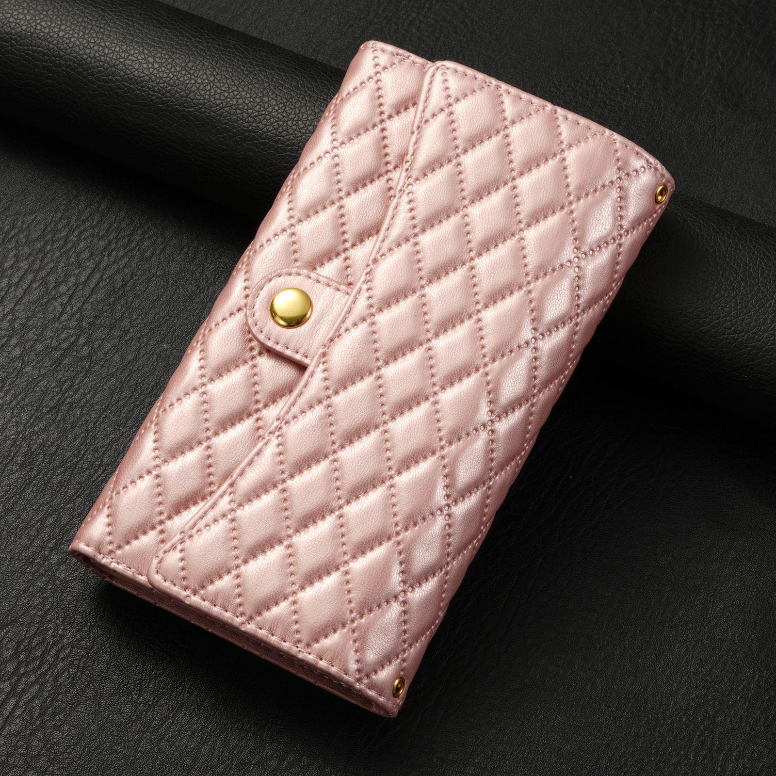 Funda de cuero para teléfono móvil compatible con iPhone 14 Pro/15 Pro Max, con diseño de rombos, con tarjetero y cordón.