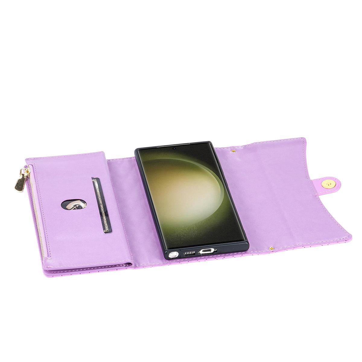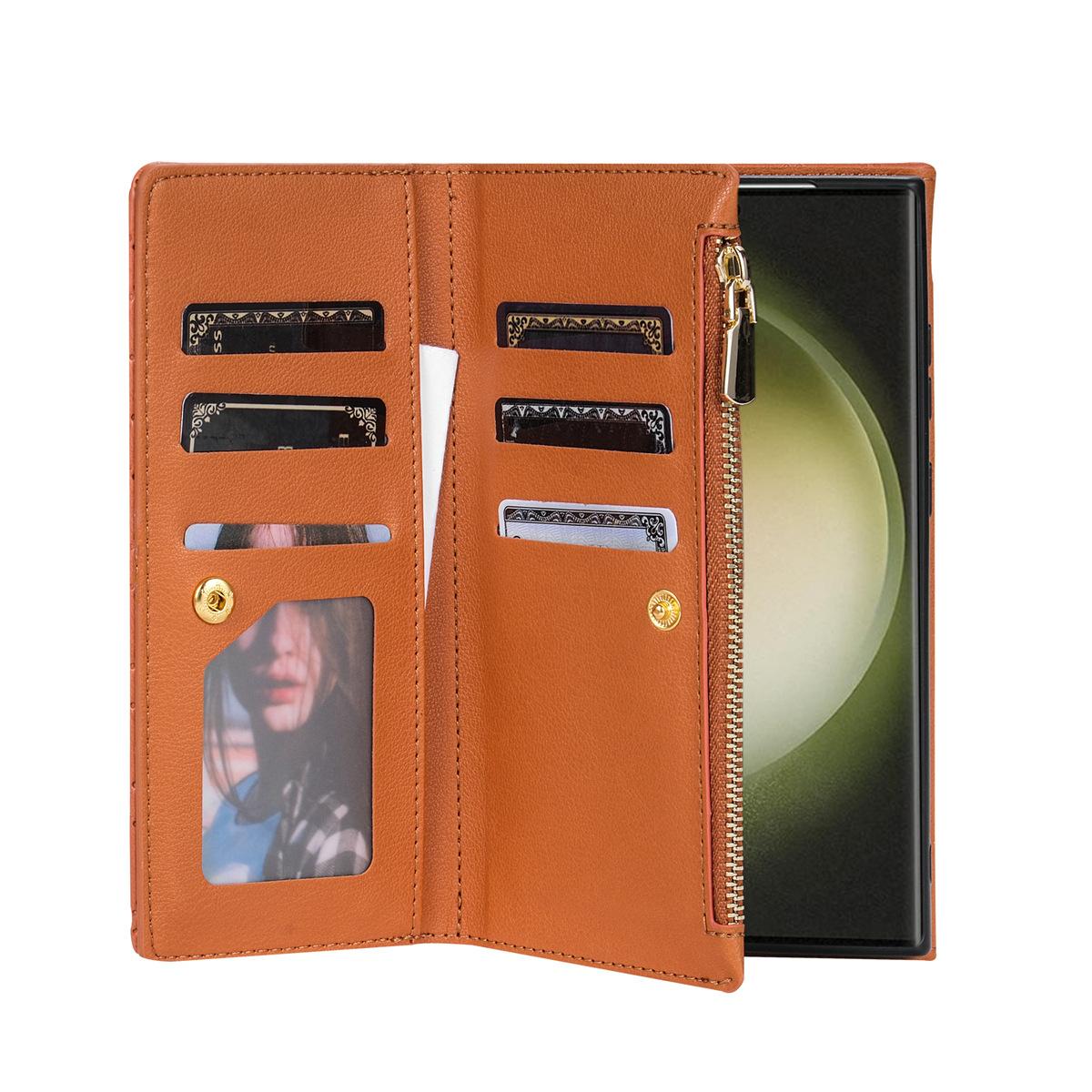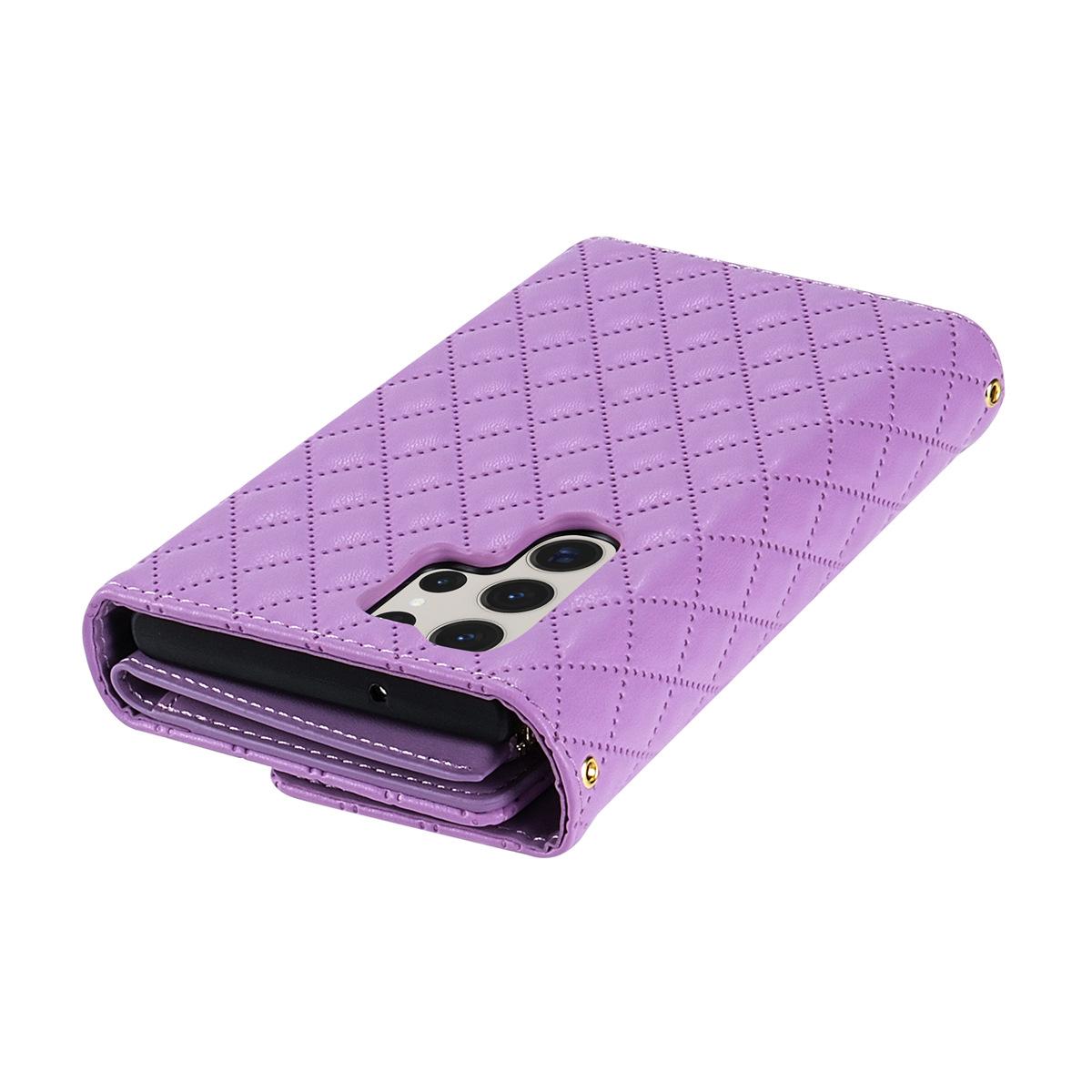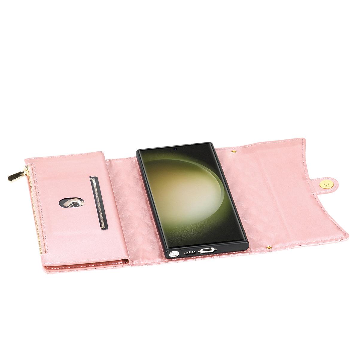 Funda de cuero para teléfono móvil compatible con iPhone 14 Pro/15 Pro Max, con diseño de rombos, con tarjetero y cordón.