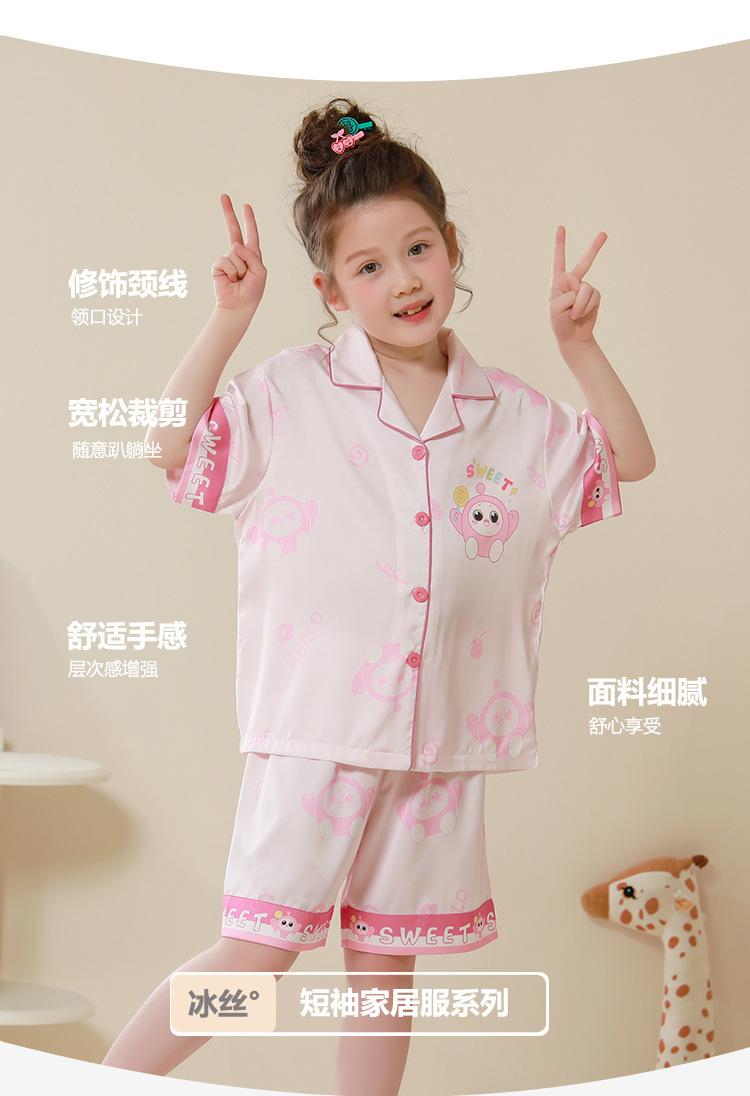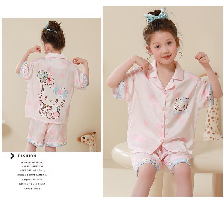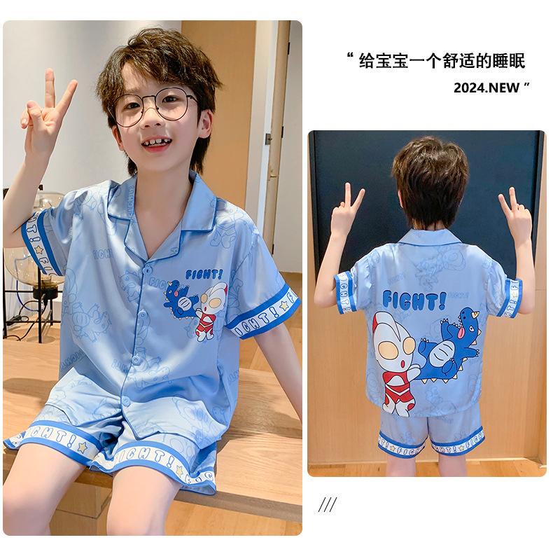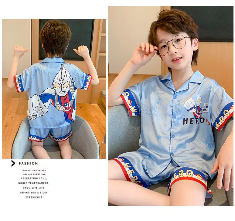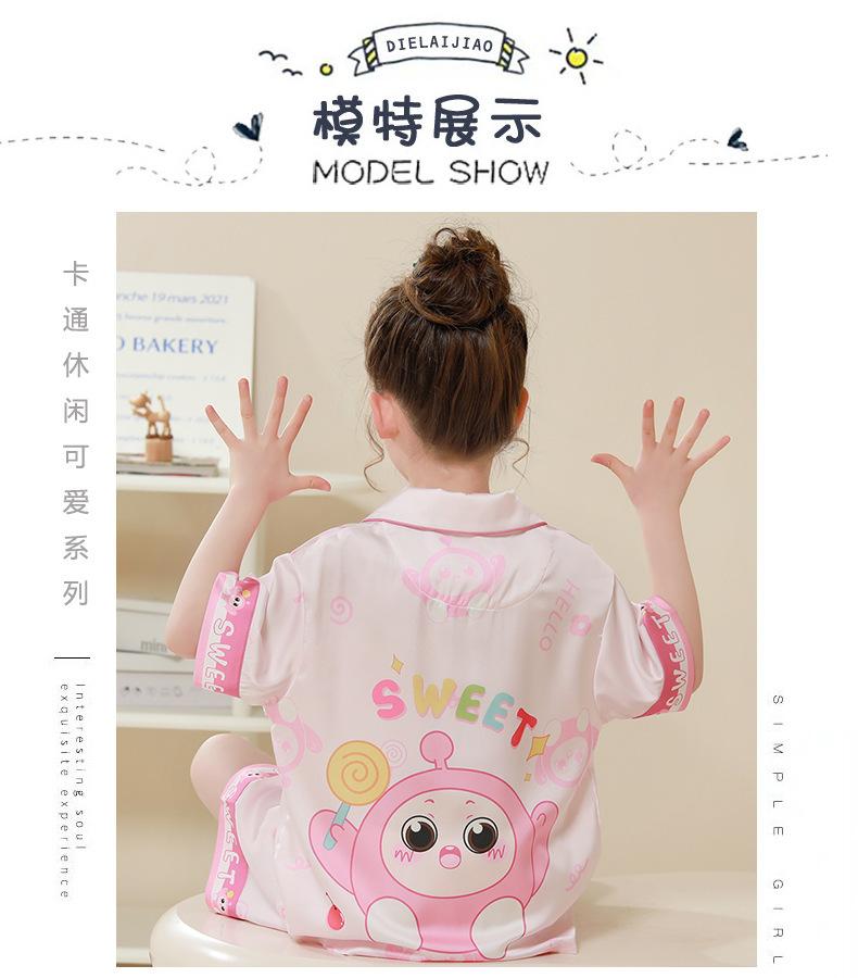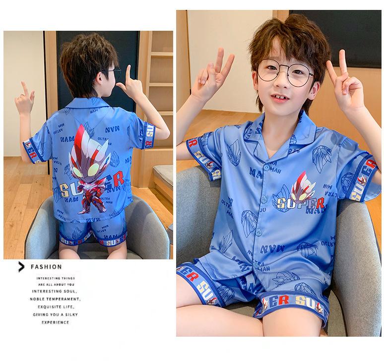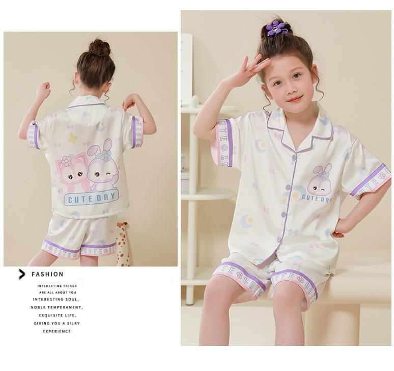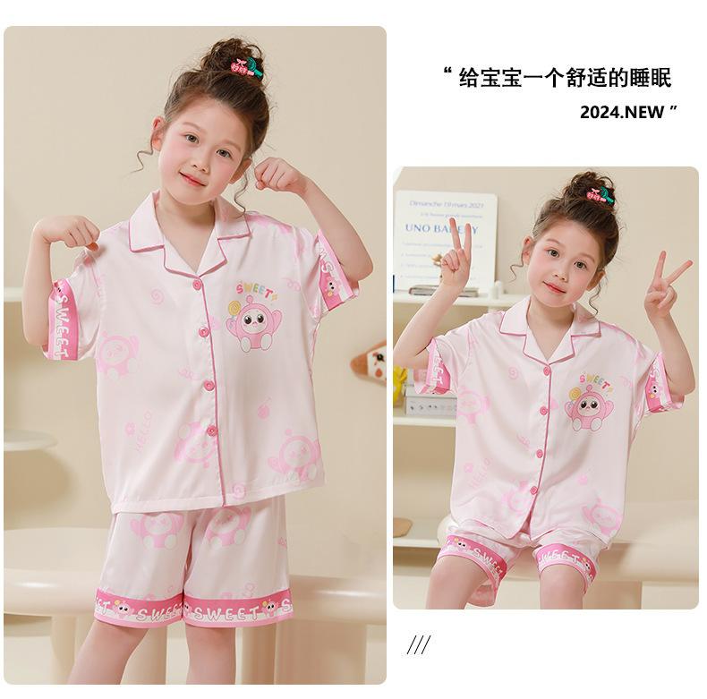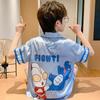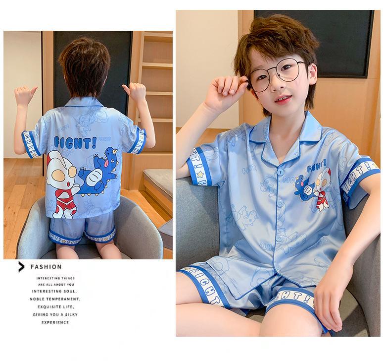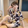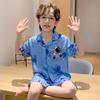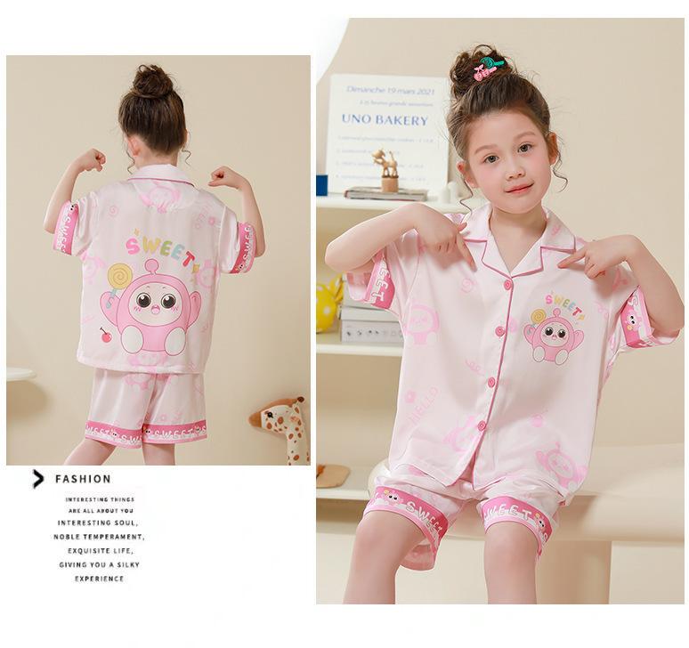 Pijamas de seda helada de manga corta con solapa para niños y niñas, cárdigan de dibujos animados, ropa de aire acondicionado, traje para el hogar