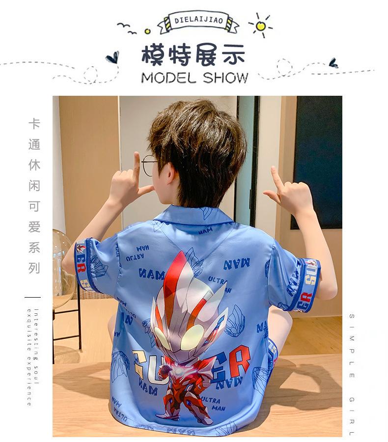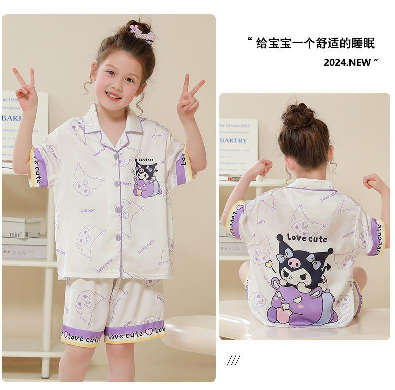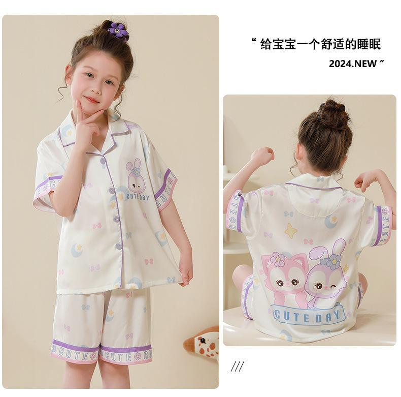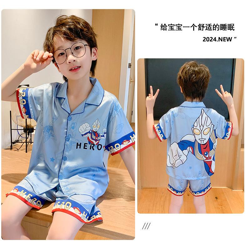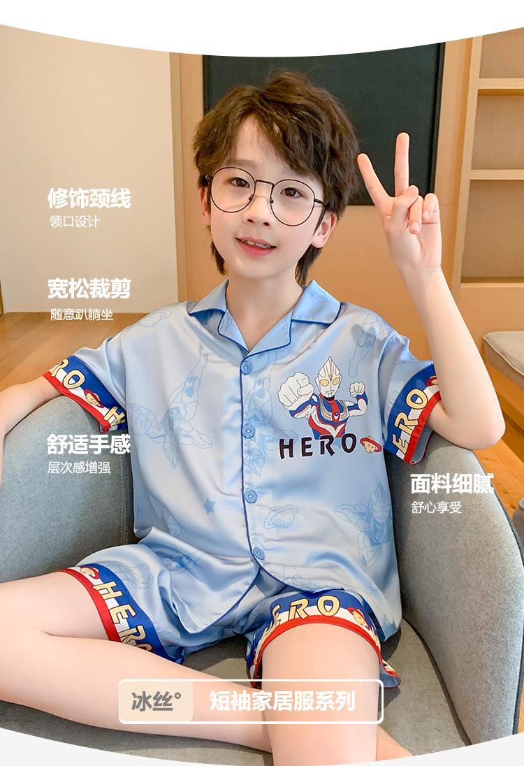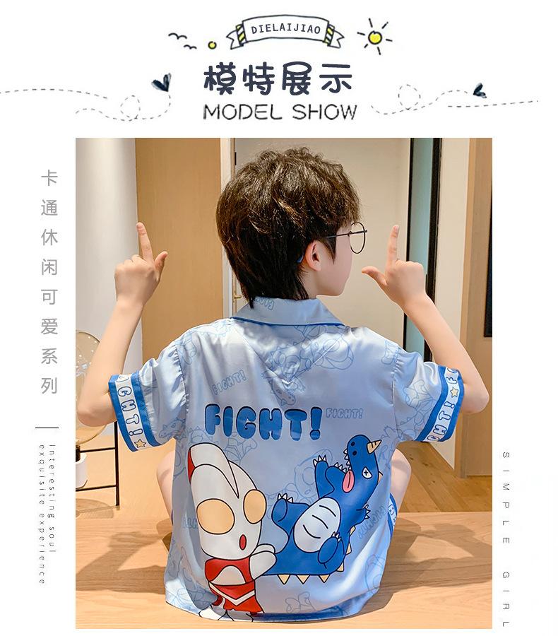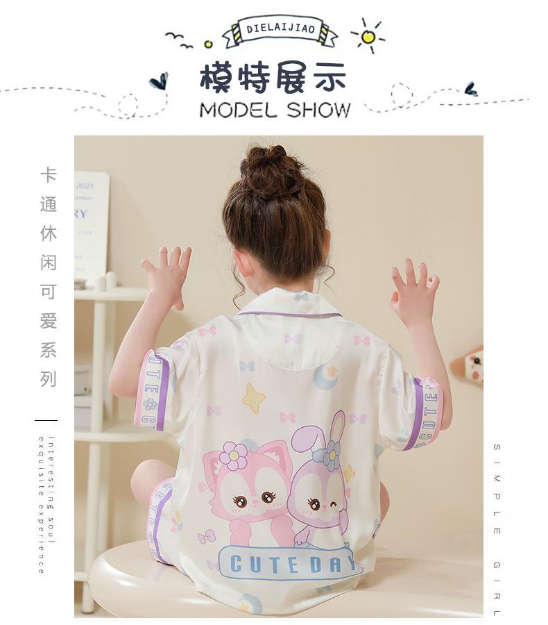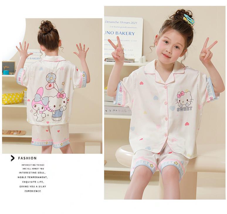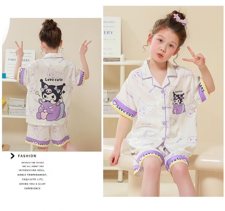 Pijamas de seda helada de manga corta con solapa para niños y niñas, cárdigan de dibujos animados, ropa de aire acondicionado, traje para el hogar