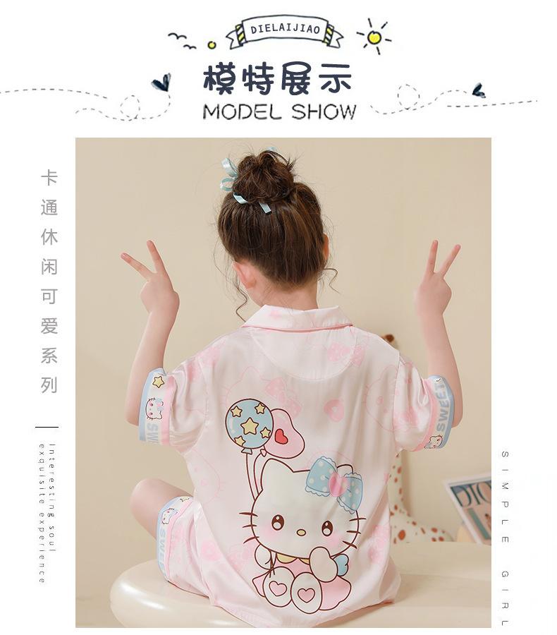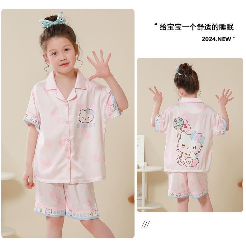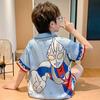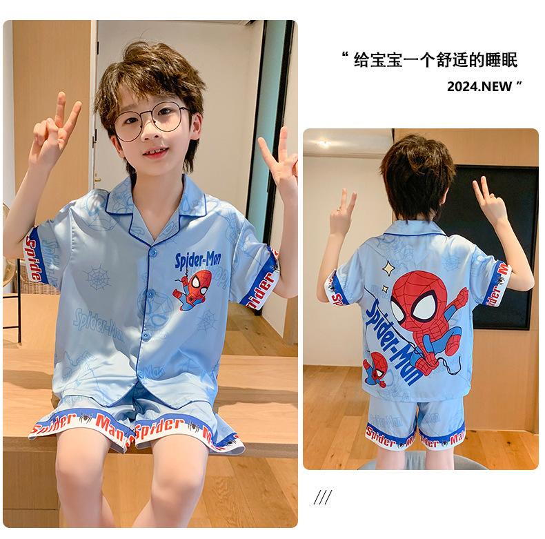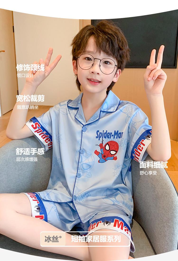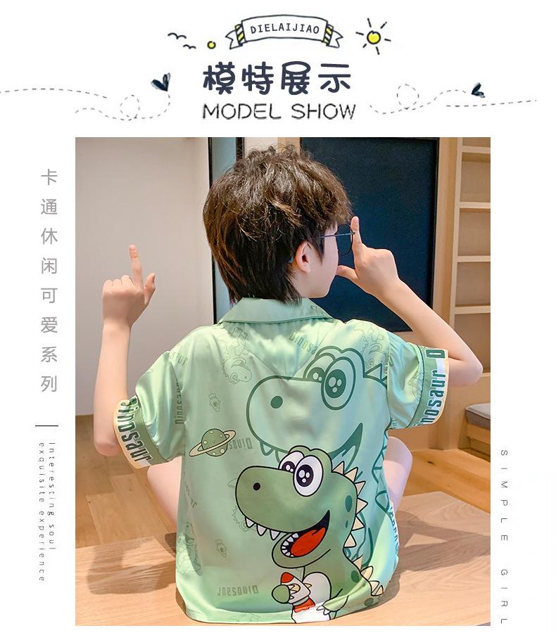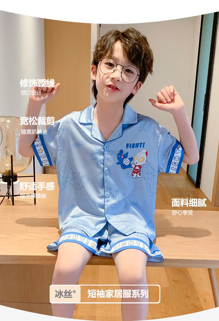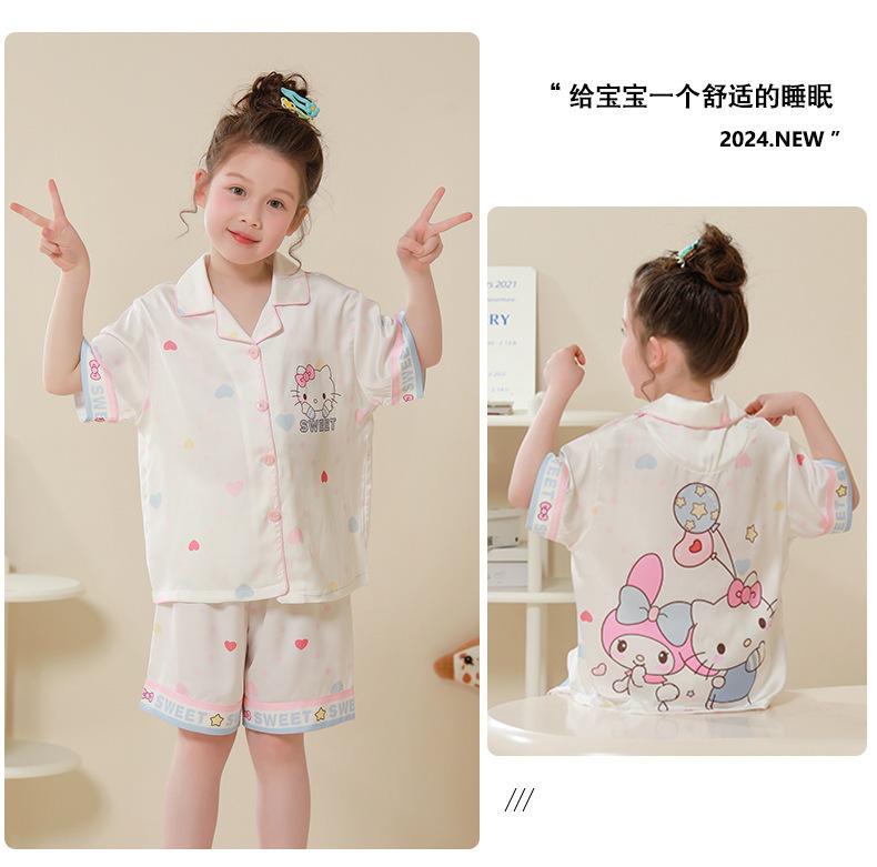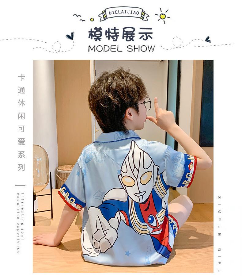 Pijamas de seda helada de manga corta con solapa para niños y niñas, cárdigan de dibujos animados, ropa de aire acondicionado, traje para el hogar