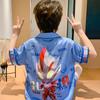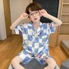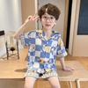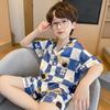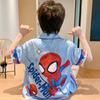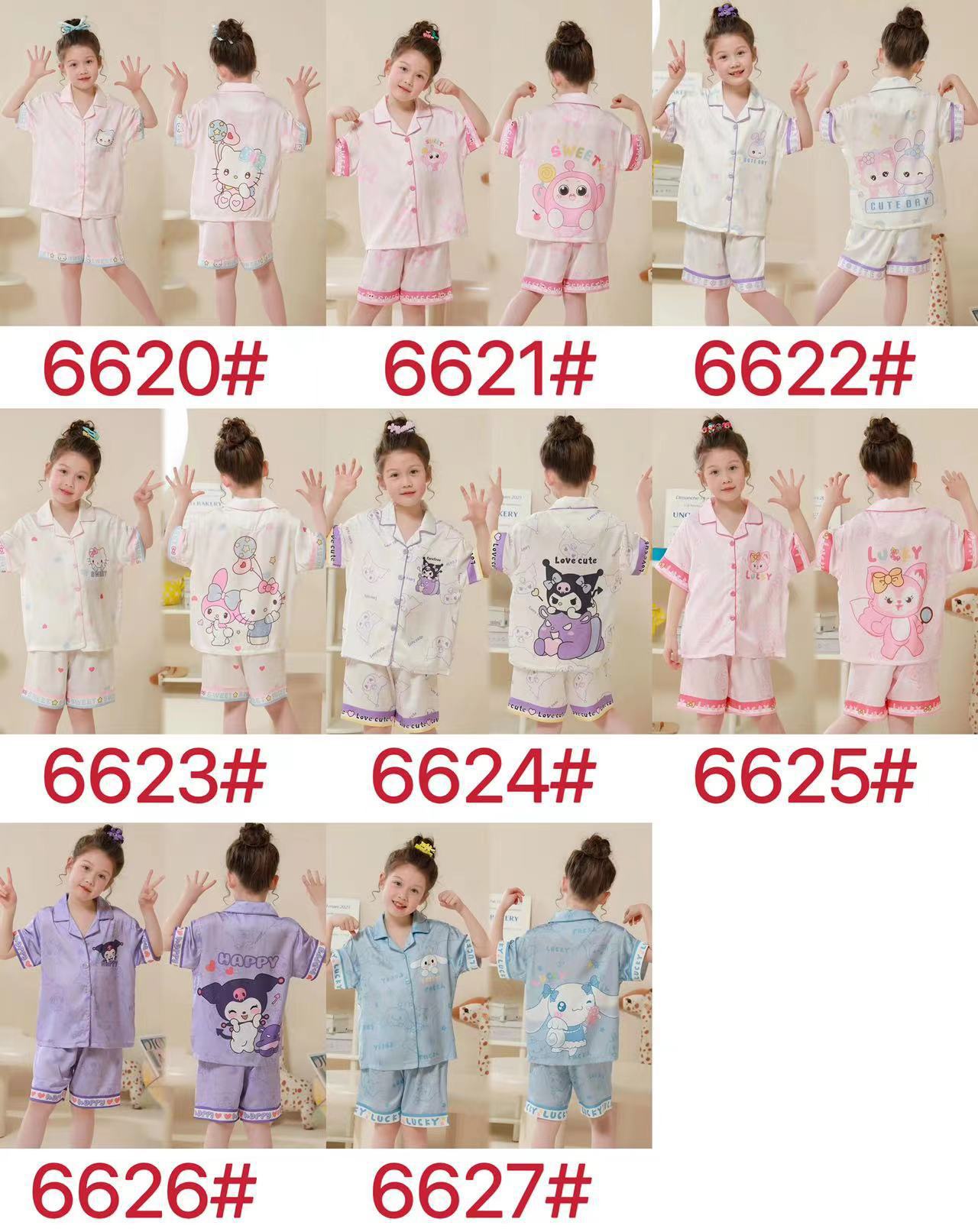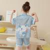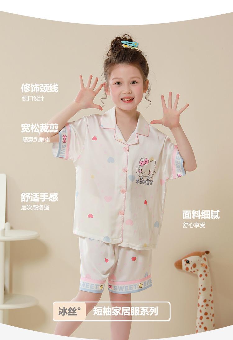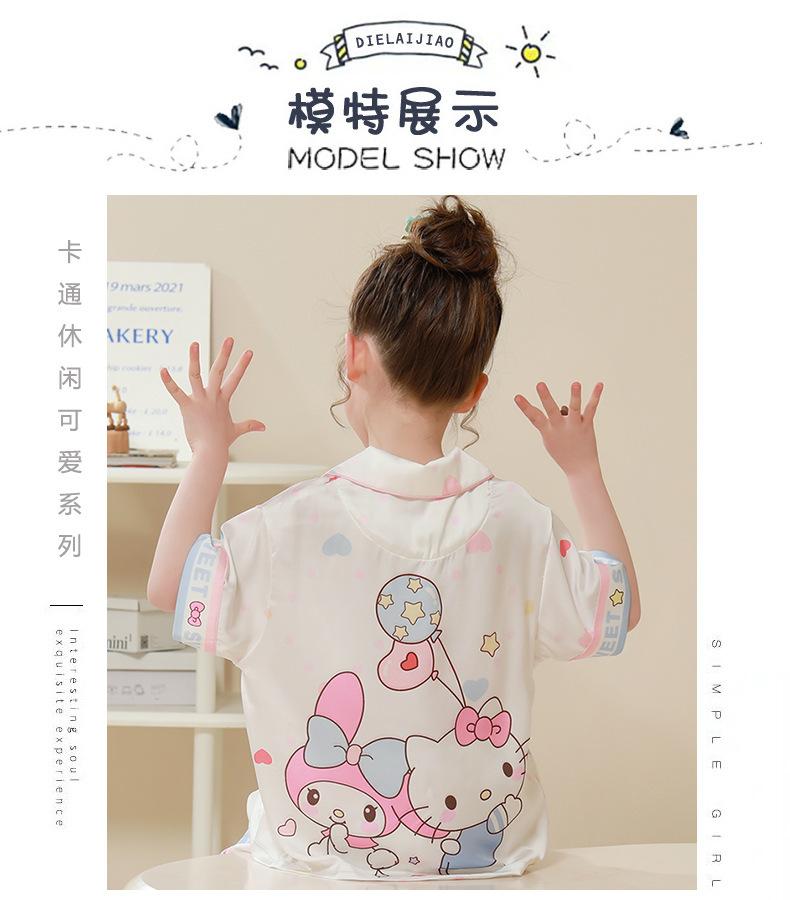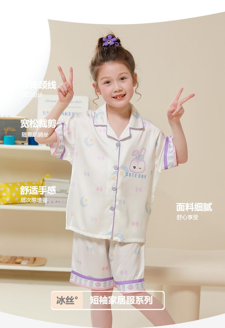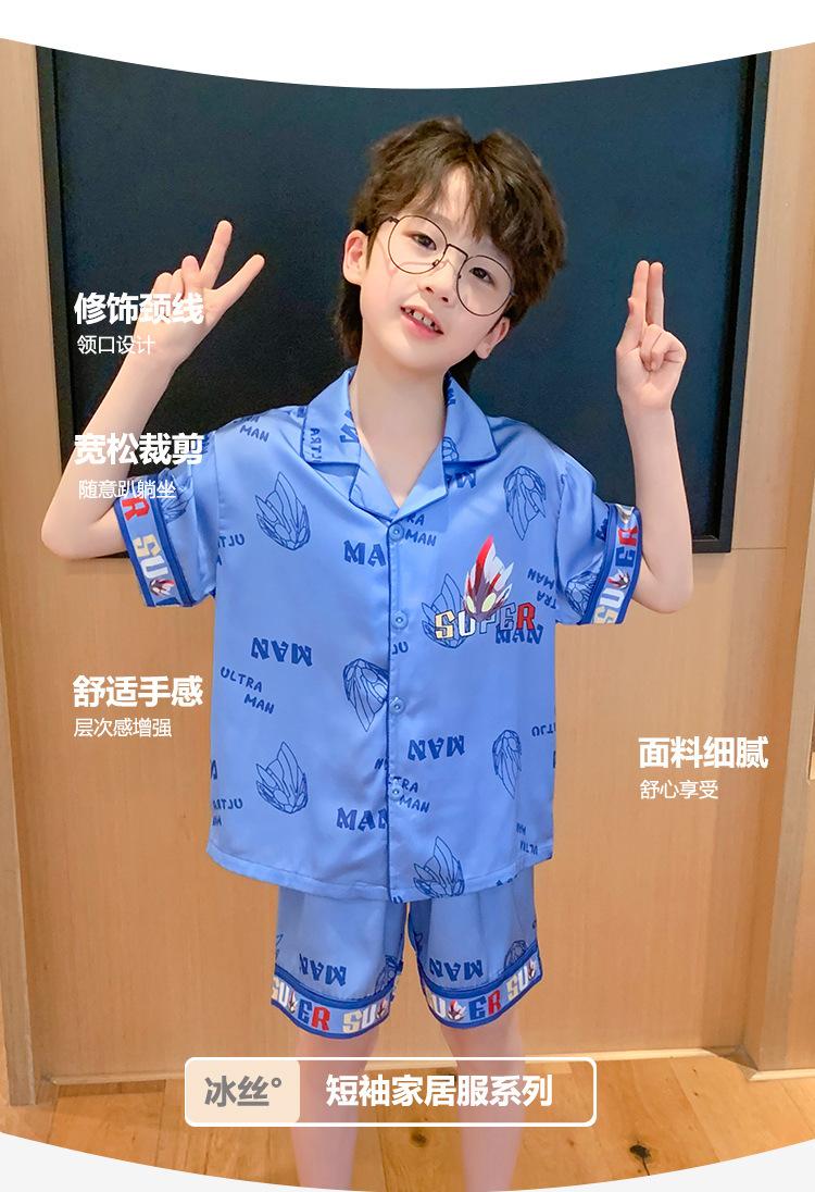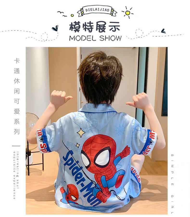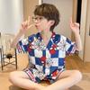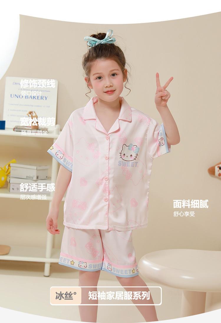 Pijamas de seda helada de manga corta con solapa para niños y niñas, cárdigan de dibujos animados, ropa de aire acondicionado, traje para el hogar