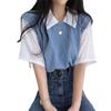 2025 Verano Estilo Universitario Color Contraste Cuello Polo Camiseta Falsa de Dos Piezas para Mujer Juvenil Manga Corta Estilo Relajado Top Holgado