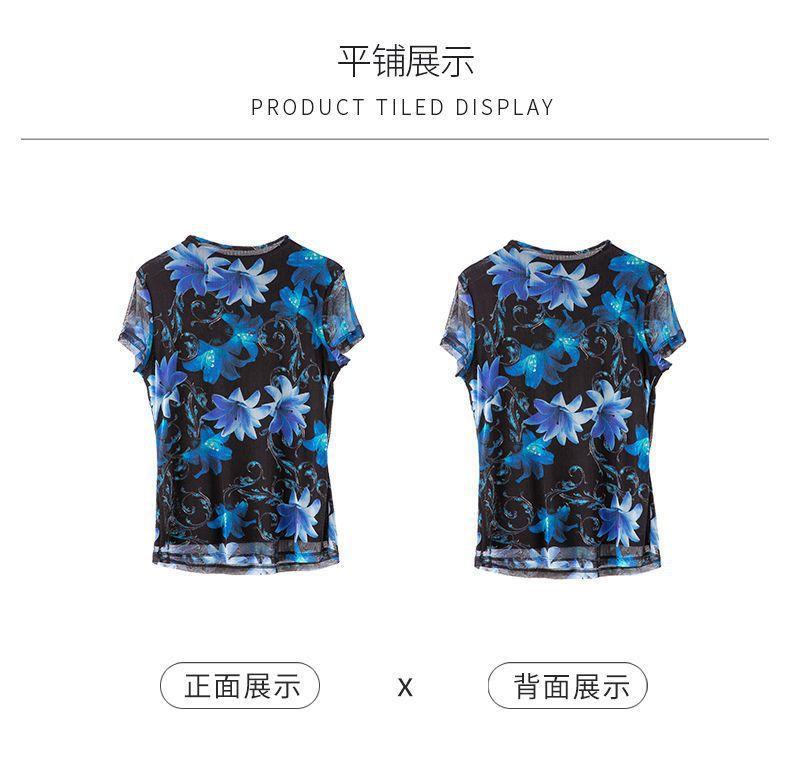 Camiseta interior de mujer, estilo europeo y americano, estampada, de verano, nueva, de talla grande, ajustada, ajustada, pequeña.