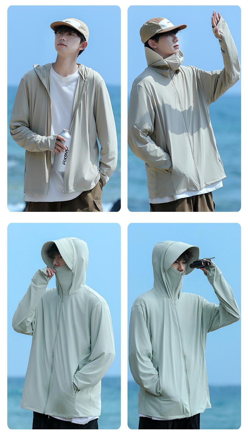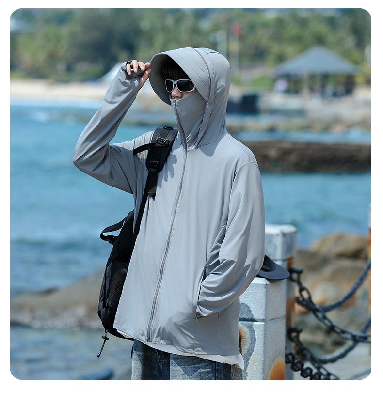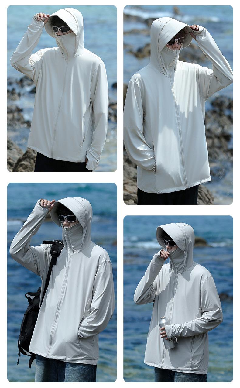 Ropa de protección solar para mujer, UPF50, deportes al aire libre, seda de hielo, capucha extraíble, ropa de protección solar, chaqueta de verano con protección UV para hombre
