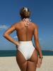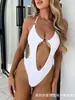 Traje de baño de una pieza ligero de nailon nuevo europeo y americano 2025, bikini sexy con escote en V profundo para mujer, traje de baño cruzado, bikini
