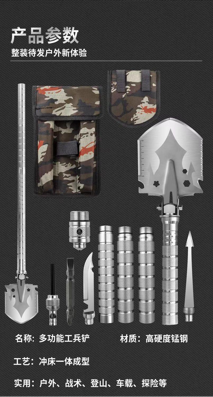 Pala de ingeniero para exteriores multifuncional pala gruesa camping acero al manganeso camping aventura pesca salvaje excavación pala militar pala