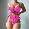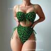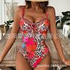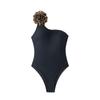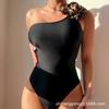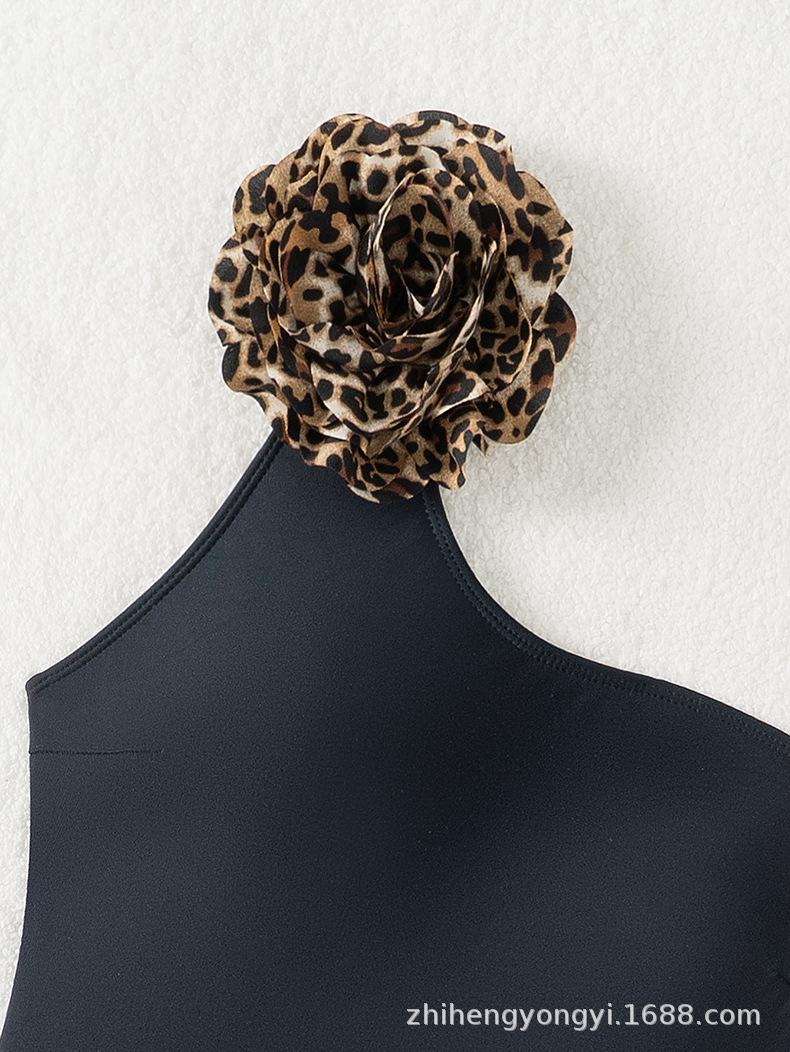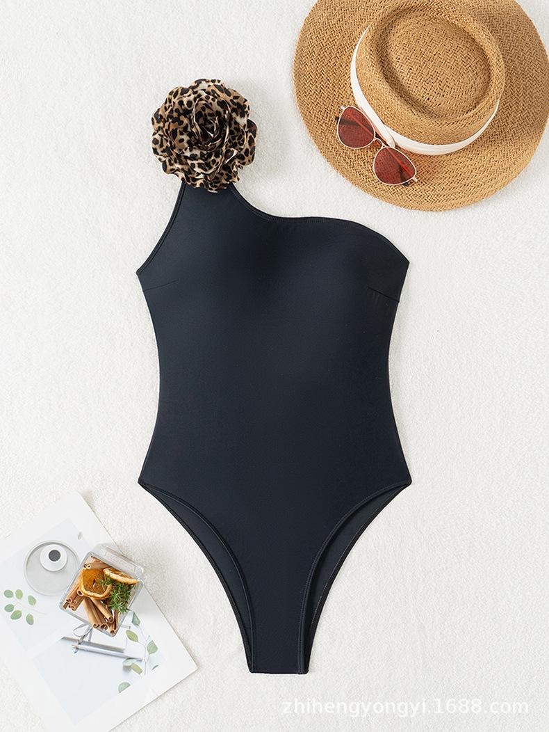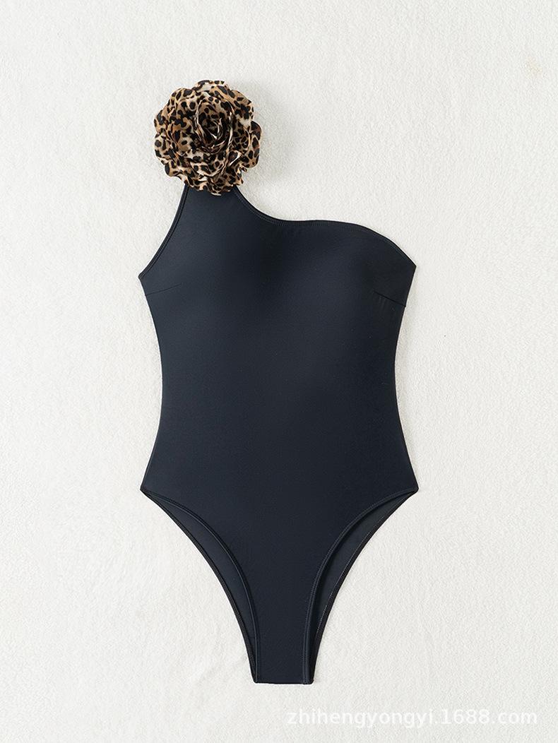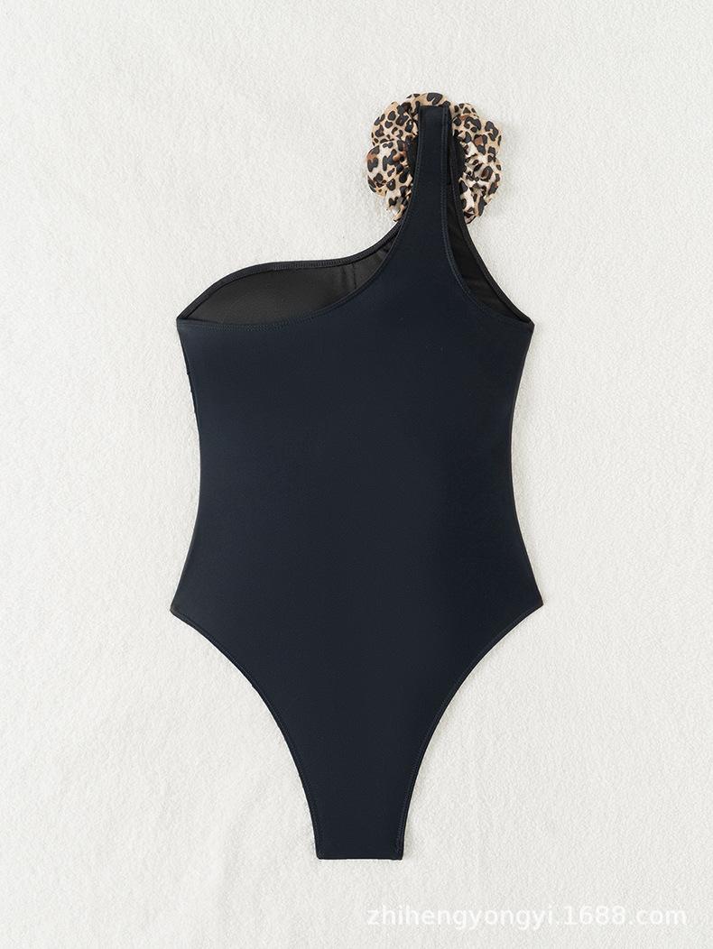 Traje de Baño Entero Nuevo 2025 para Mujer de un Hombro Estampado Leopardo Color Puro Ajustado Europeo y Americano Traje de Baño Entero Exportación Transfronteriza