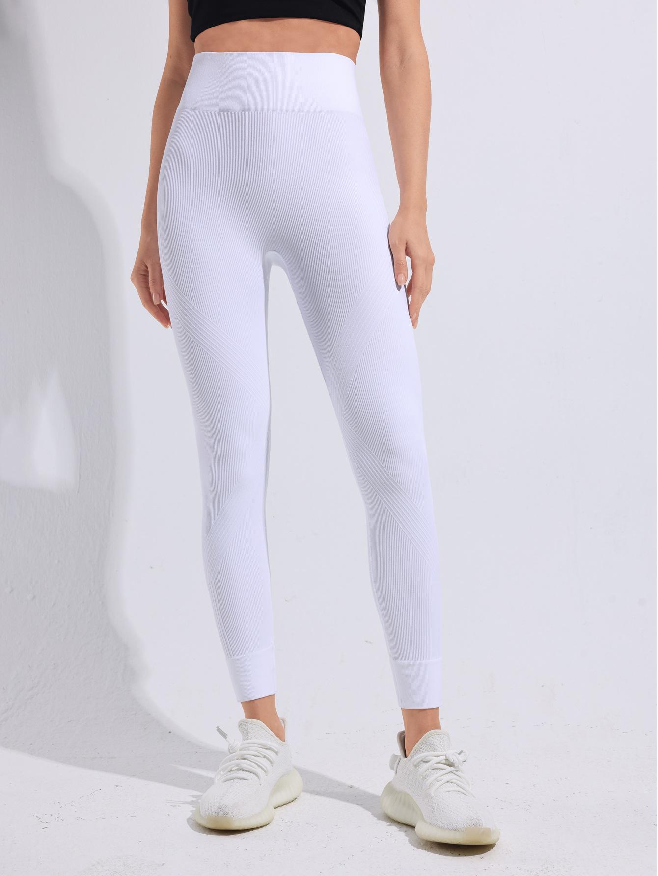 Pantalones de Yoga GYM a Rayas Blancas Sin Costuras para Mujer de Cintura Alta Levanta Caderas para Correr Fitness Pantalones Base para Deportes al Aire Libre