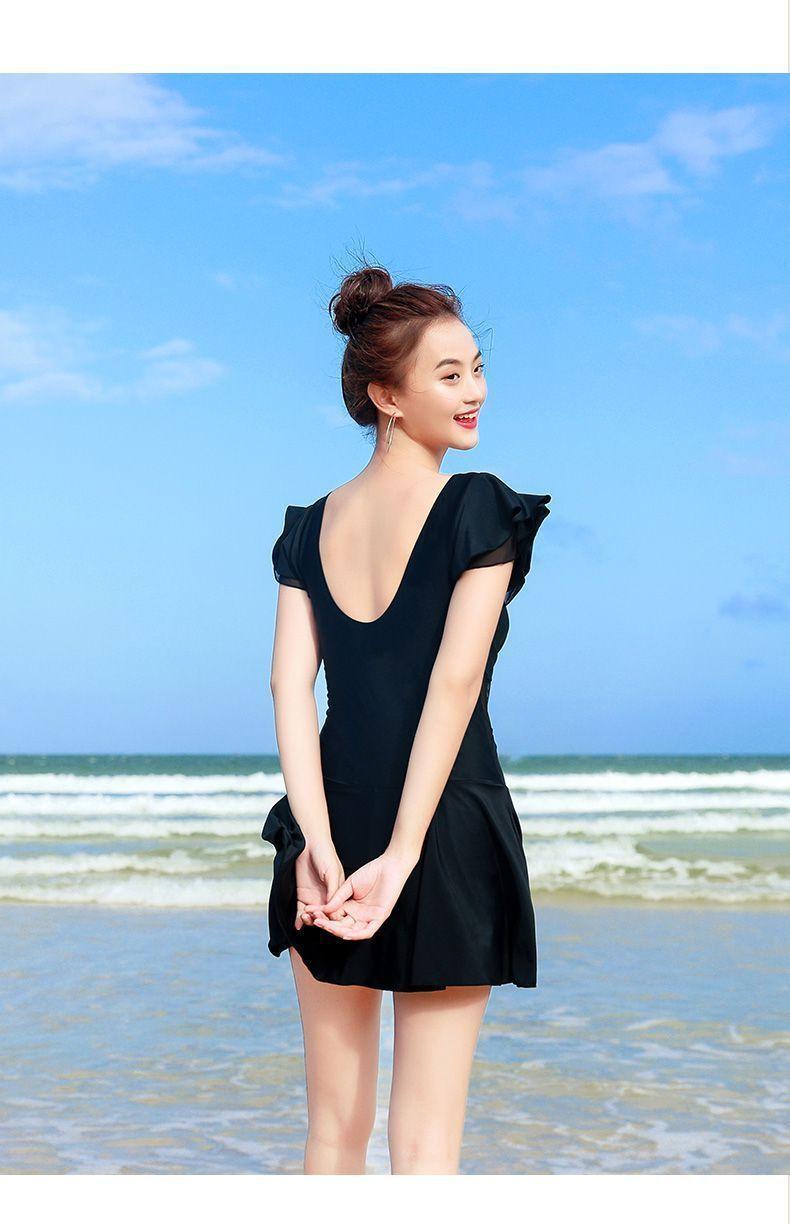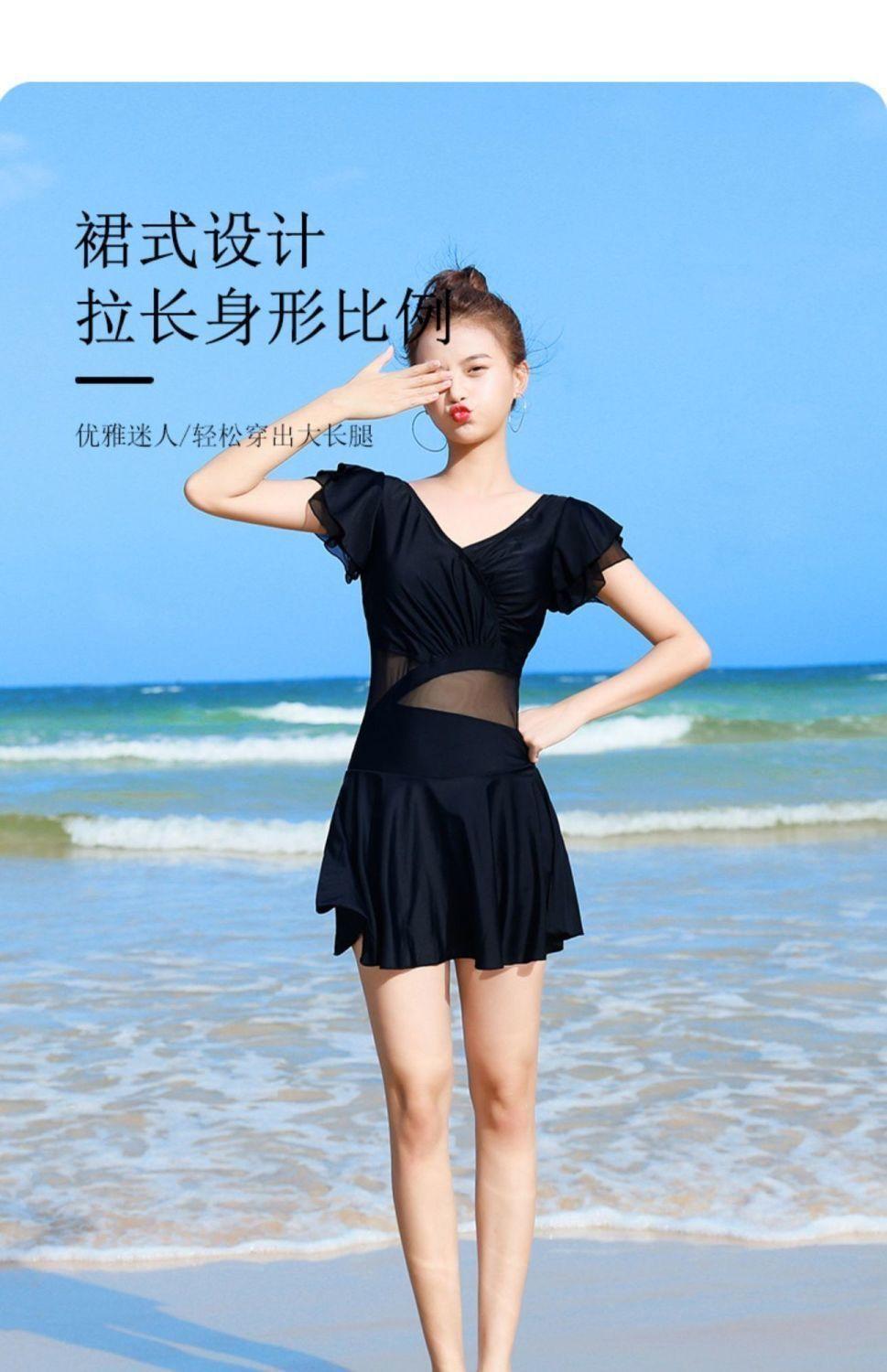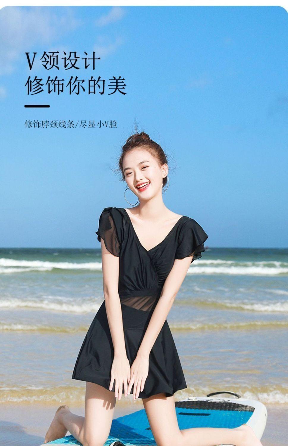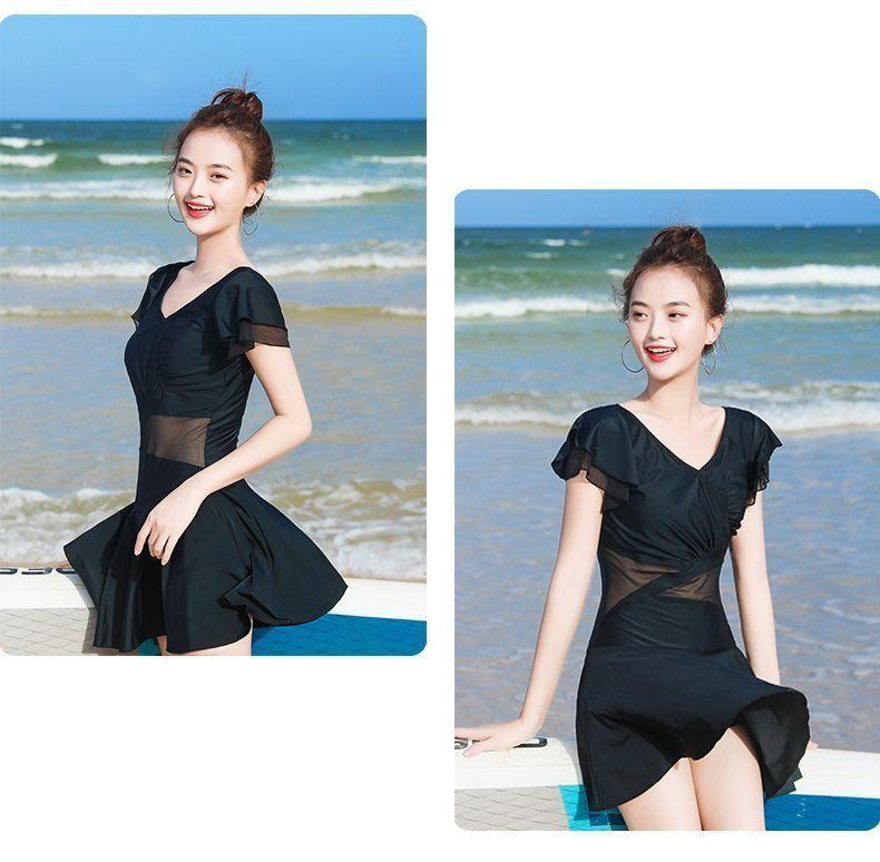 Nuevo traje de baño de una pieza con falda conservadora de abanico de hadas, moda de verano para primavera y verano, traje de baño ajustado con barriga cubierta, venta al por mayor