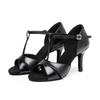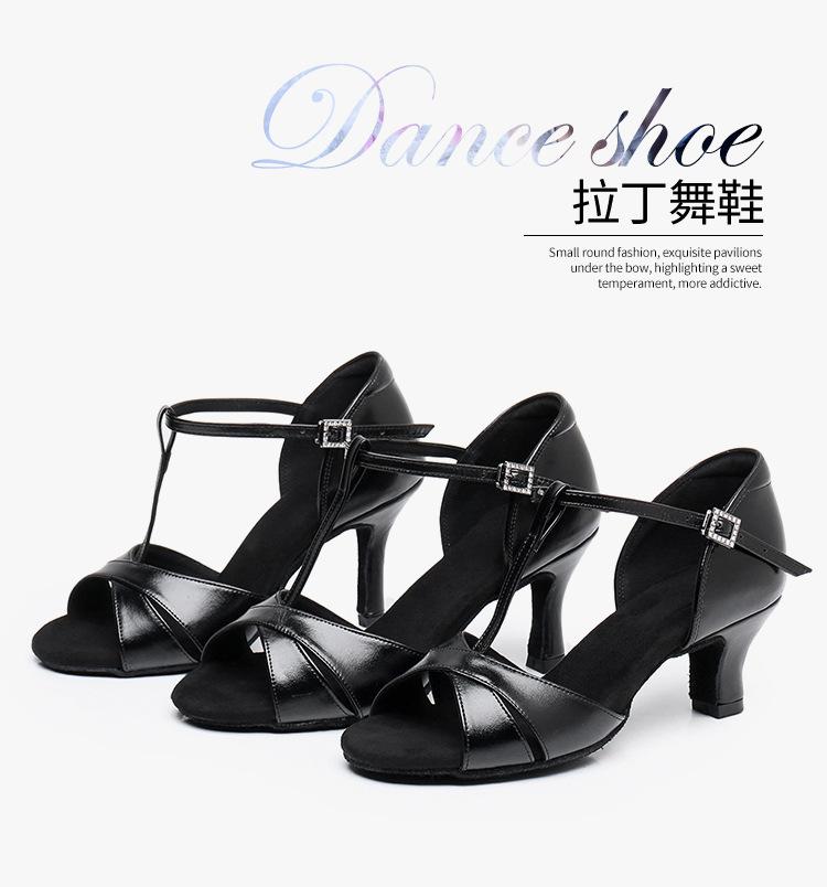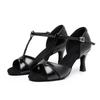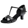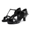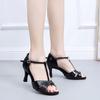 Zapatos de baile latino de satén PU negro para mujer, zapatos de baile de tacón medio para verano 2025, zapatos de baile chachachá para adultos, zapatos de baile cuadrados.