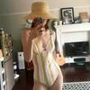 Traje de baño dividido para mujer, color sólido, estilo Ins, sexy, sin espalda, adelgazante, para vacaciones en aguas termales, sensación de aguas termales