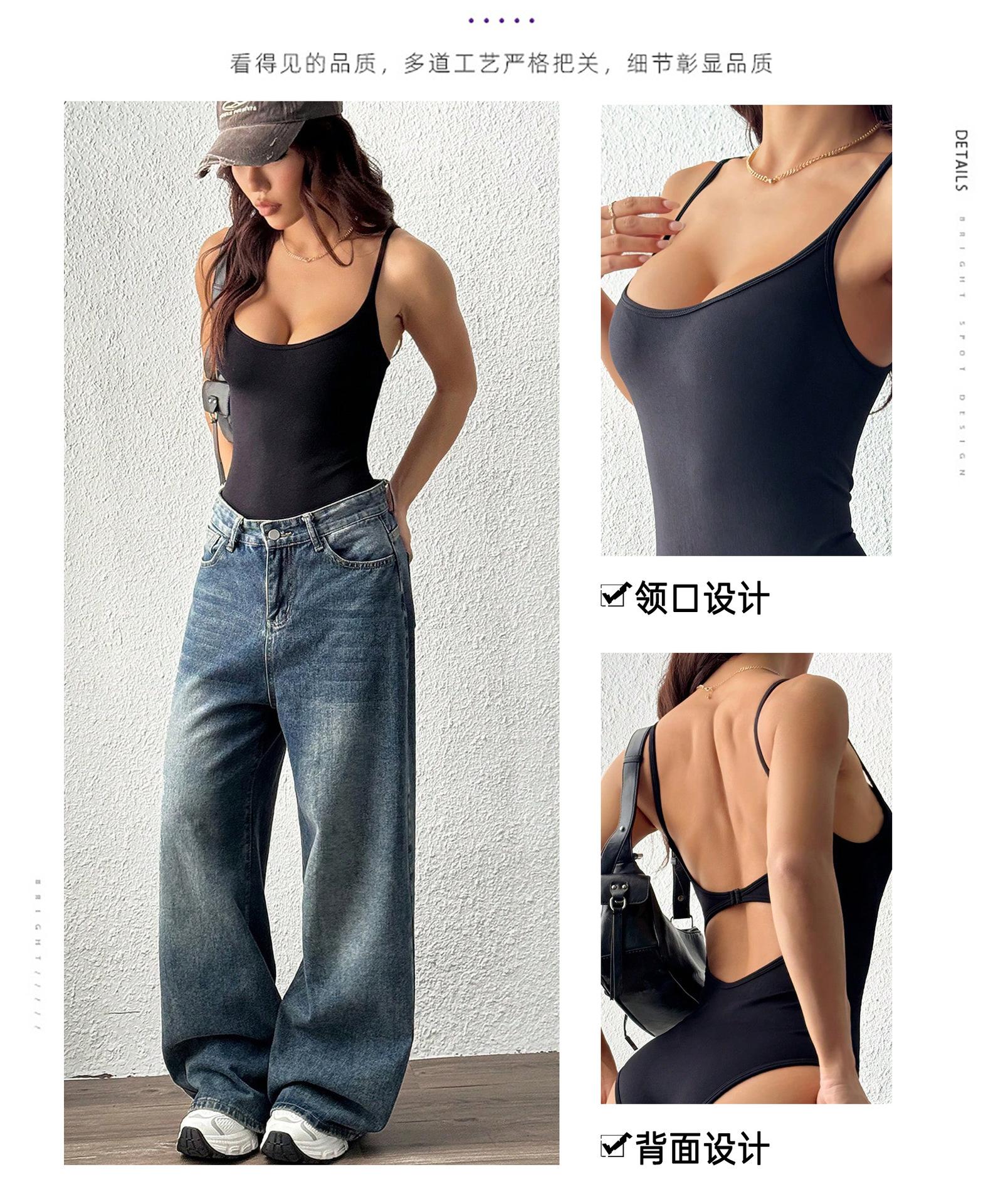 Body de hilo moldeador para tonificar el abdomen, deportivo, fitness, culturismo, traje de yoga para mujer, chaleco sin costuras con tirantes para los hombros, body de yoga