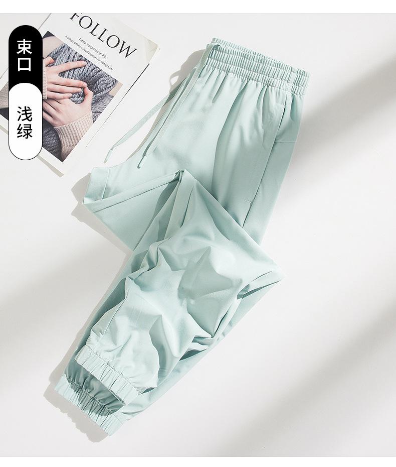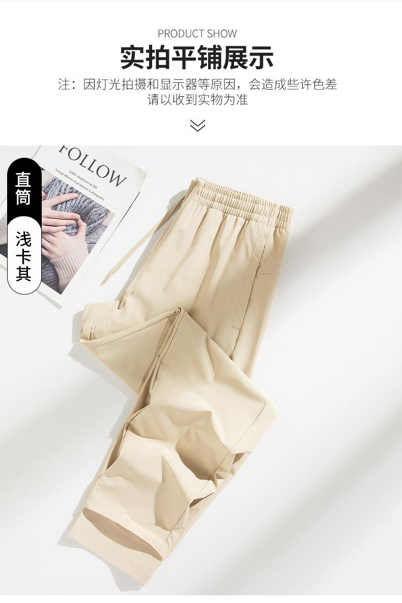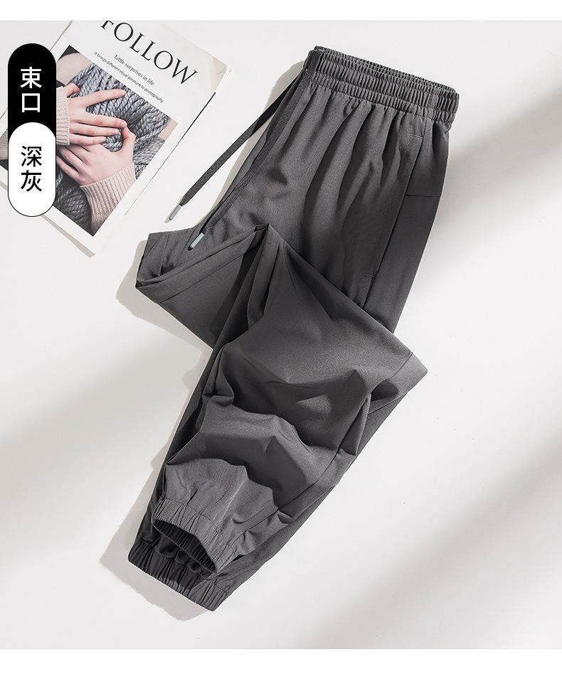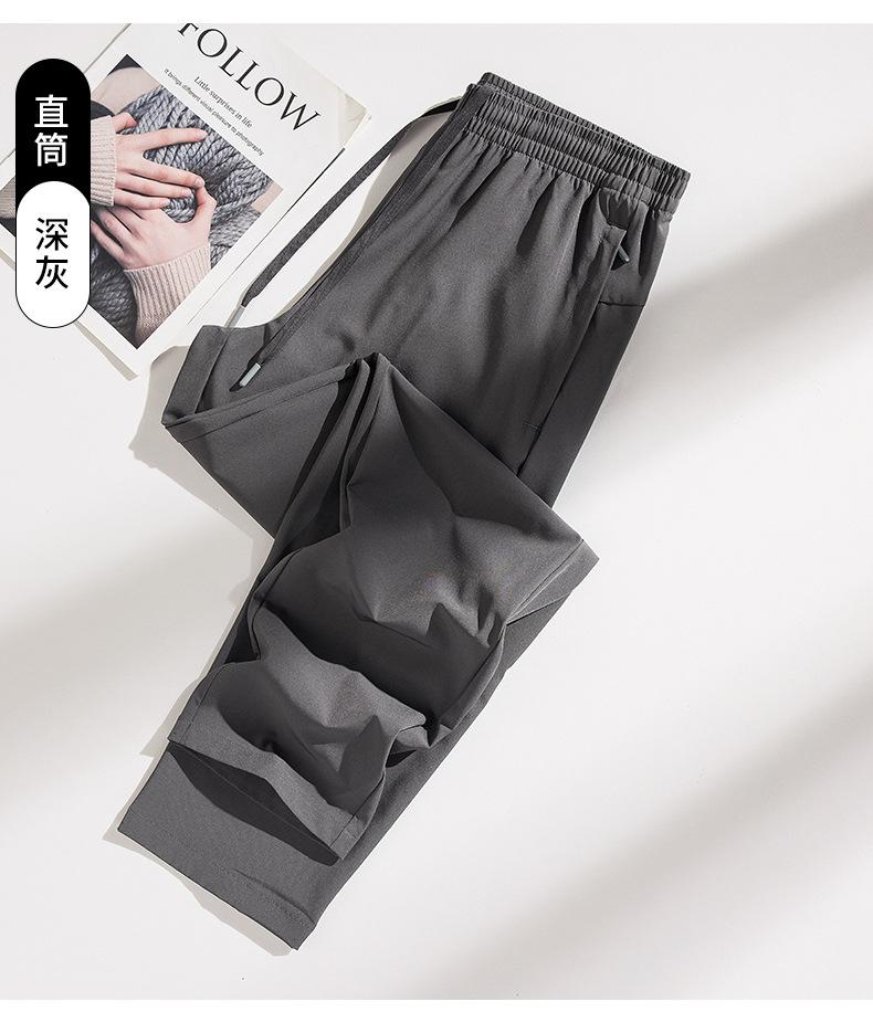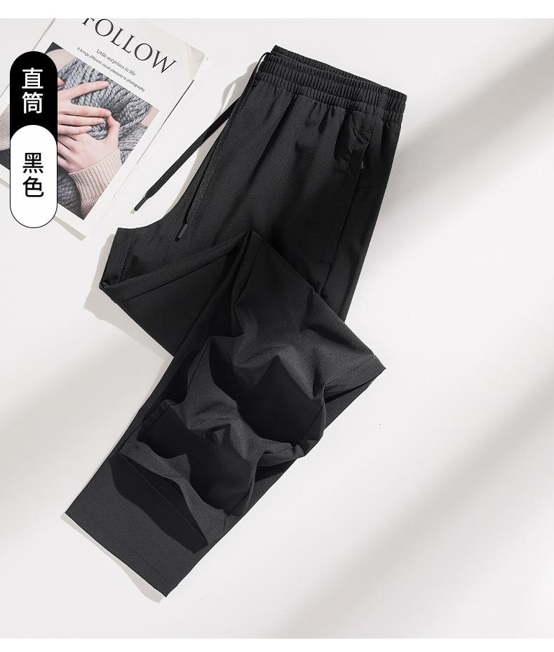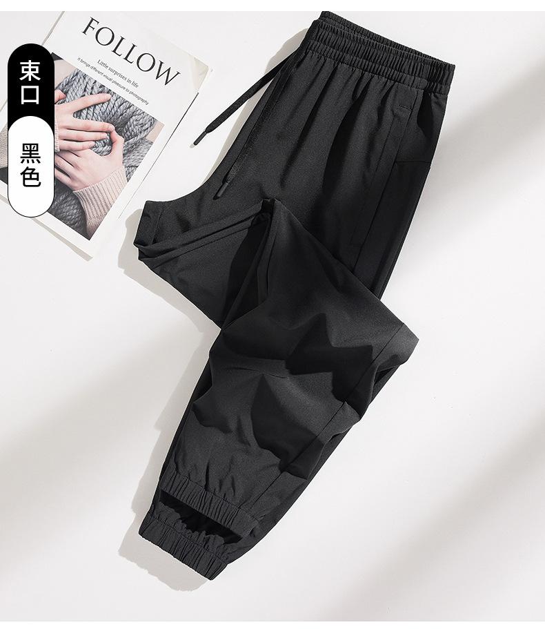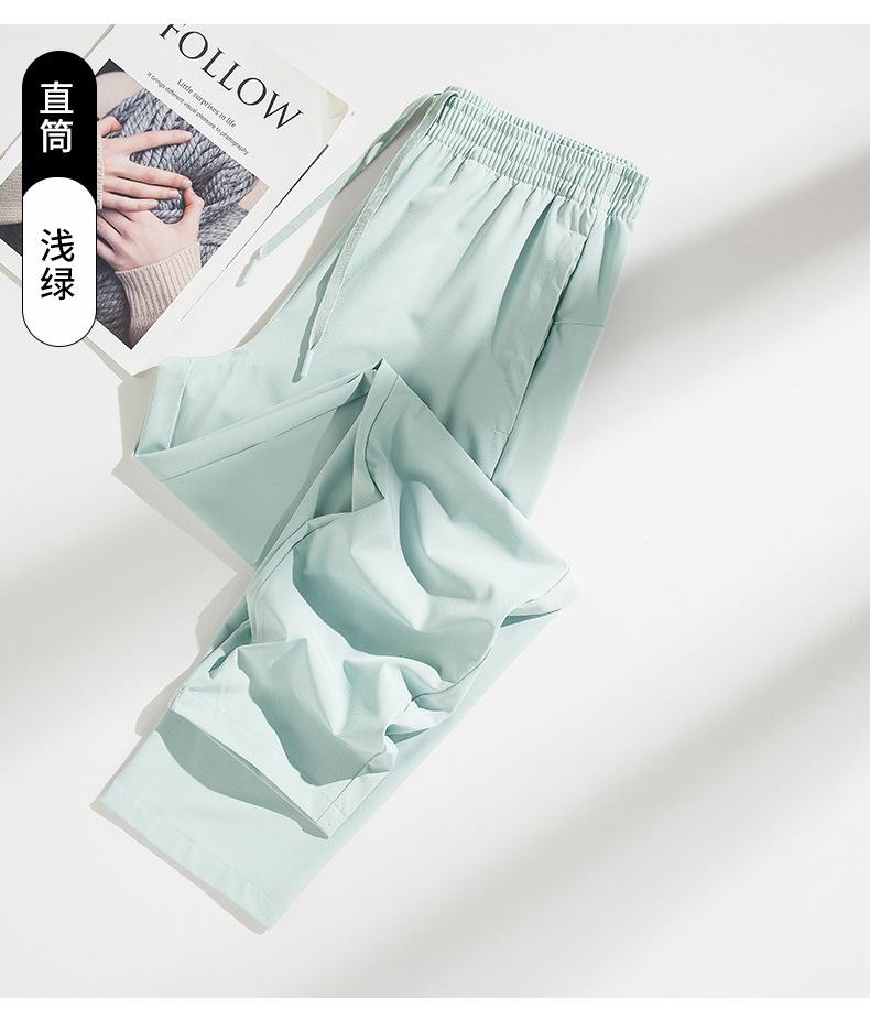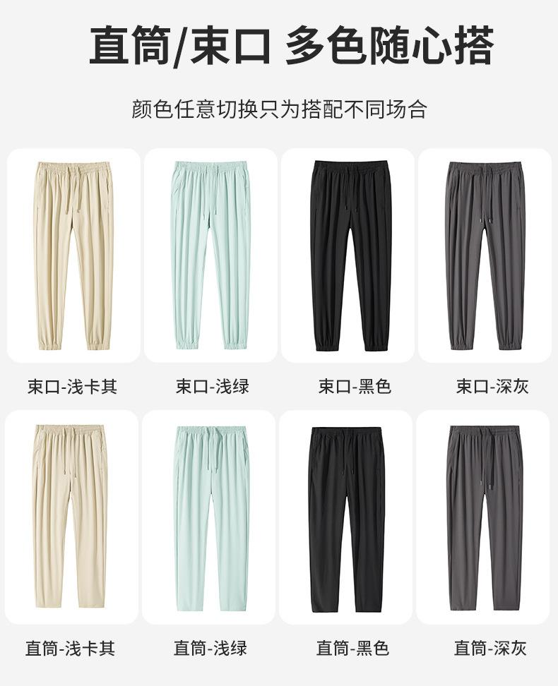 Pantalones deportivos de verano finos de seda helada, de secado rápido, elásticos, de talla general, para hombre y mujer, con cintura elástica, holgados y de pie plano.