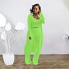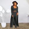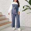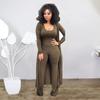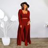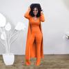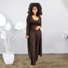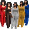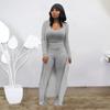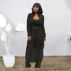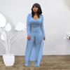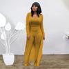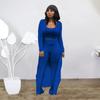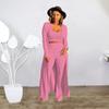 Pantalones de pierna ancha casuales para el hogar para mujer de talla grande europea y americana transfronteriza, conjunto de tres piezas de punto de color sólido para otoño 2023