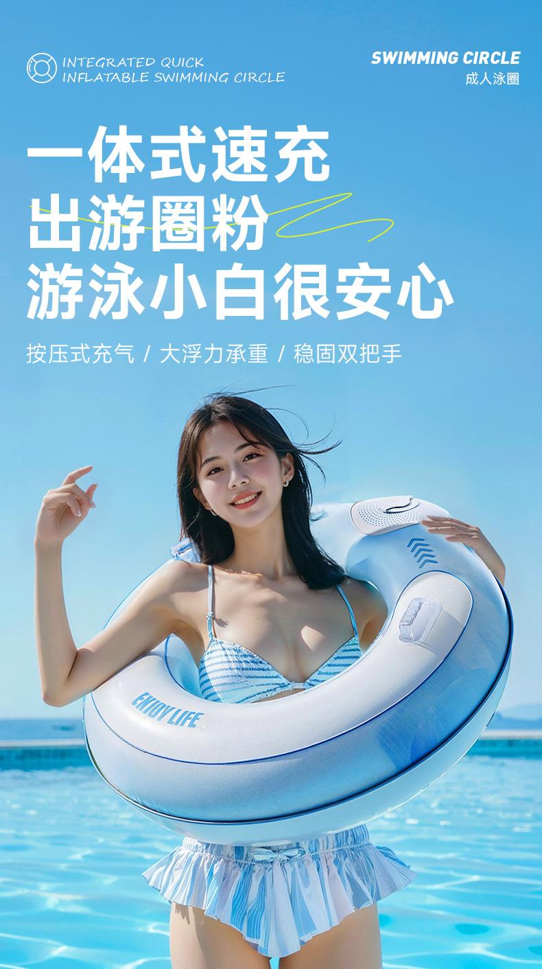 Flotador Inflable para Niños, Versión para Adultos de Doble Capa, Flotador Grueso para Adultos con Asas, Salvavidas Deportivo para Exteriores, Llenado Rápido
