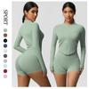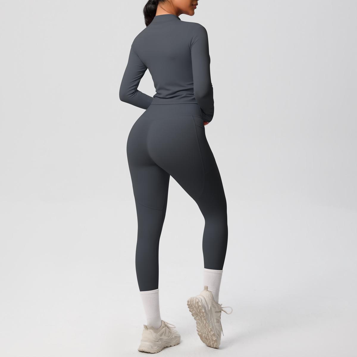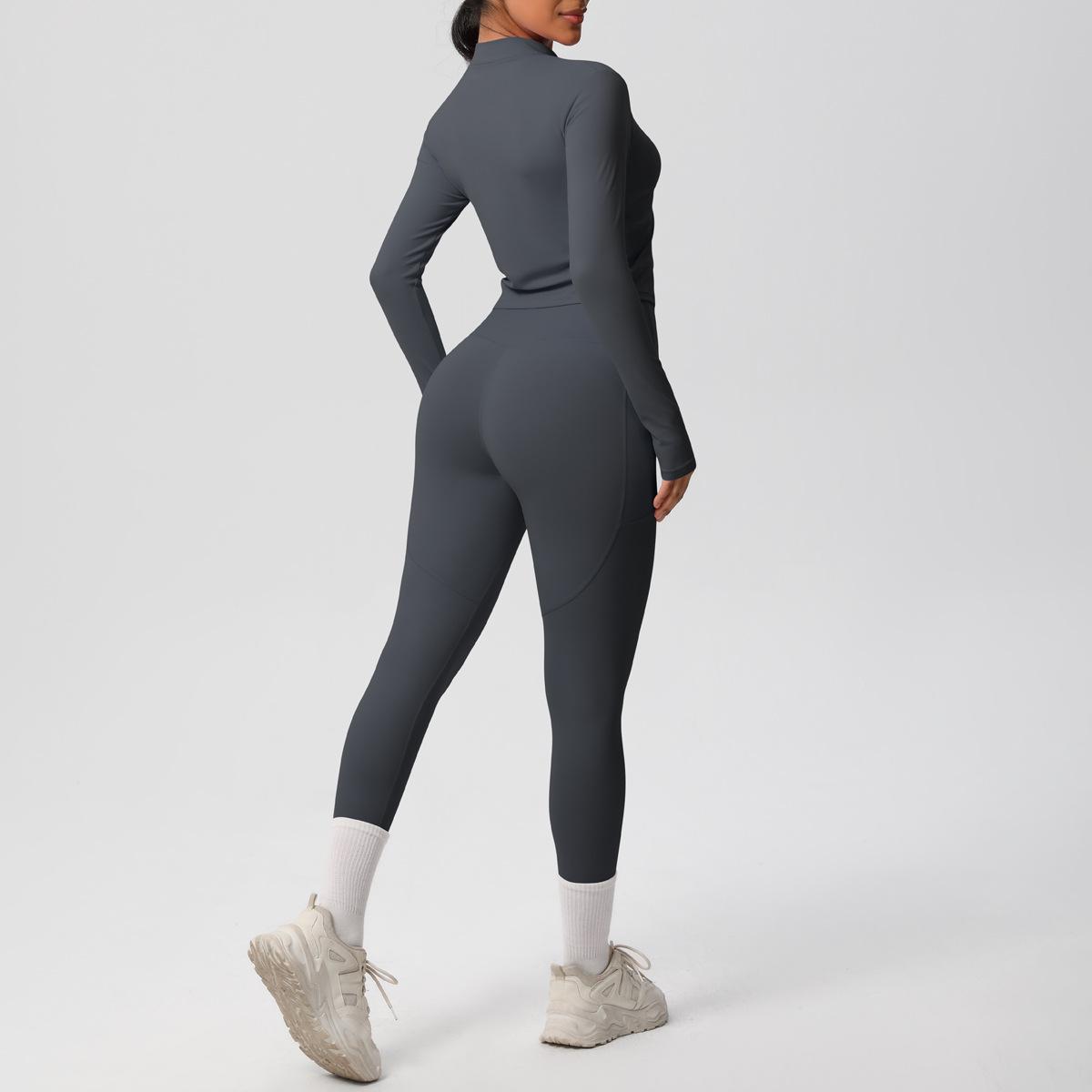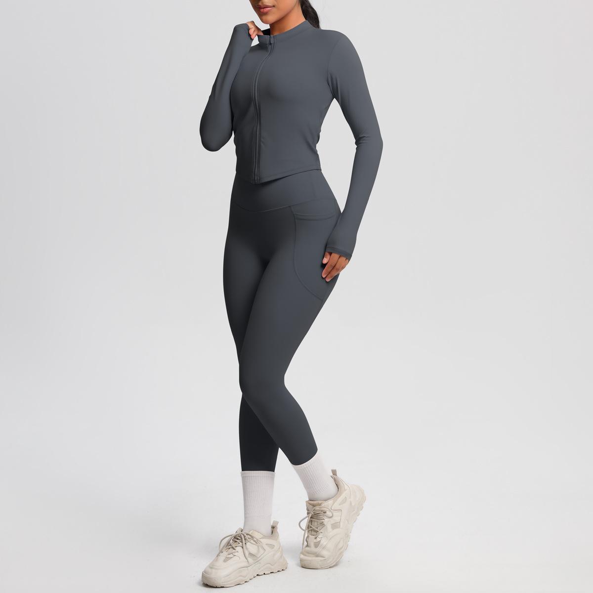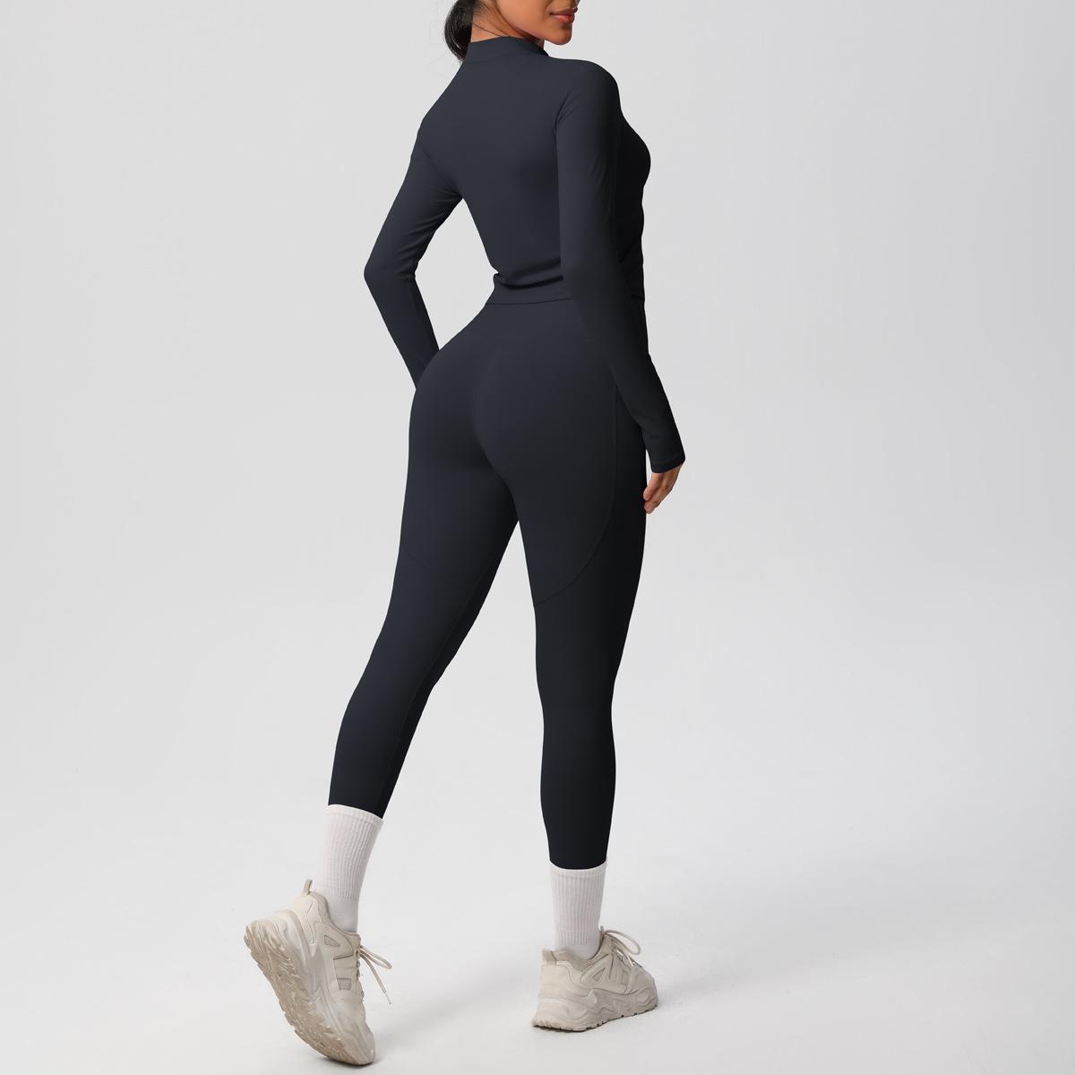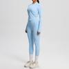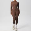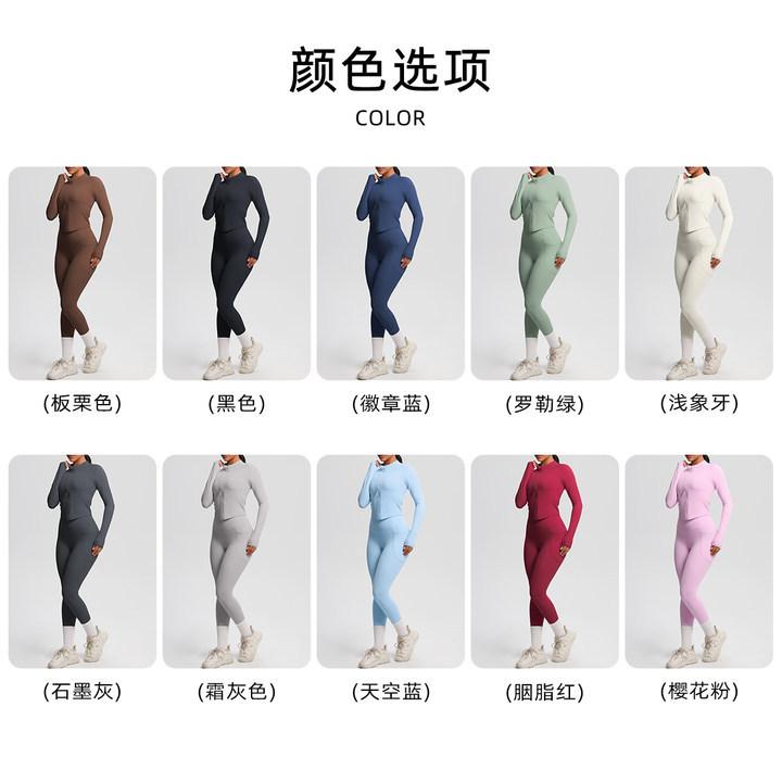 Traje de yoga de manga larga ajustado con lijado de doble cara y desnudo transfronterizo para correr al aire libre, pantalones de fitness adelgazantes, traje deportivo para mujer