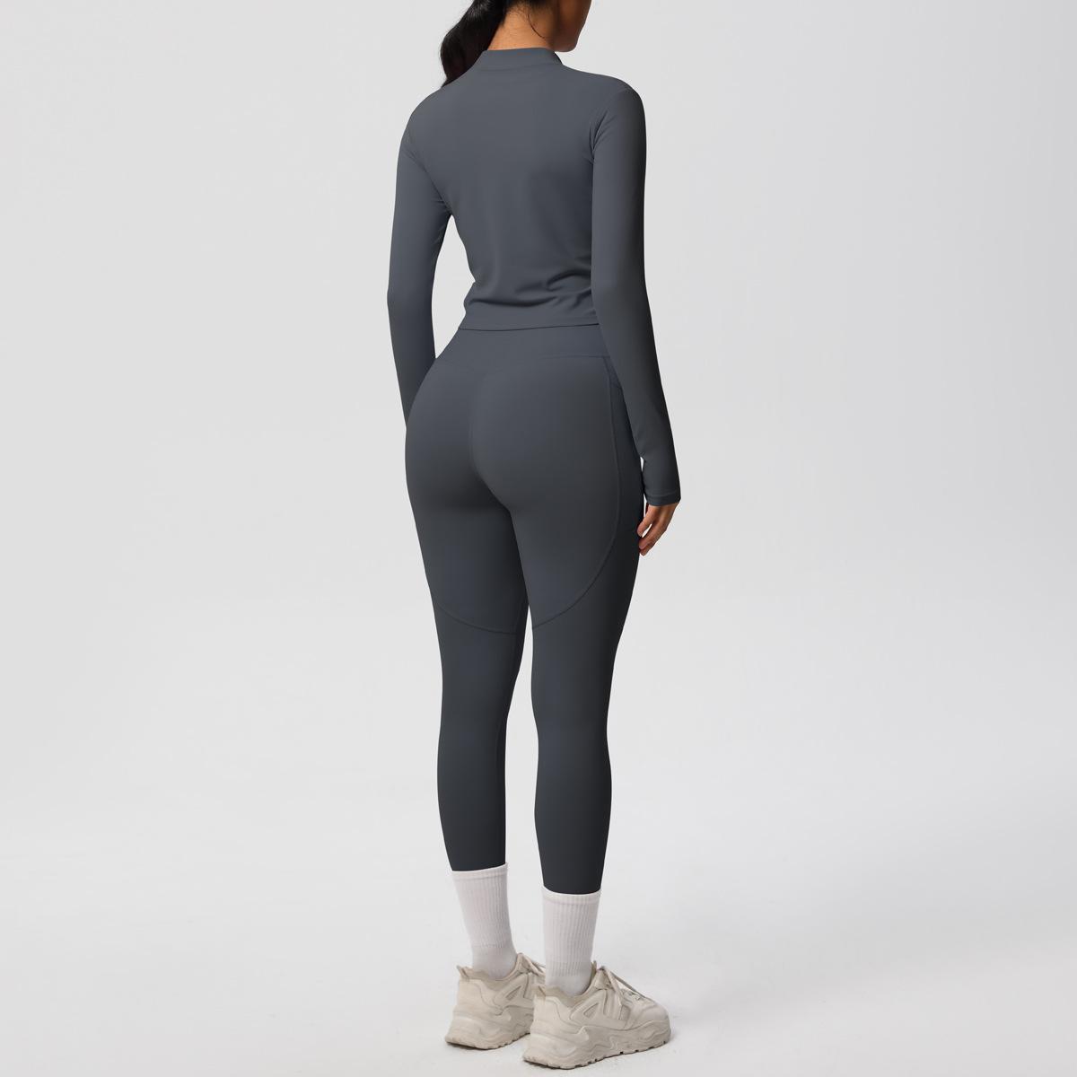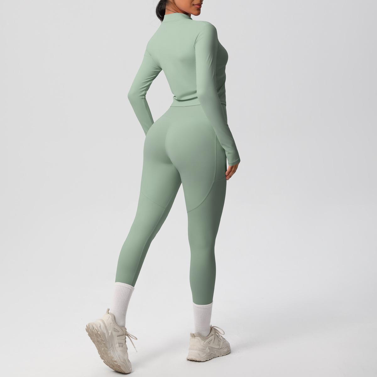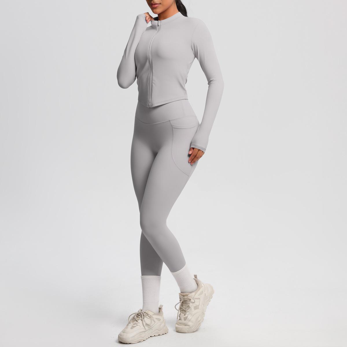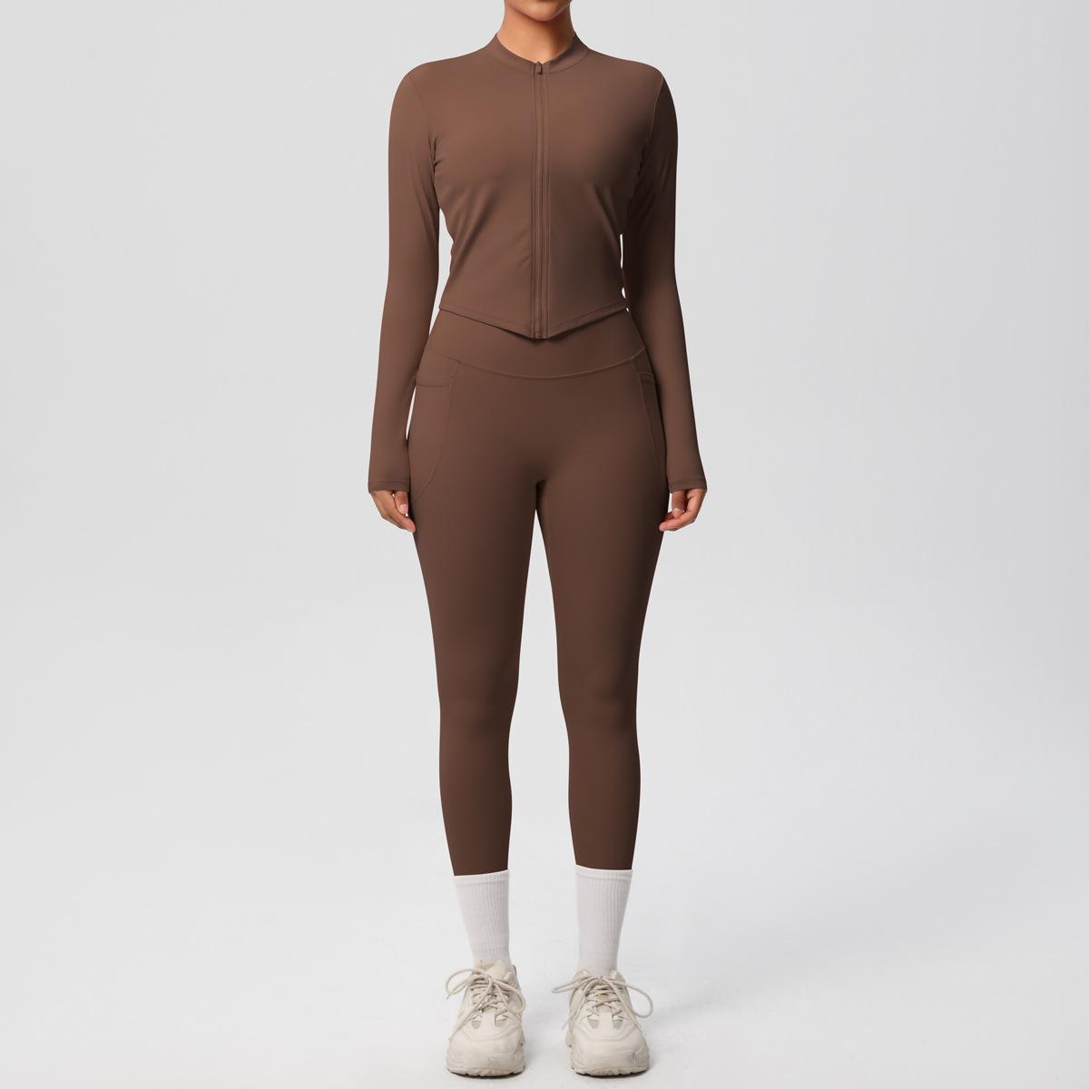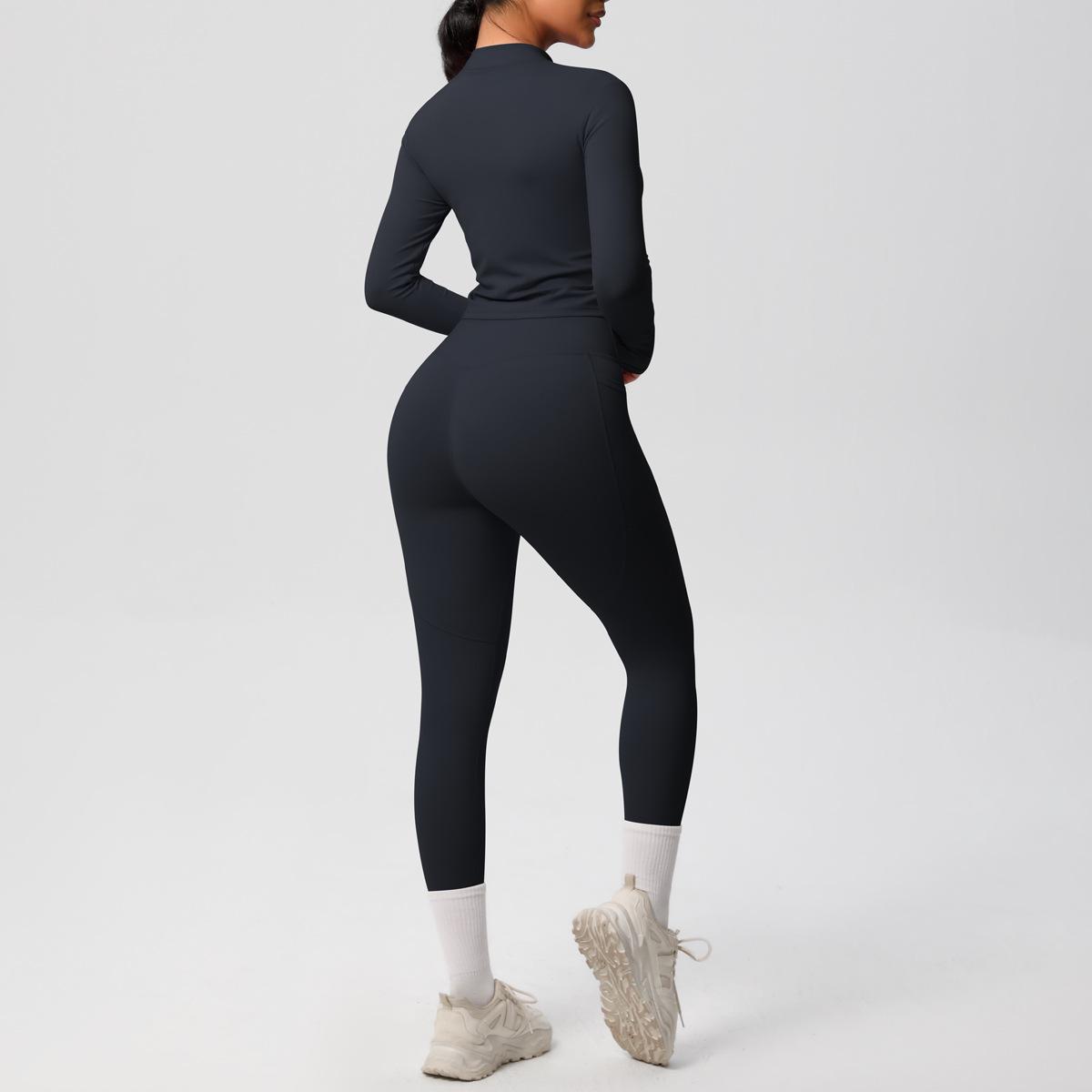 Traje de yoga de manga larga ajustado con lijado de doble cara y desnudo transfronterizo para correr al aire libre, pantalones de fitness adelgazantes, traje deportivo para mujer