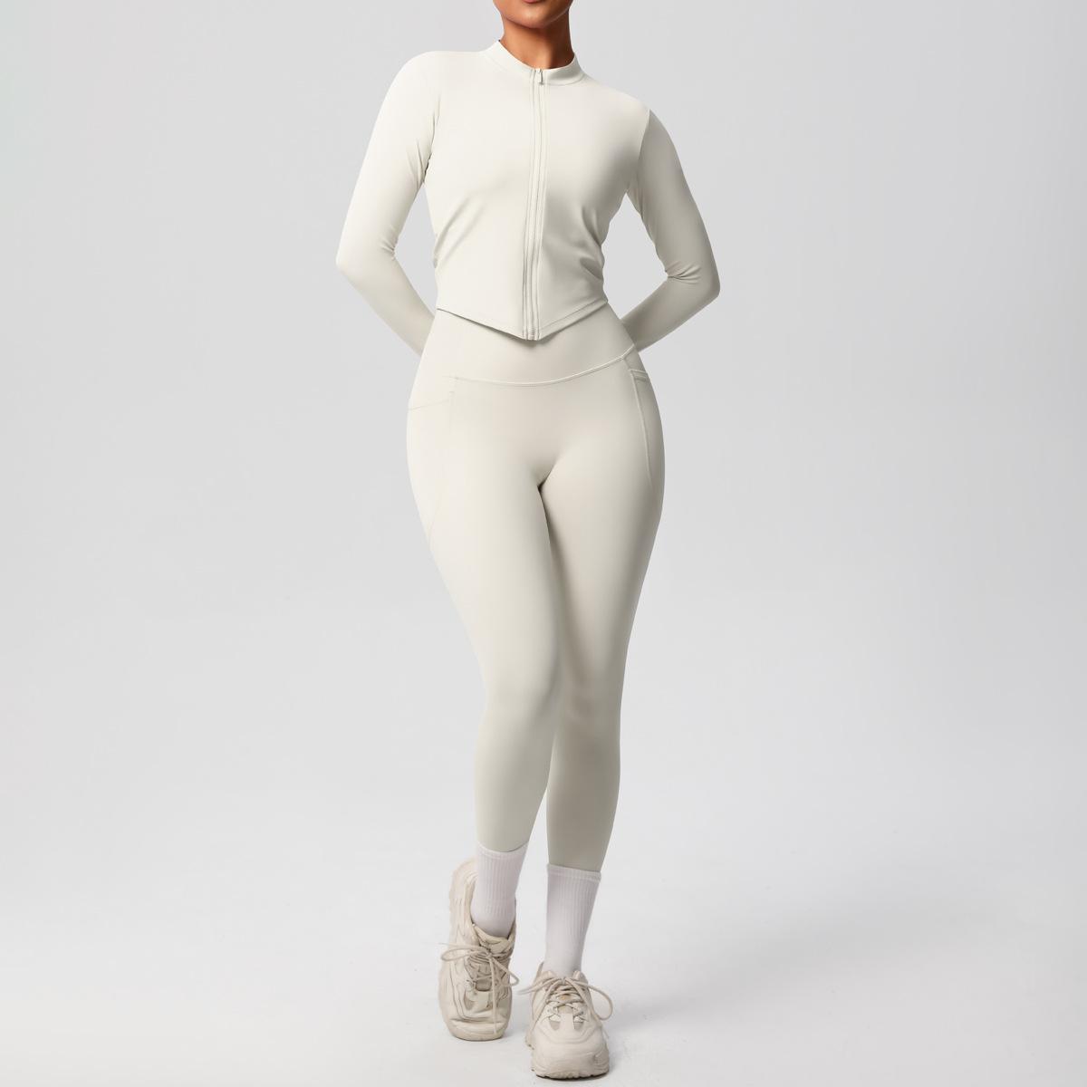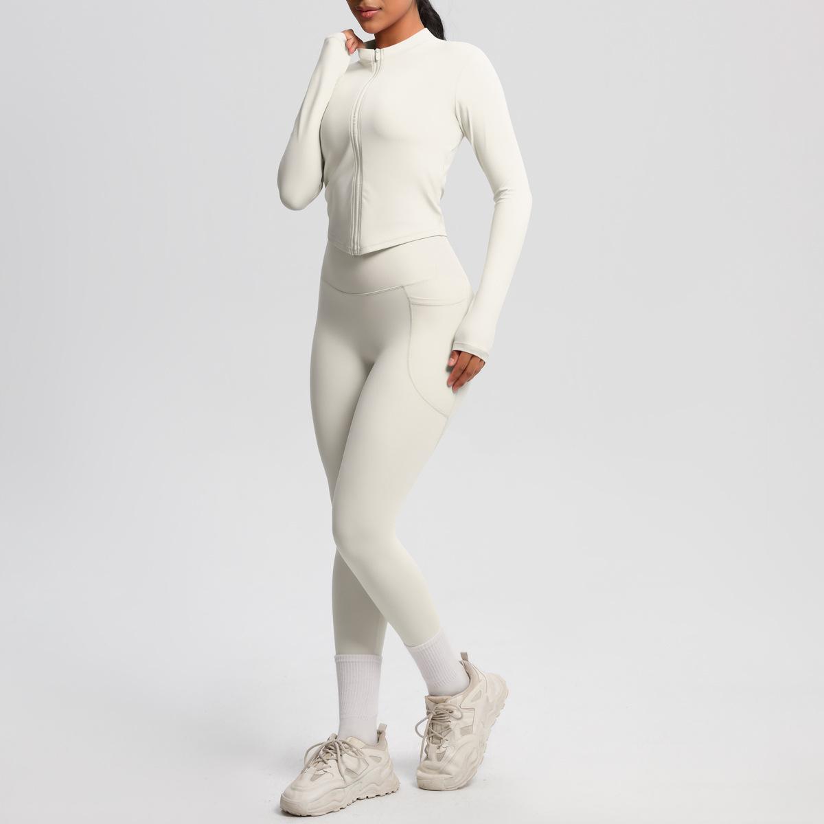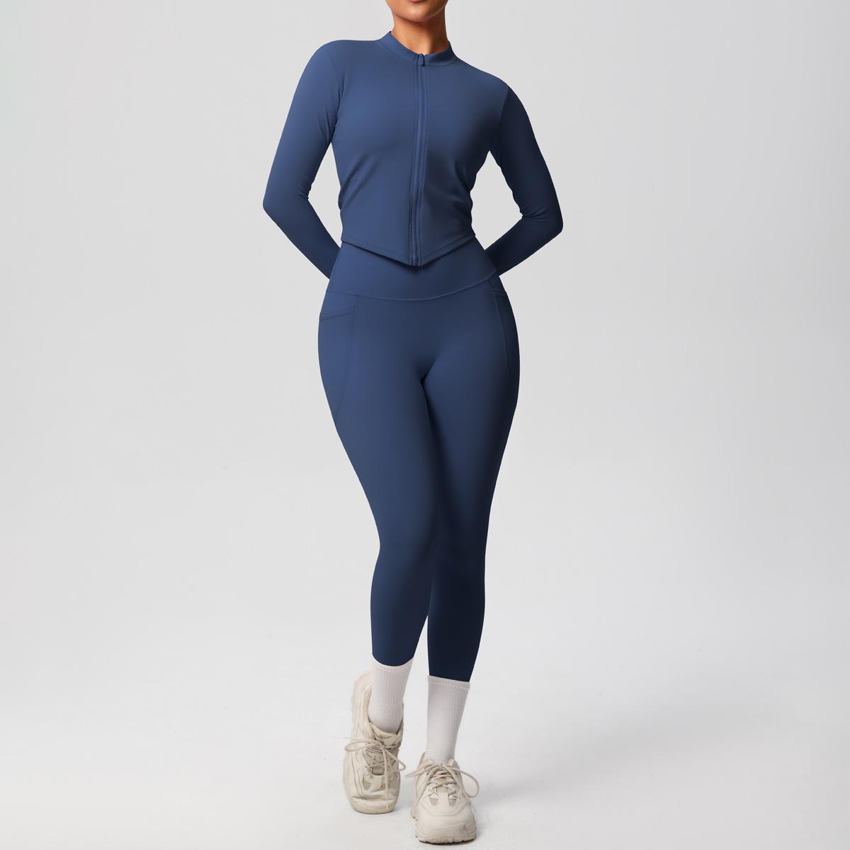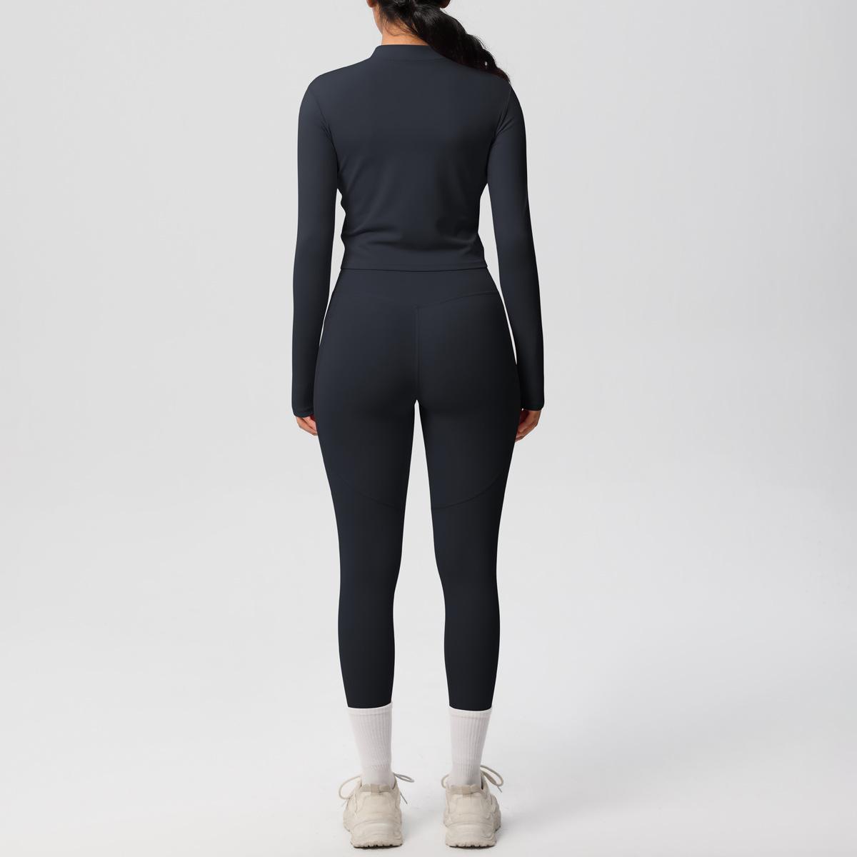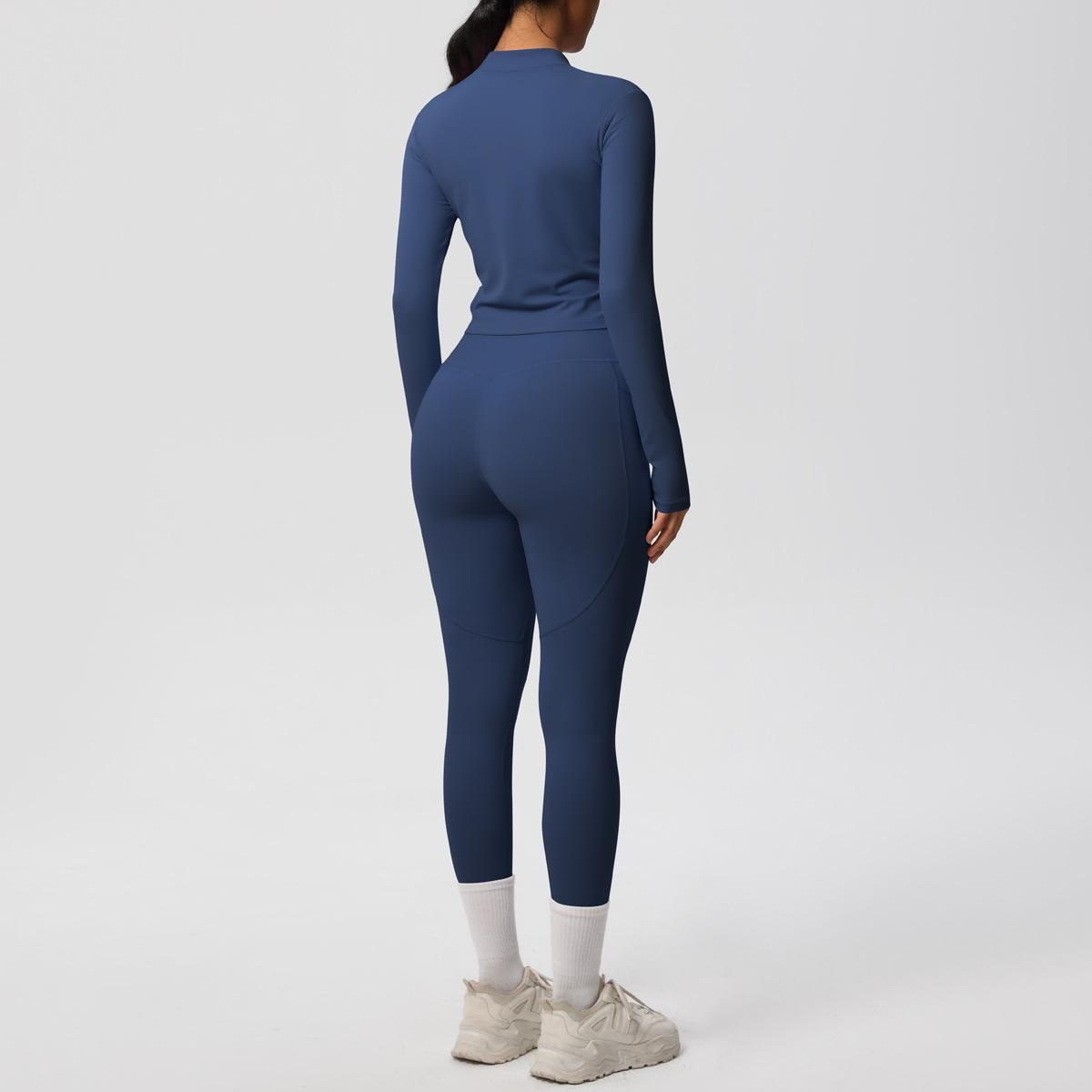 Traje de yoga de manga larga ajustado con lijado de doble cara y desnudo transfronterizo para correr al aire libre, pantalones de fitness adelgazantes, traje deportivo para mujer
