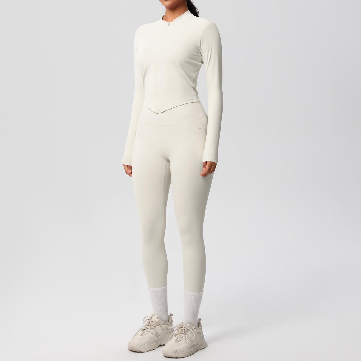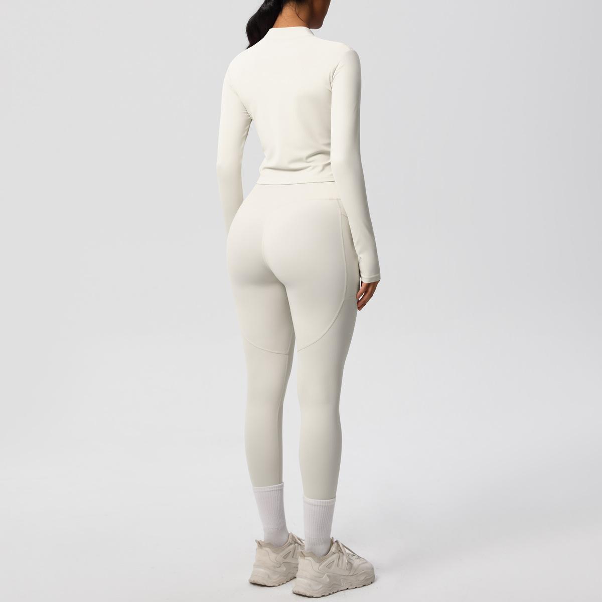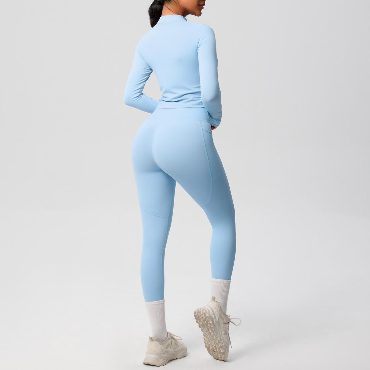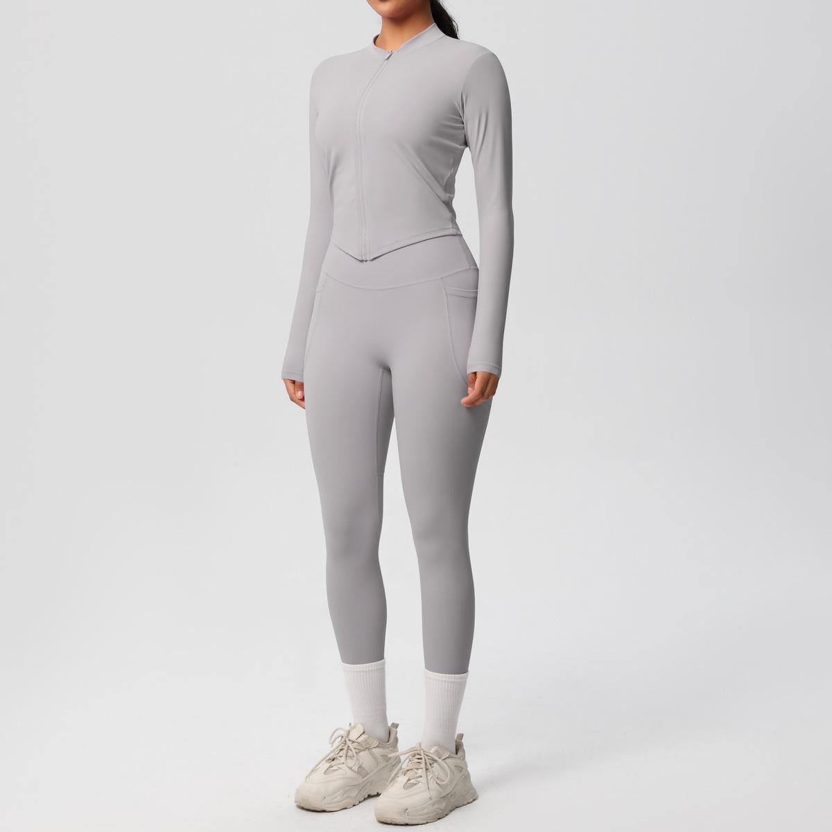 Traje de yoga de manga larga ajustado con lijado de doble cara y desnudo transfronterizo para correr al aire libre, pantalones de fitness adelgazantes, traje deportivo para mujer