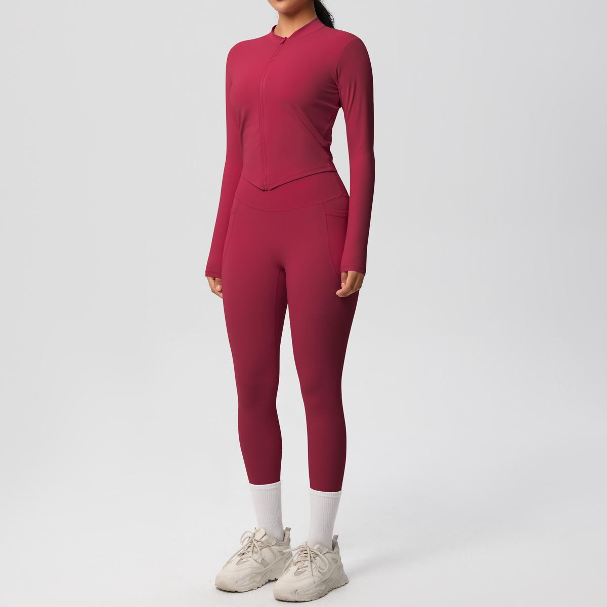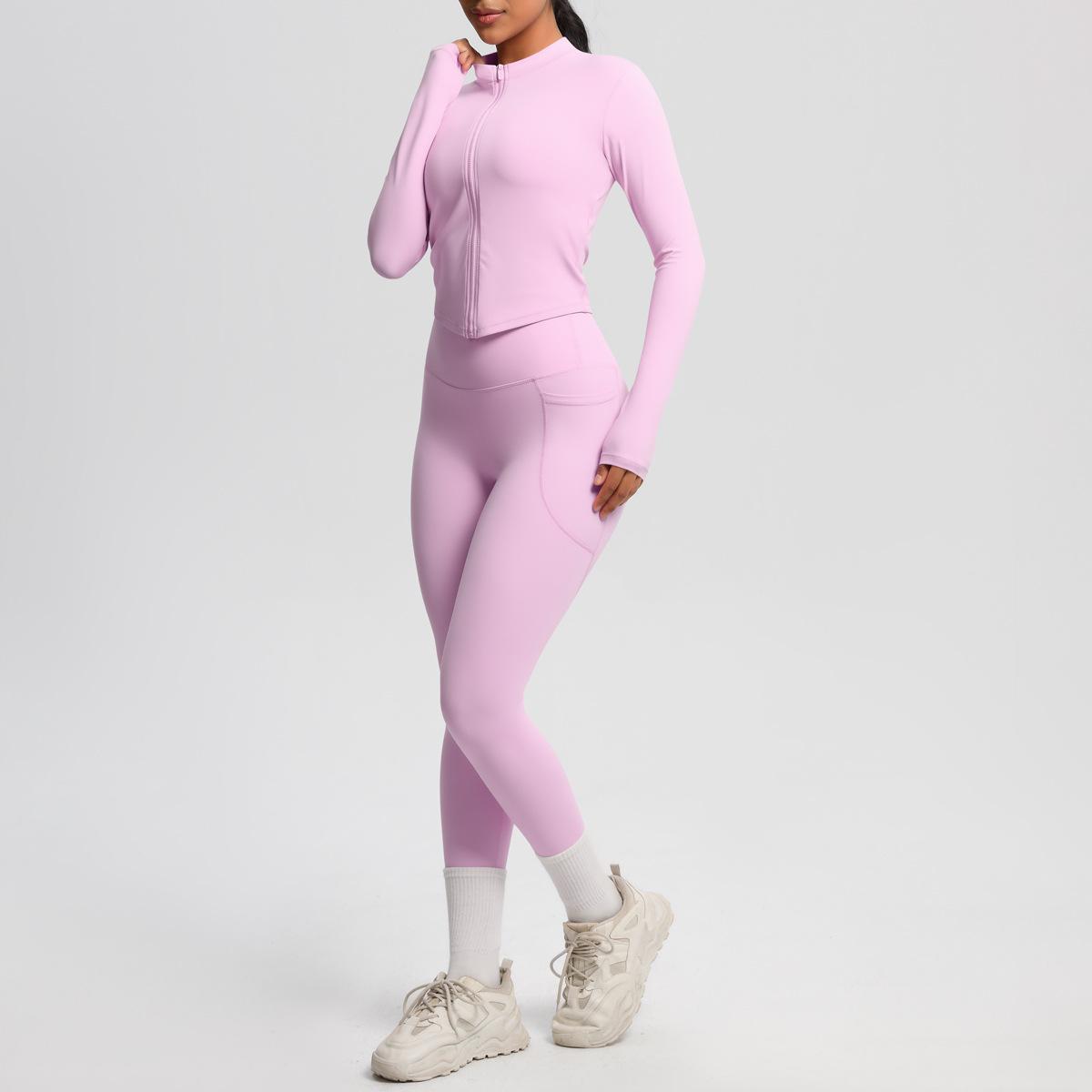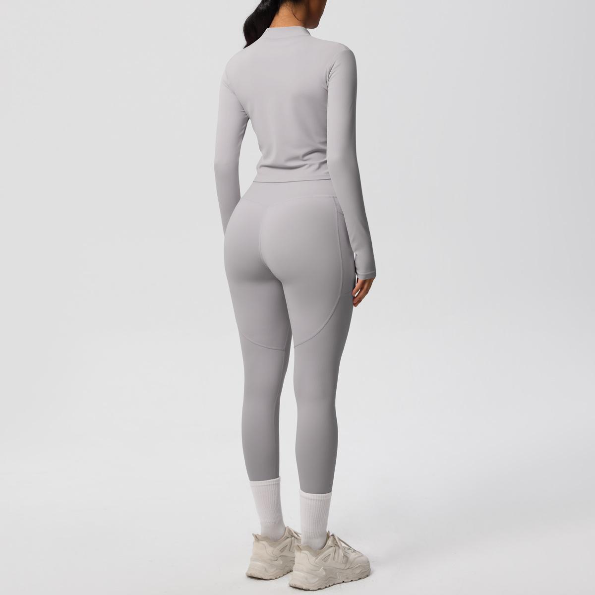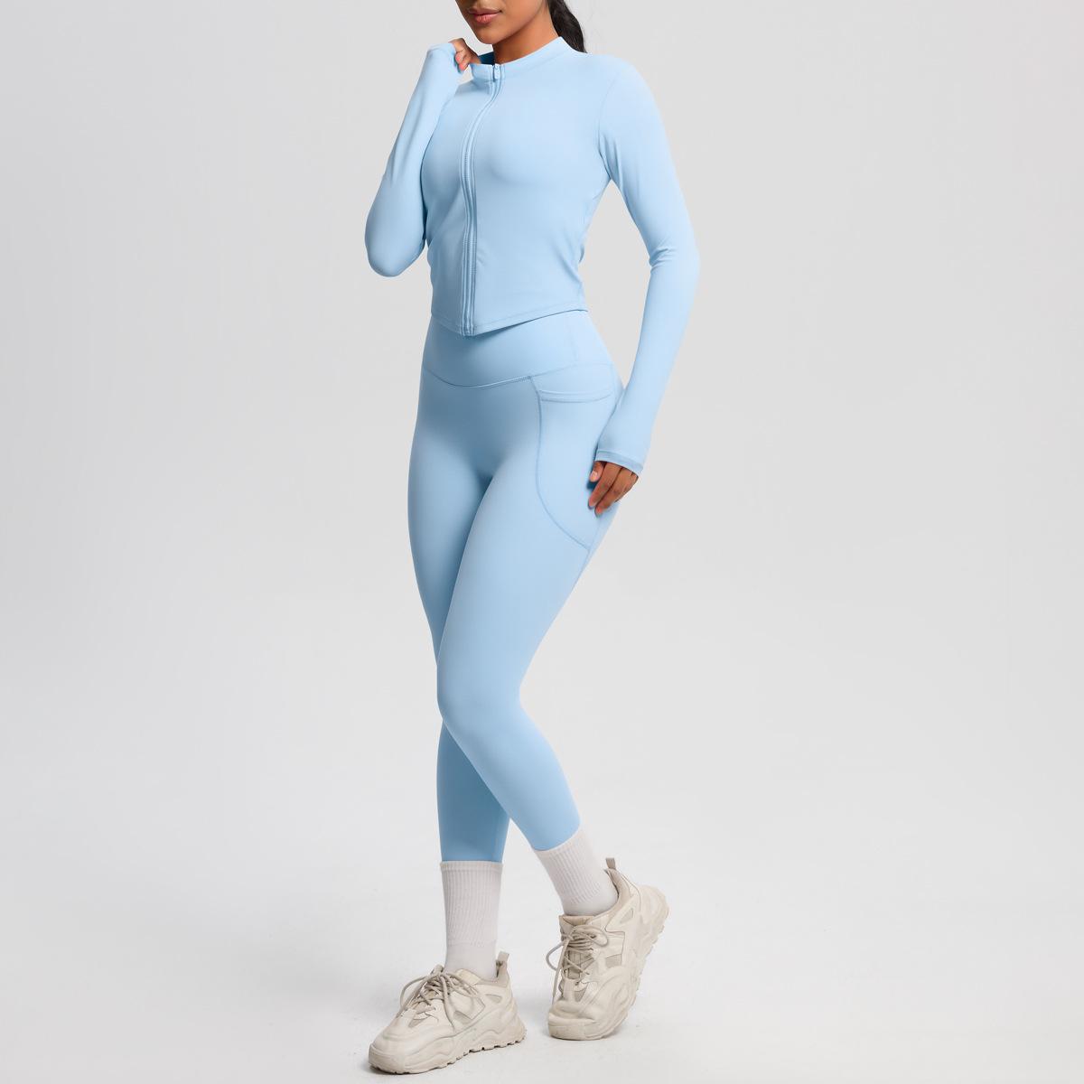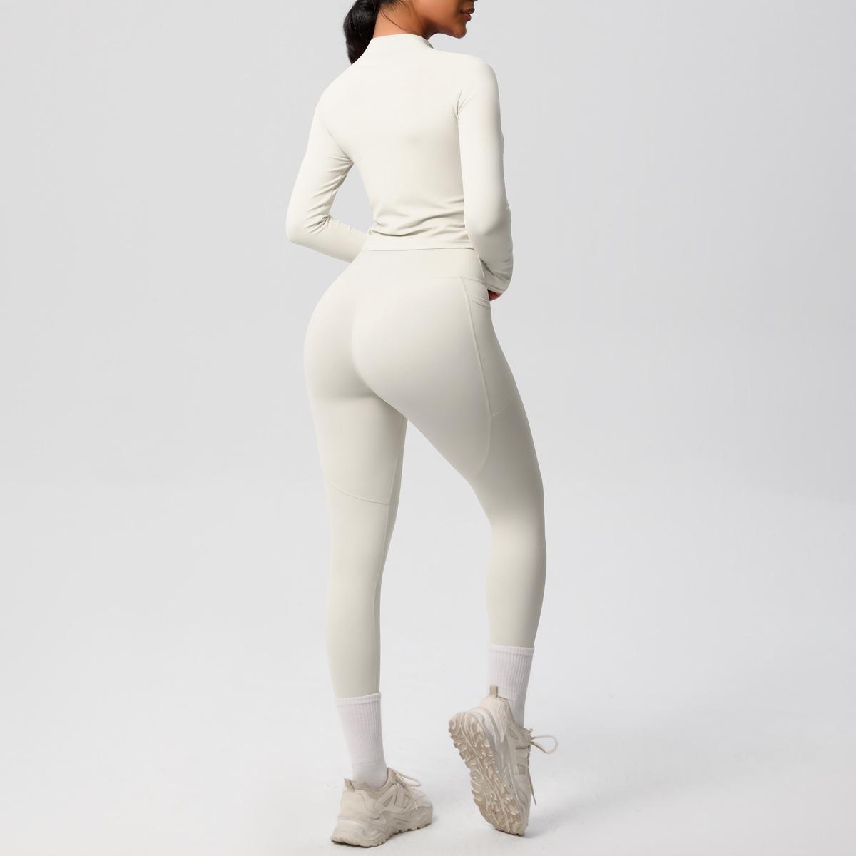 Traje de yoga de manga larga ajustado con lijado de doble cara y desnudo transfronterizo para correr al aire libre, pantalones de fitness adelgazantes, traje deportivo para mujer