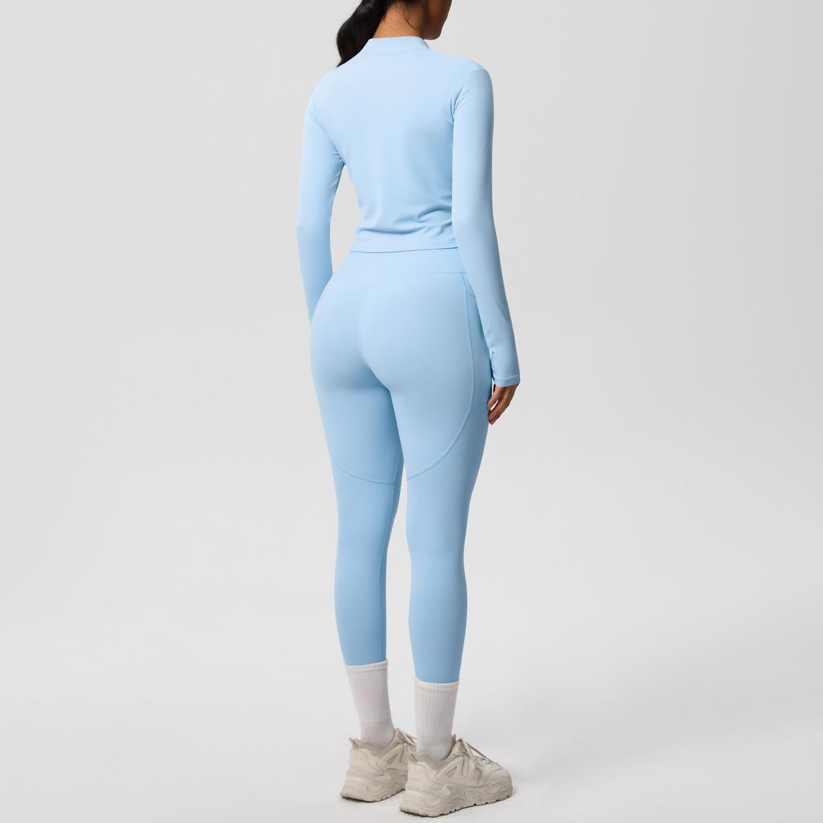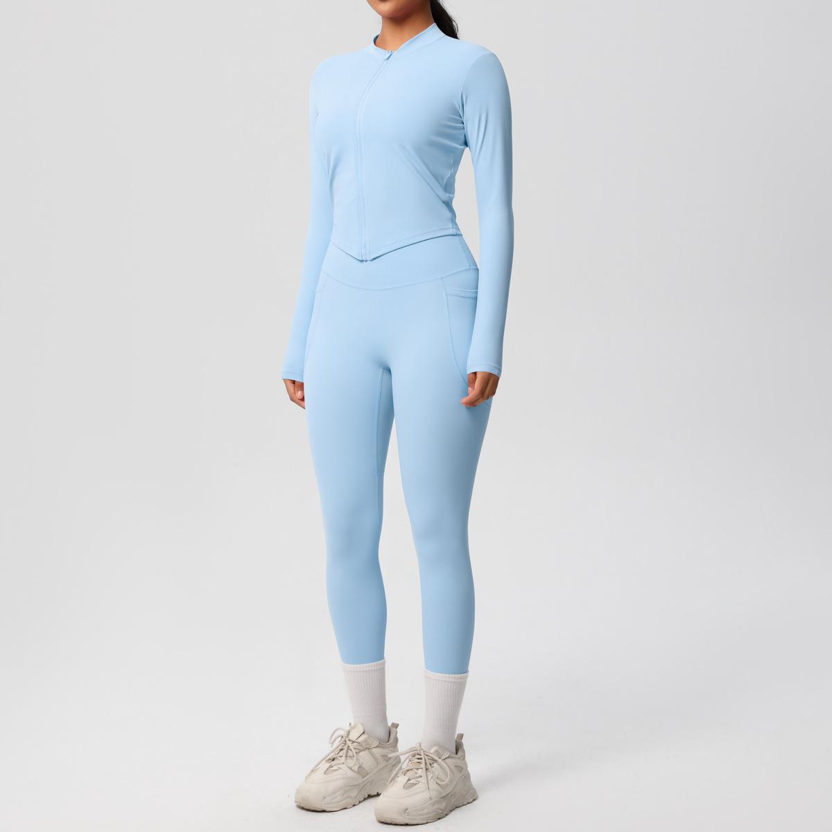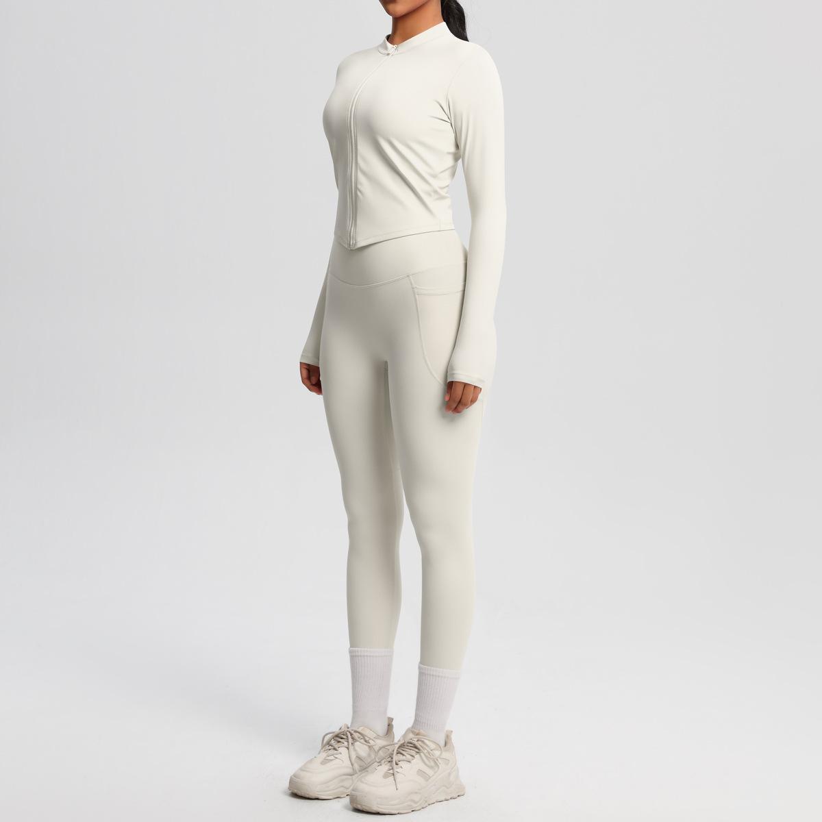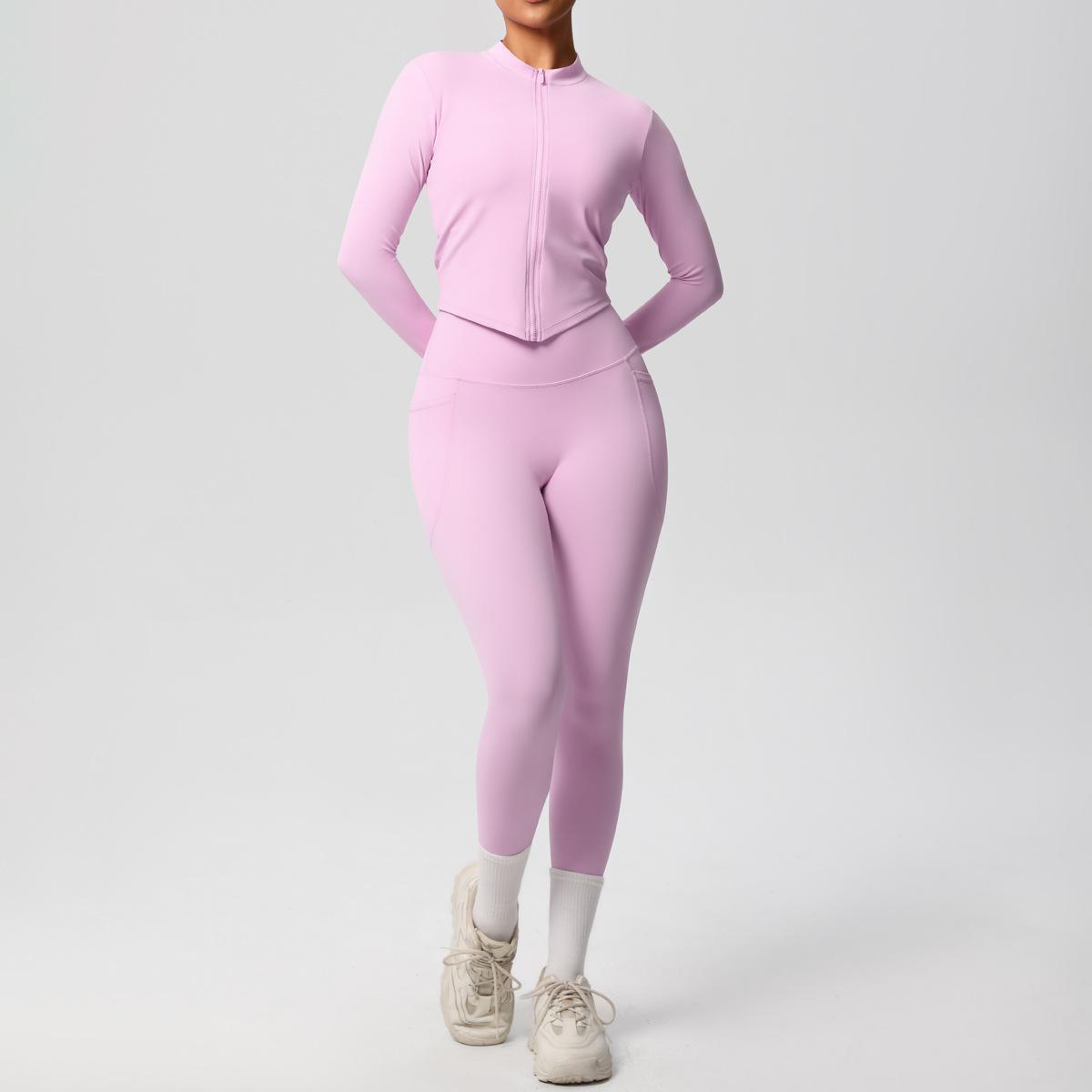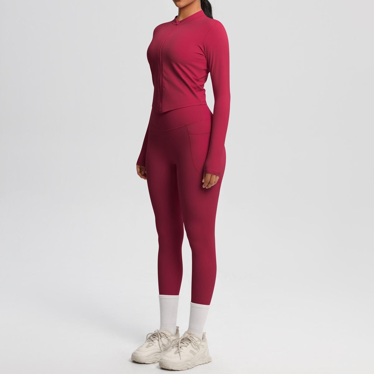 Traje de yoga de manga larga ajustado con lijado de doble cara y desnudo transfronterizo para correr al aire libre, pantalones de fitness adelgazantes, traje deportivo para mujer