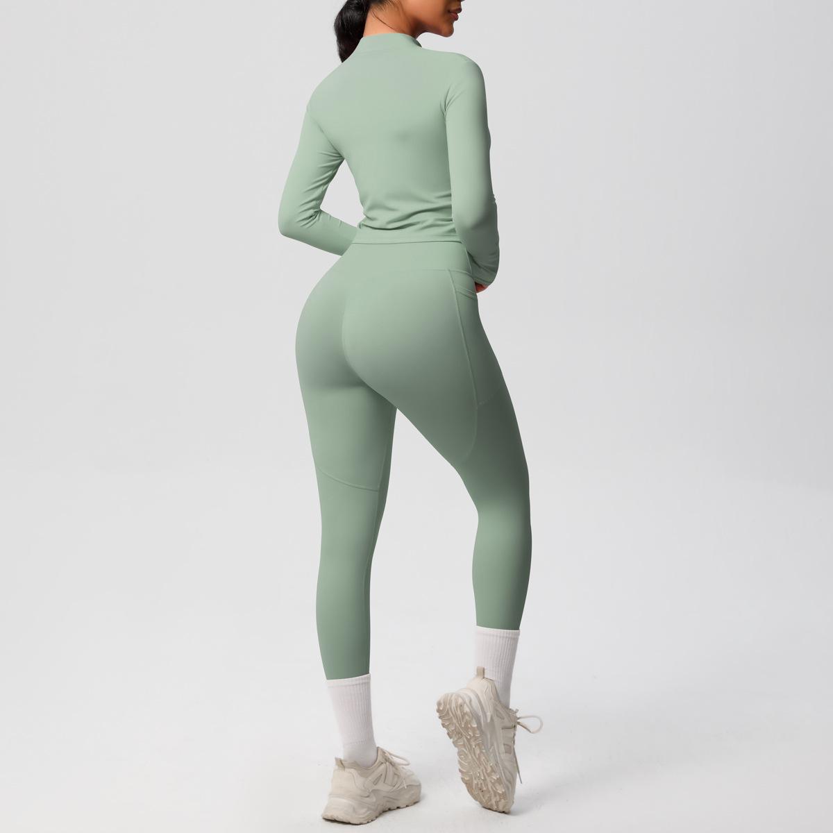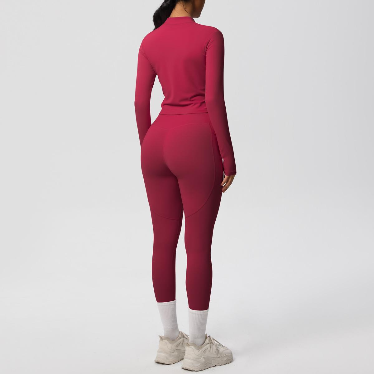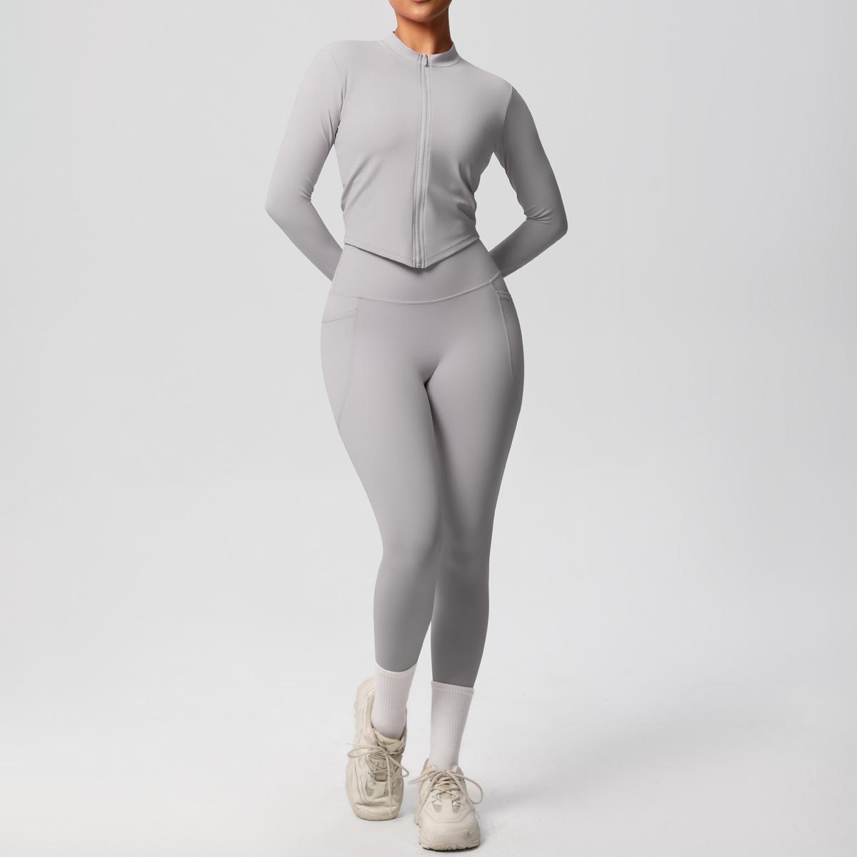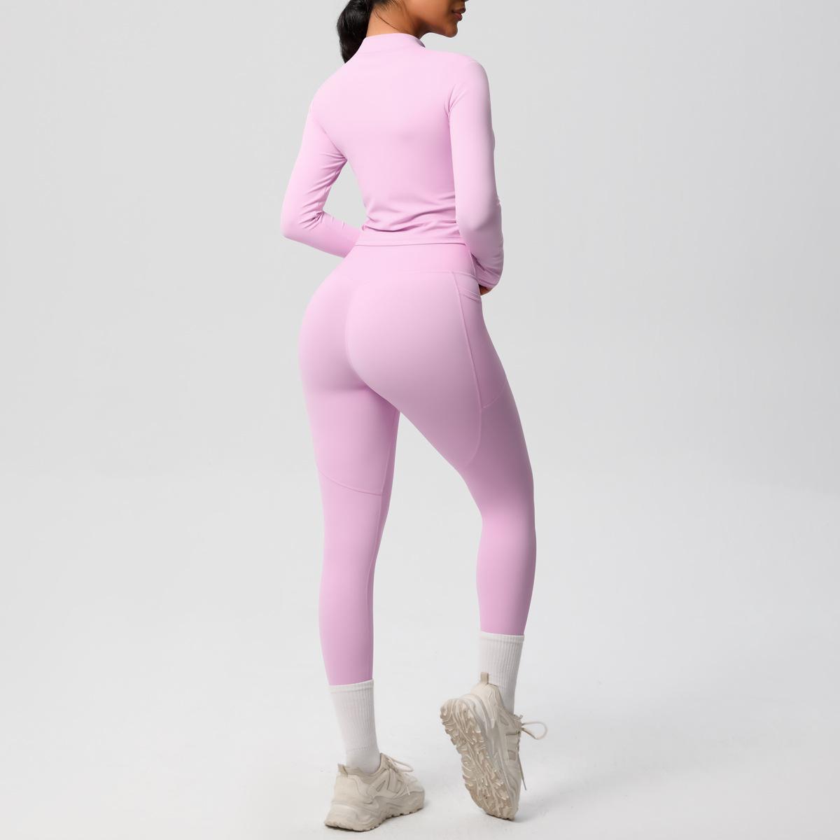 Traje de yoga de manga larga ajustado con lijado de doble cara y desnudo transfronterizo para correr al aire libre, pantalones de fitness adelgazantes, traje deportivo para mujer