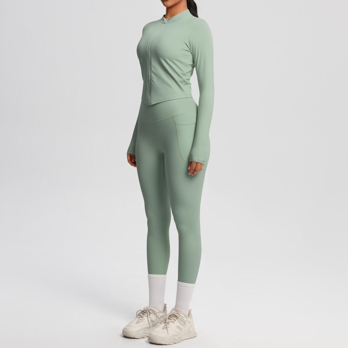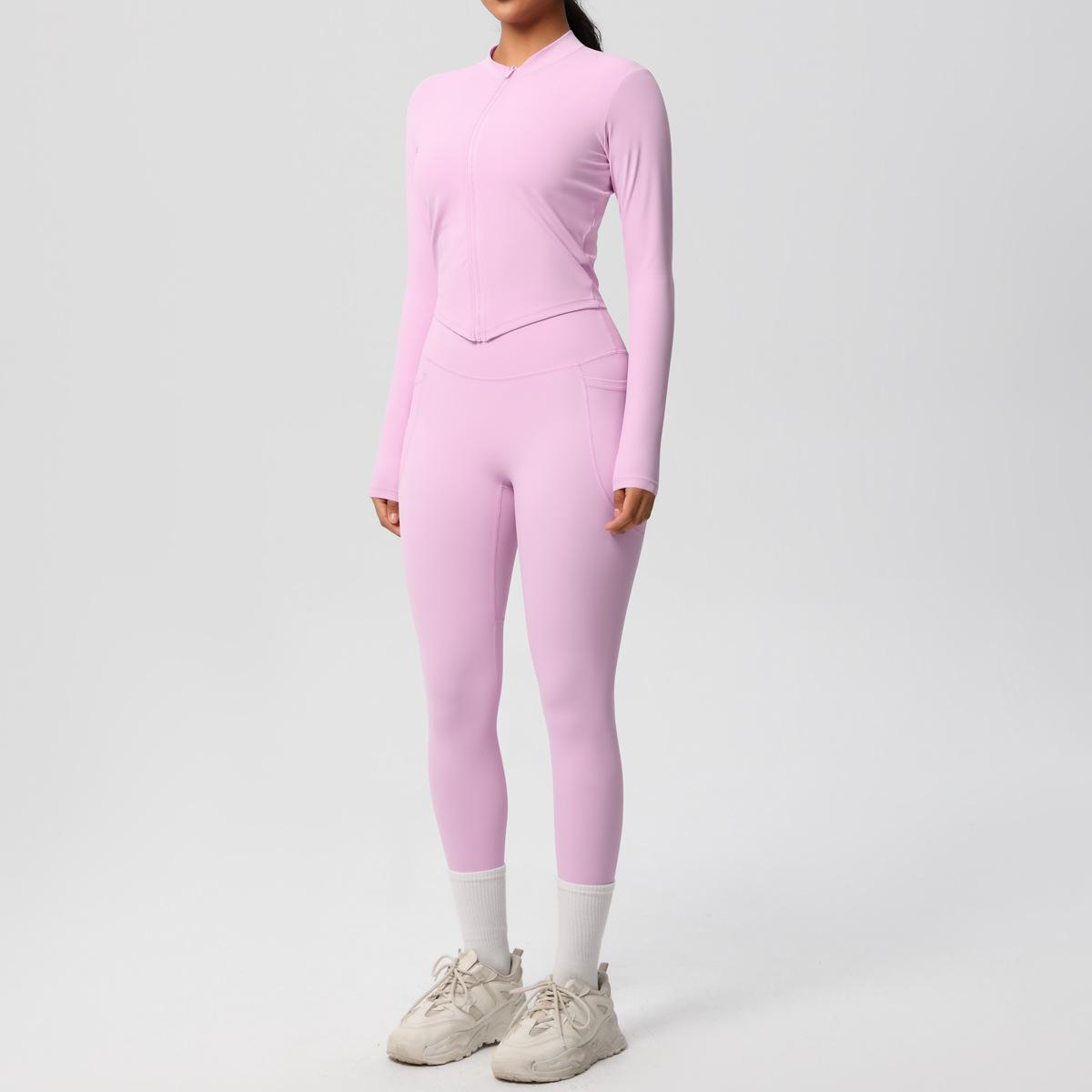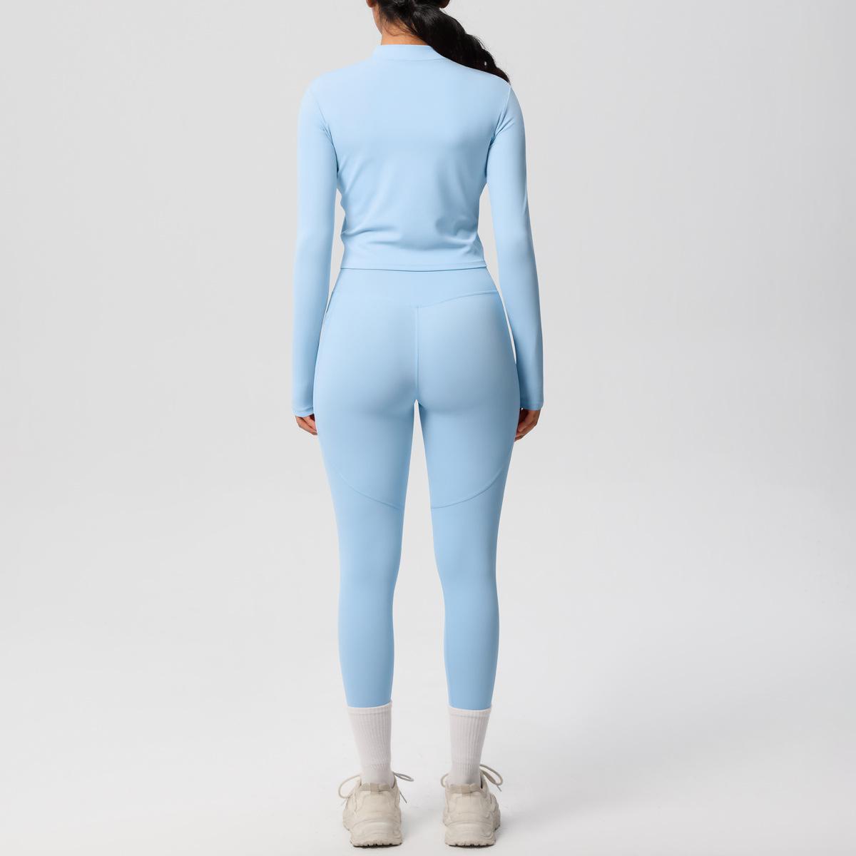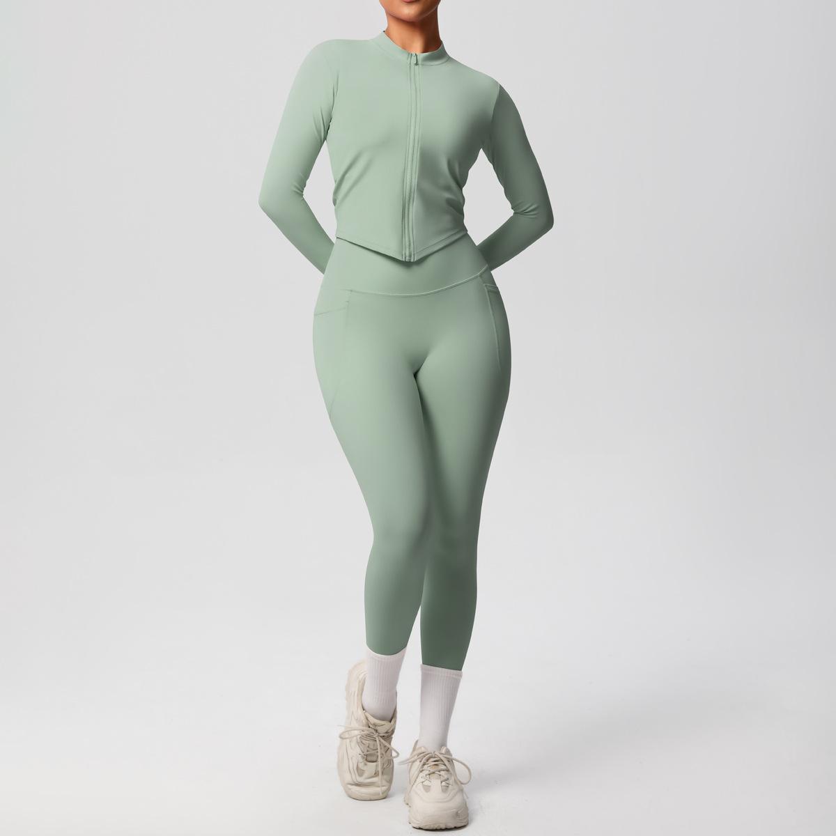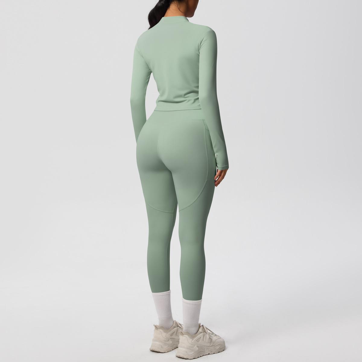 Traje de yoga de manga larga ajustado con lijado de doble cara y desnudo transfronterizo para correr al aire libre, pantalones de fitness adelgazantes, traje deportivo para mujer