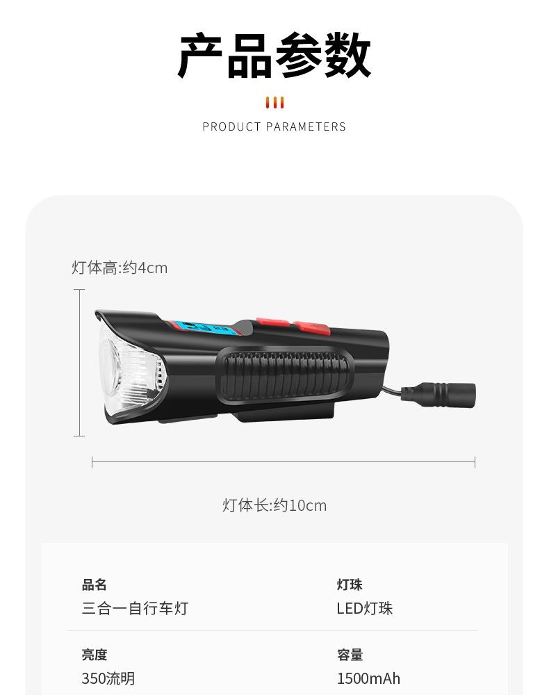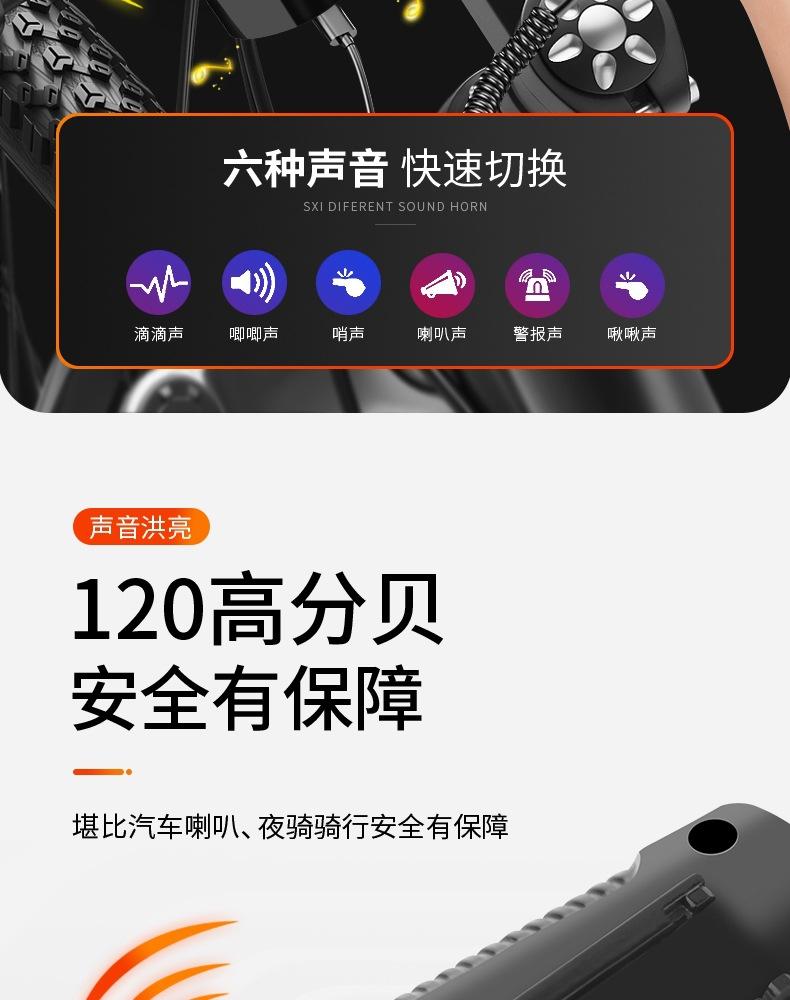 Luz de Bicicleta, Luz Fuerte, Ciclismo Nocturno, Faro para Bicicleta de Montaña, Carga USB, Timbre para Bicicleta para Niños, Bocina Eléctrica, Equipo de Ciclismo