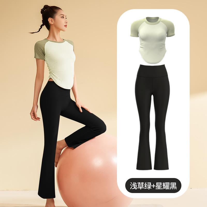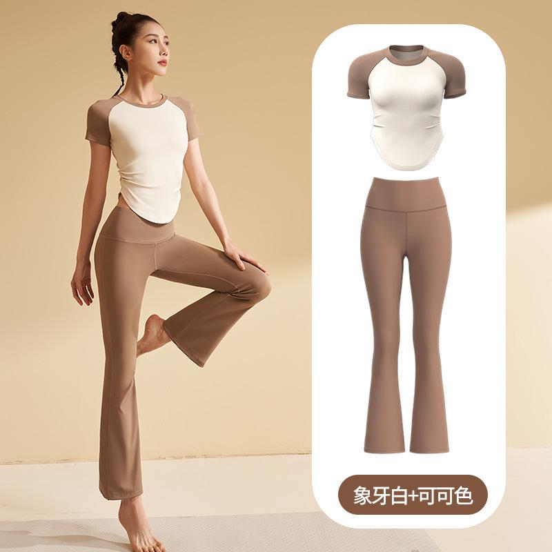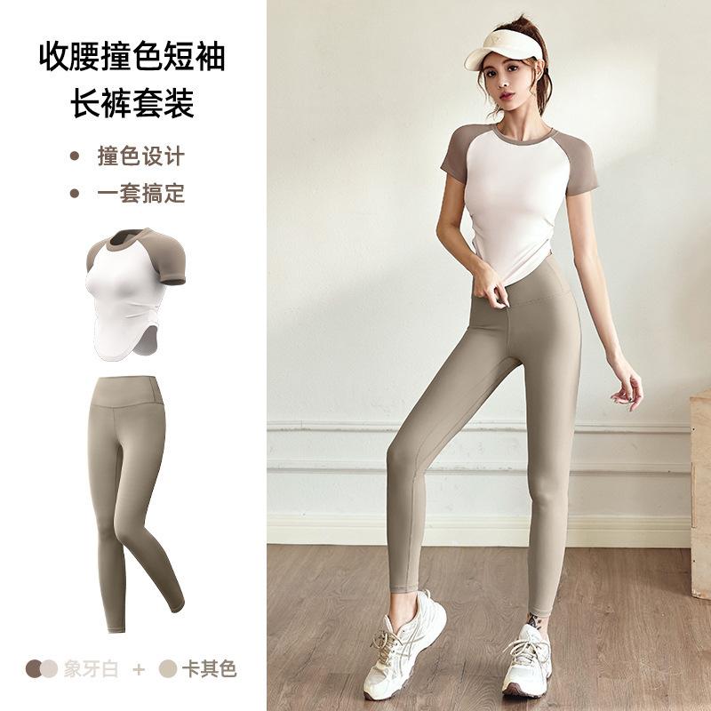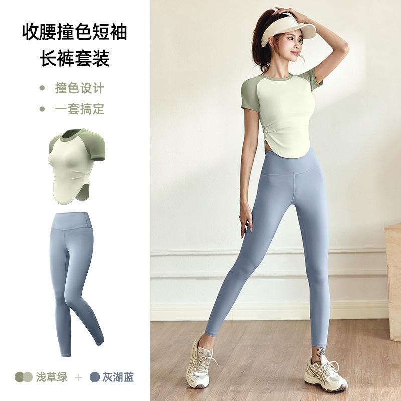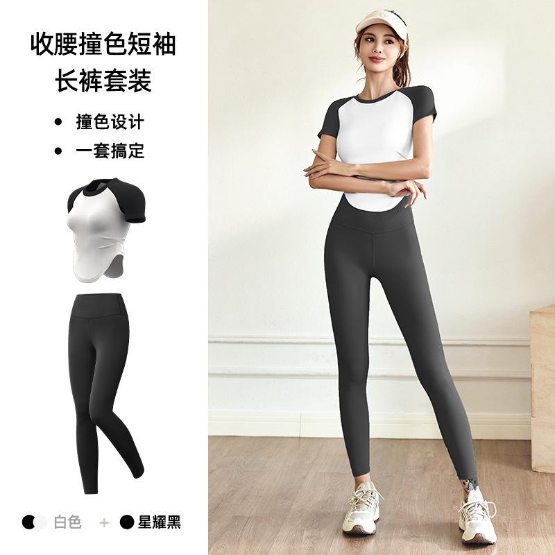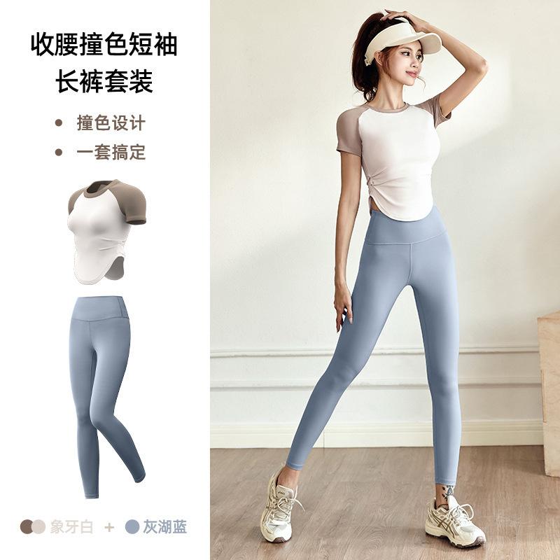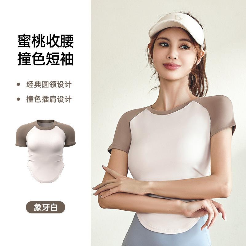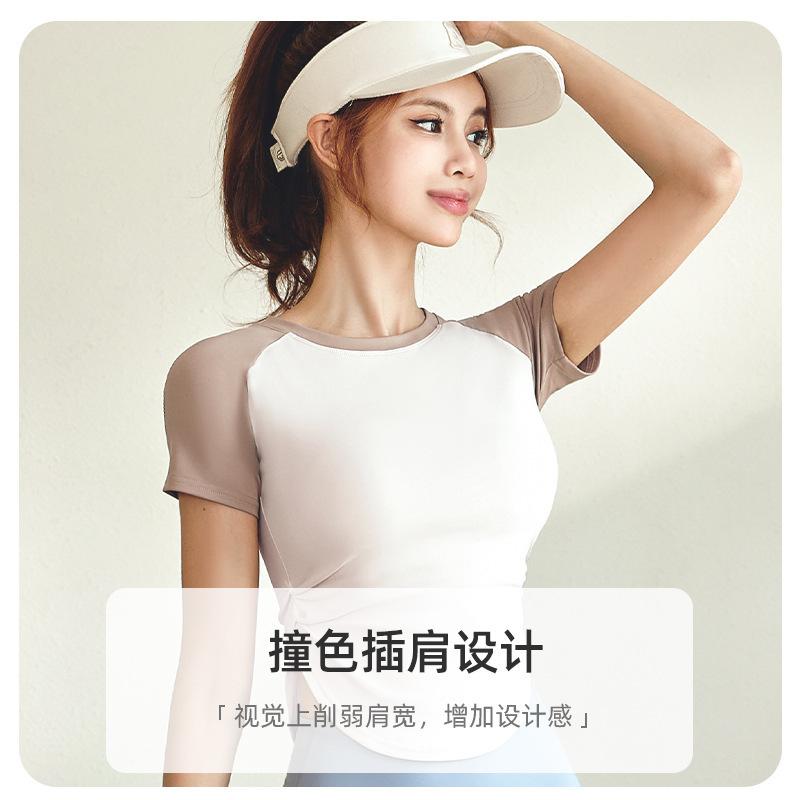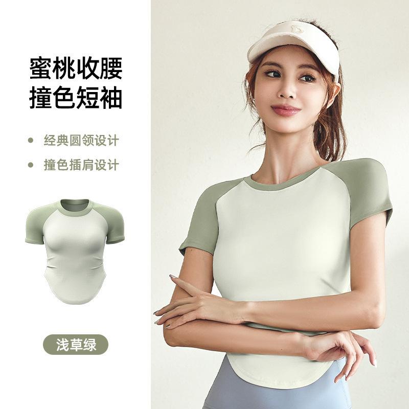 Pantalones de fitness para correr de manga corta plisados con contraste de color de fábrica, traje de yoga desnudo para mujer, pantalones deportivos para exteriores.