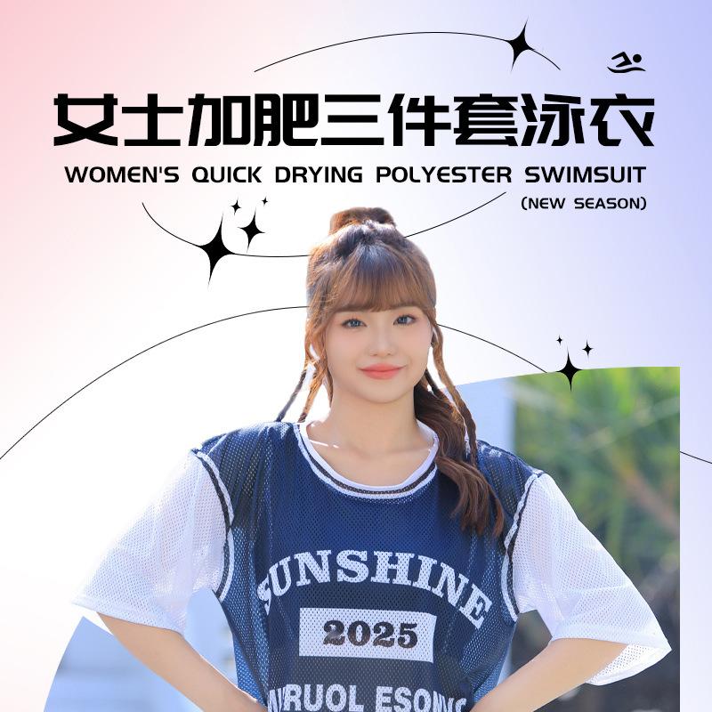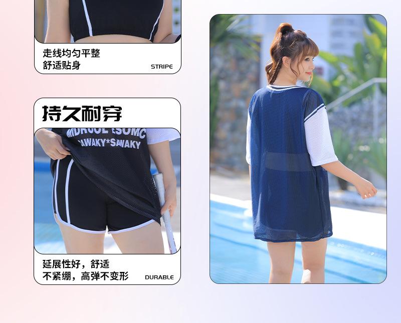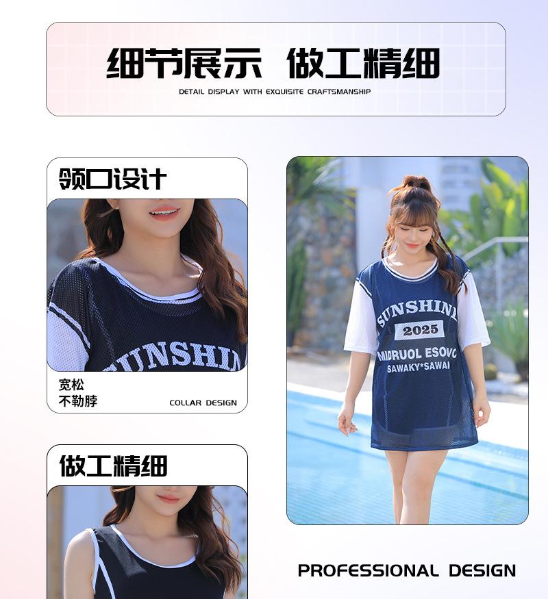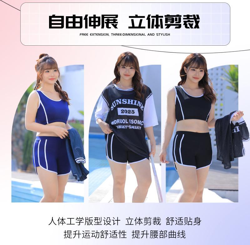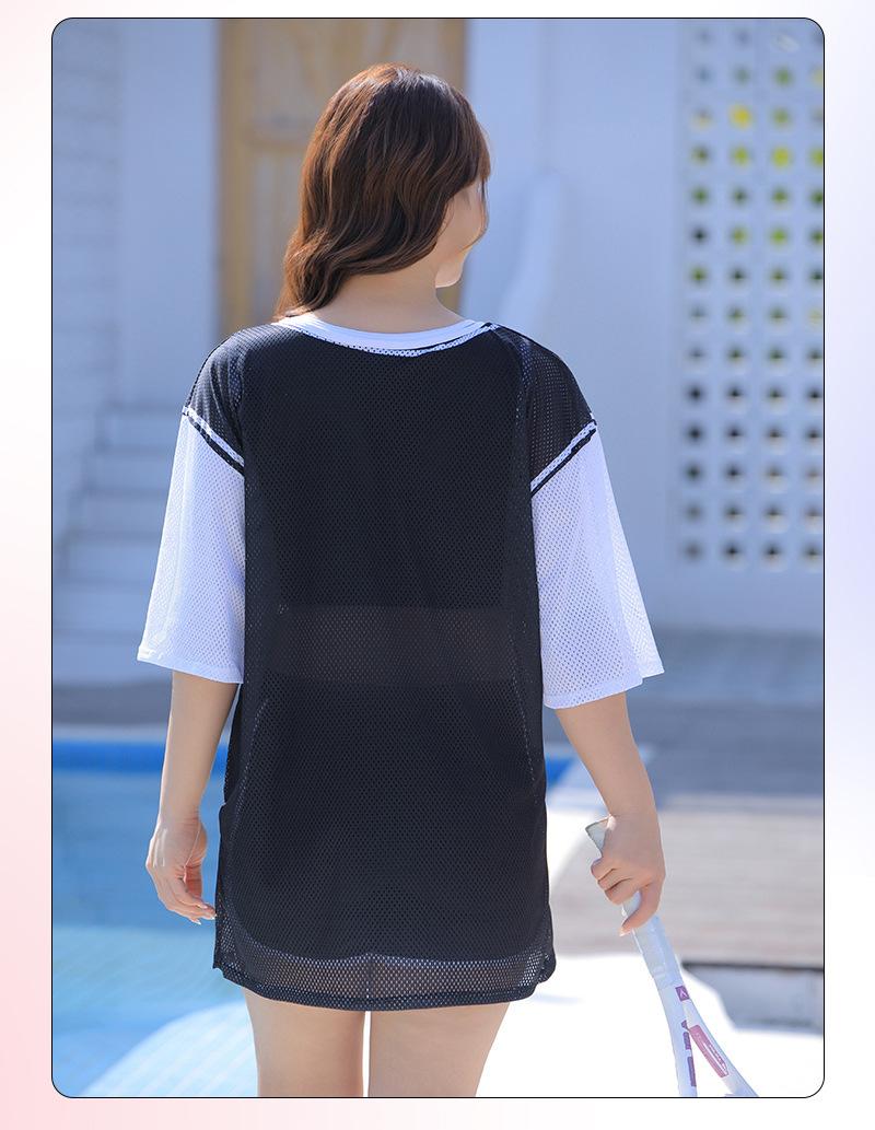 Traje de baño de talla grande para mujer, conjunto de tres piezas dividido, blusa de manga larga con agujeros, traje de baño adelgazante para chica gordita, para vacaciones en la playa