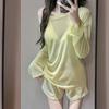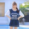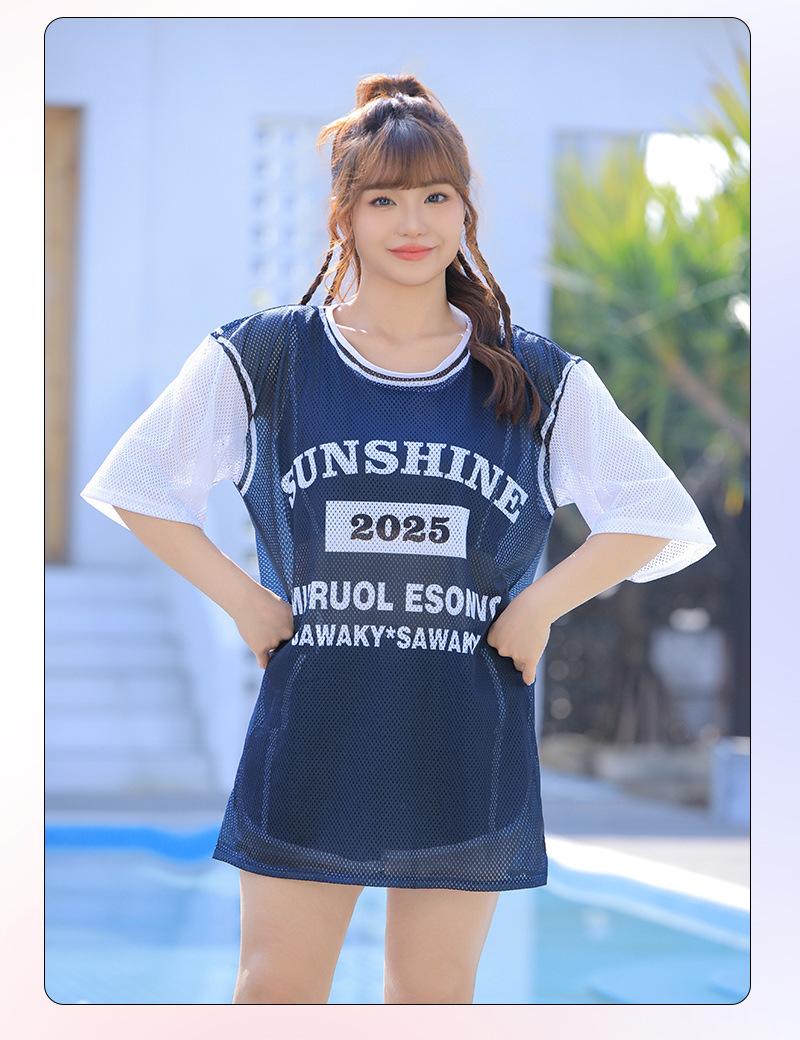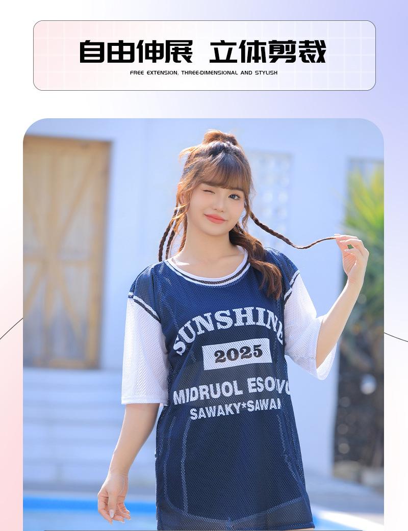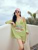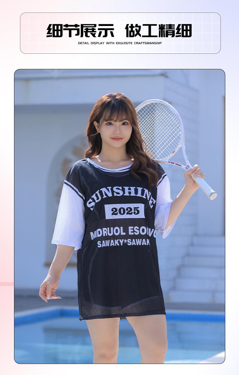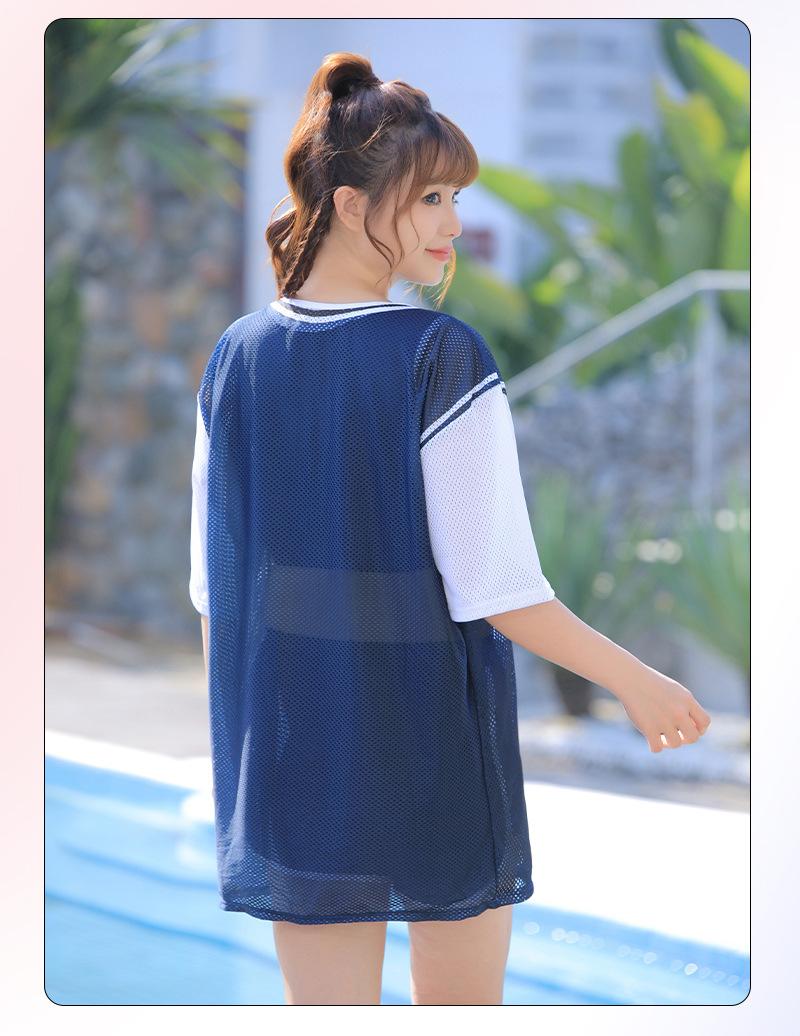 Traje de baño de talla grande para mujer, conjunto de tres piezas dividido, blusa de manga larga con agujeros, traje de baño adelgazante para chica gordita, para vacaciones en la playa