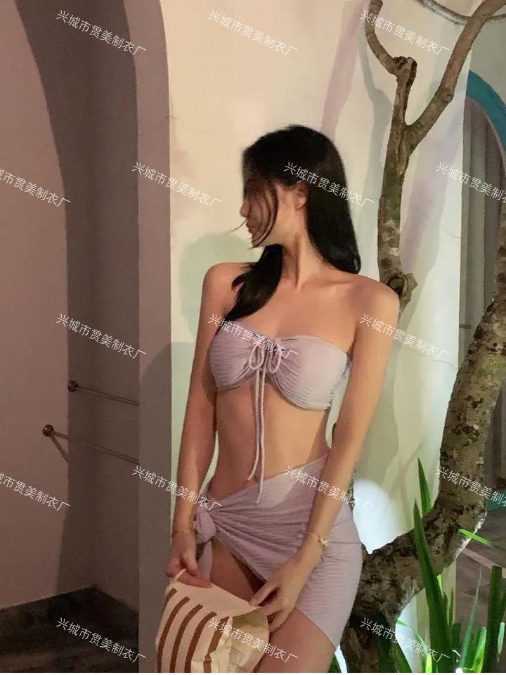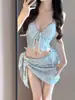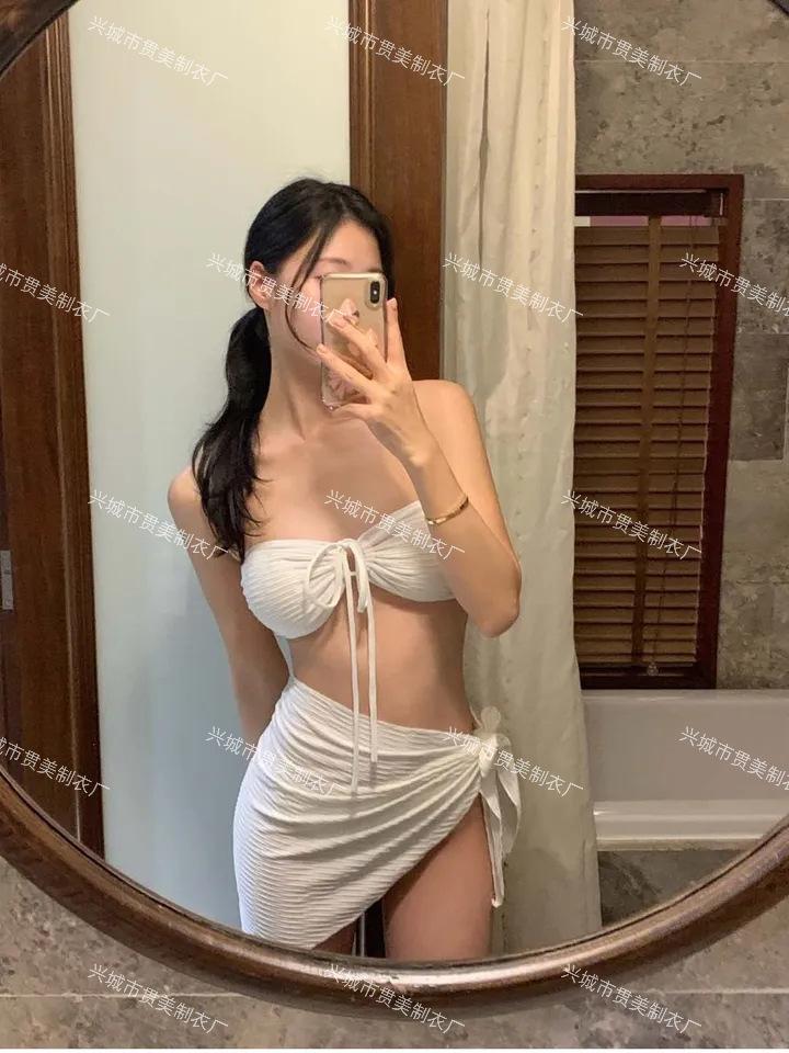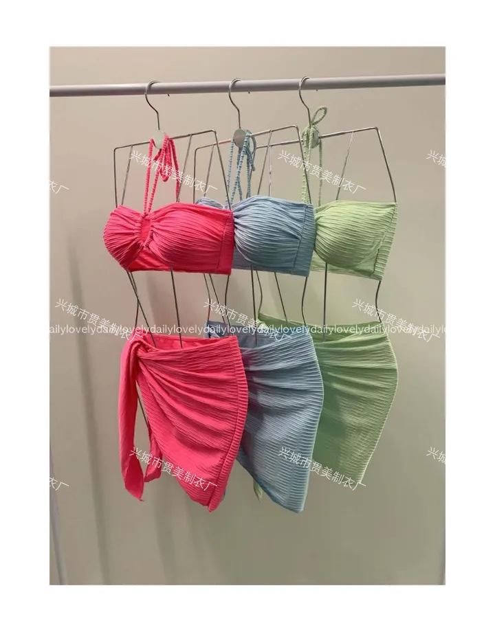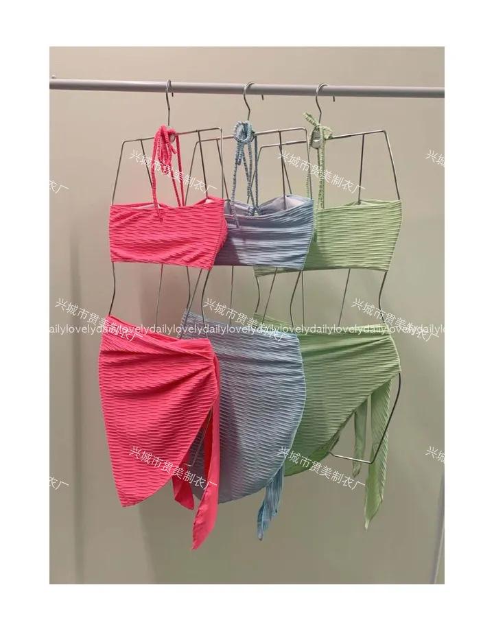 [6 Colores] Bikini de Tres Piezas de Estilo Lujoso Puro de Alta Gama Sexy Dividido Estilo Resort Primavera Caliente Look Adelgazante para Mujer