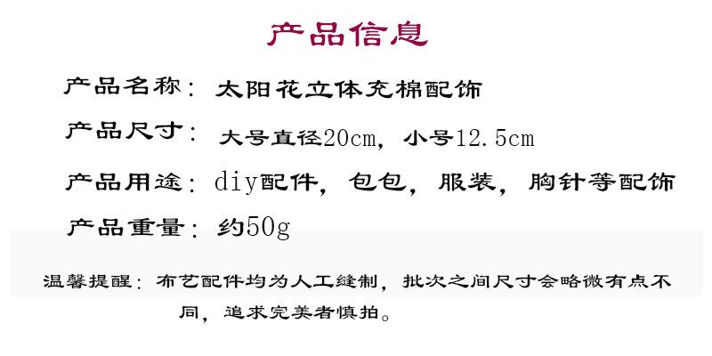Accesorios de girasol flor pequeña tridimensional rellena de algodón tela accesorios de ropa hechos a mano diy broche accesorios de decoración de bolso grande