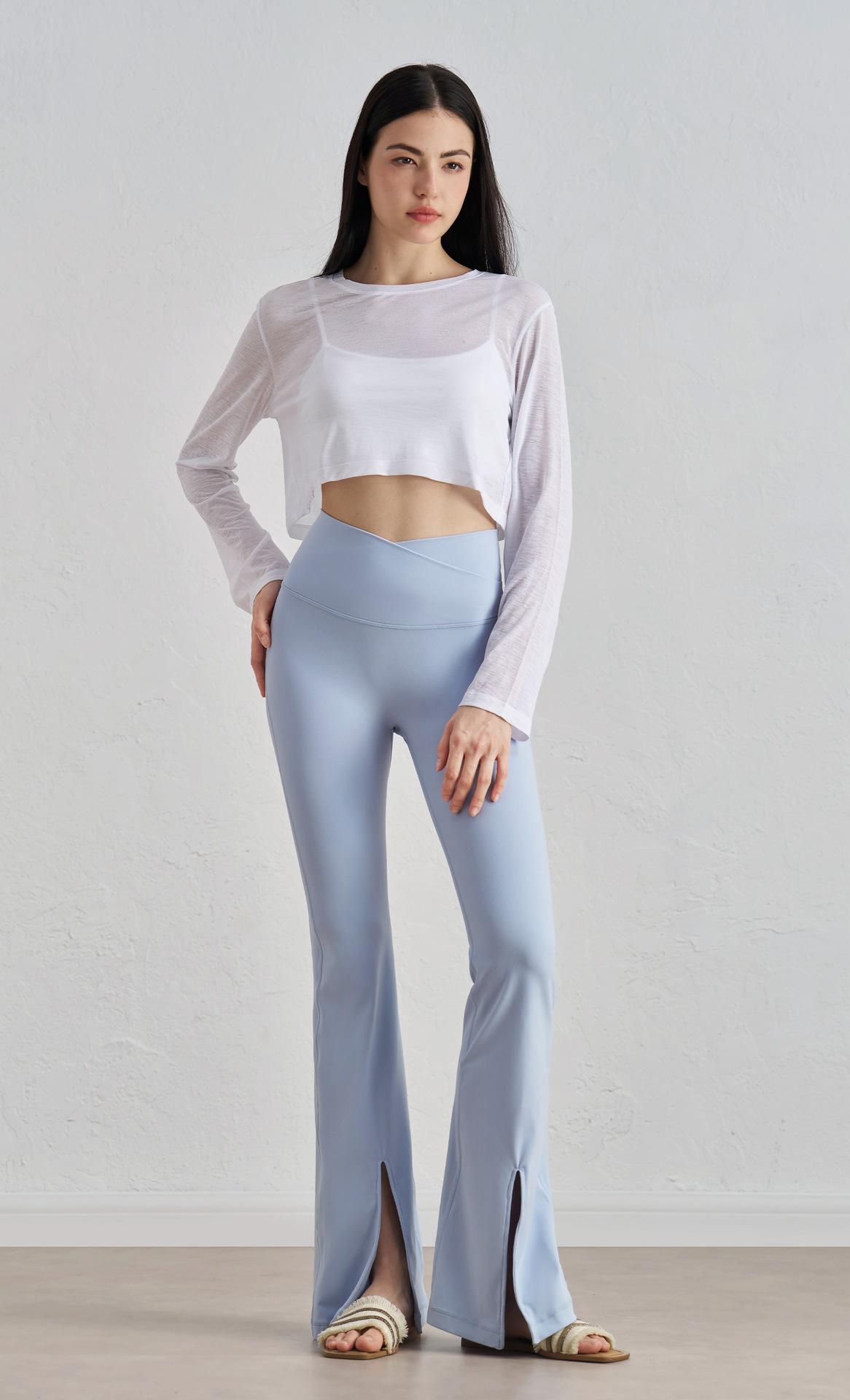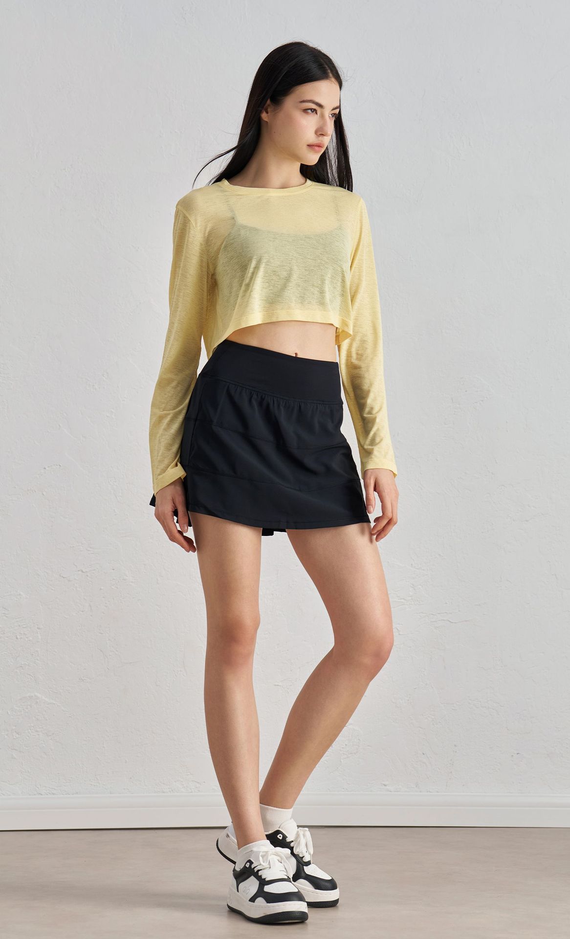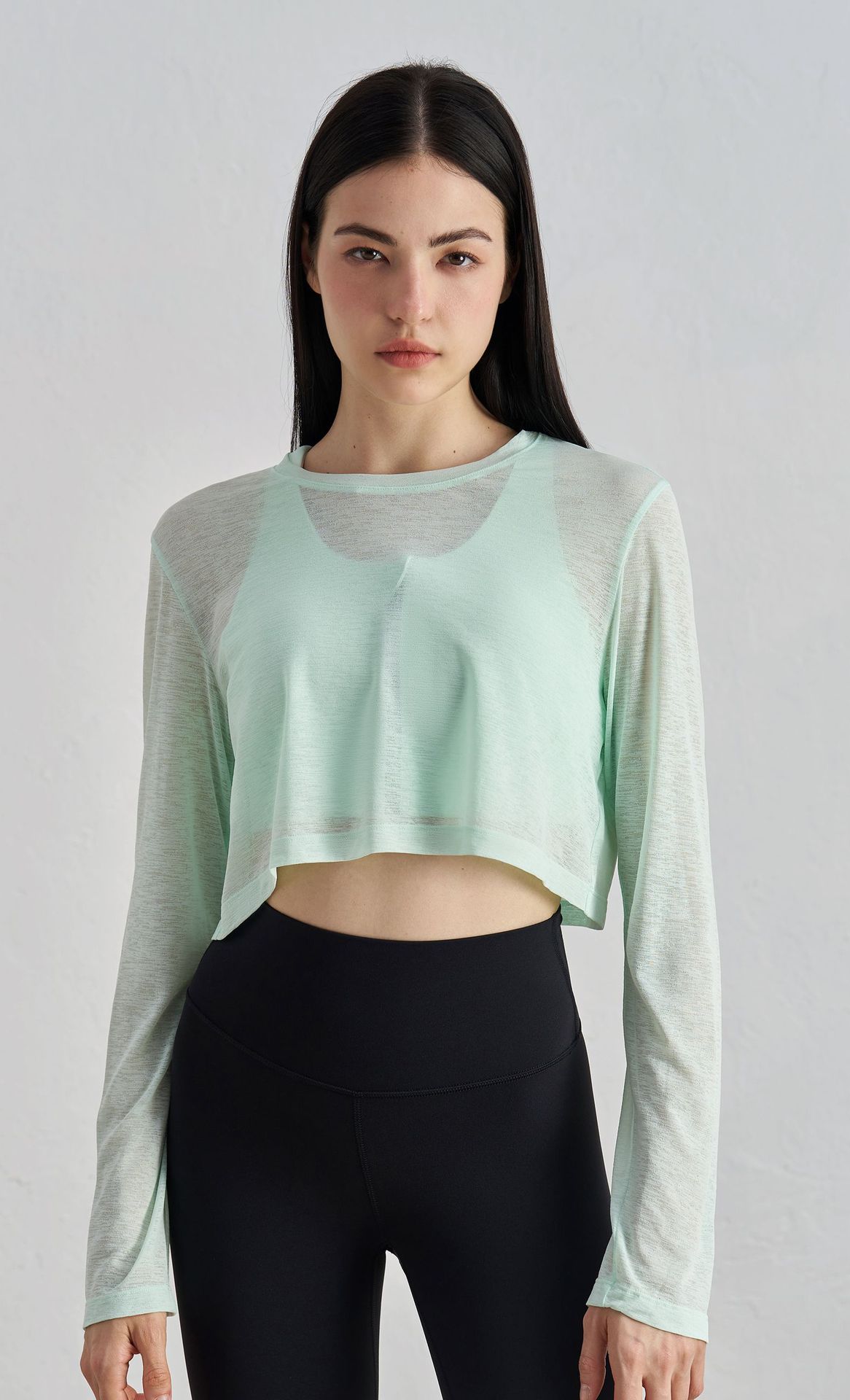 Ropa Huan Pan Primavera y Verano Nueva Ropa de Yoga Manga Larga Cintura Descubierta Top Deportivo Corto Fitness al Aire Libre Yoga Manga Larga Mujer