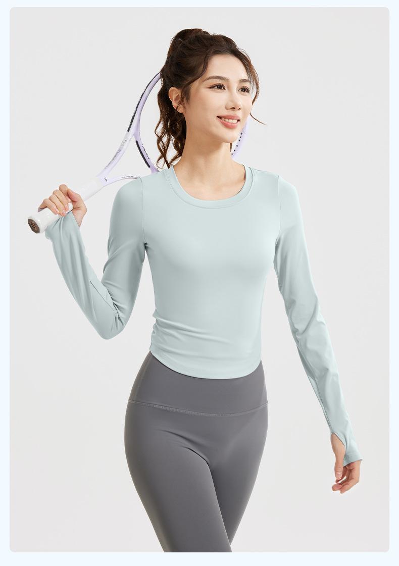 Nuevo Traje de Yoga de Pantalones Nueve Puntos de Manga Larga Ajustado Adelgazante Deportivo Sin Sujetador Deportivo con Almohadilla para el Pecho
