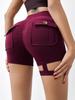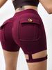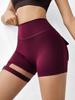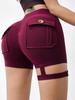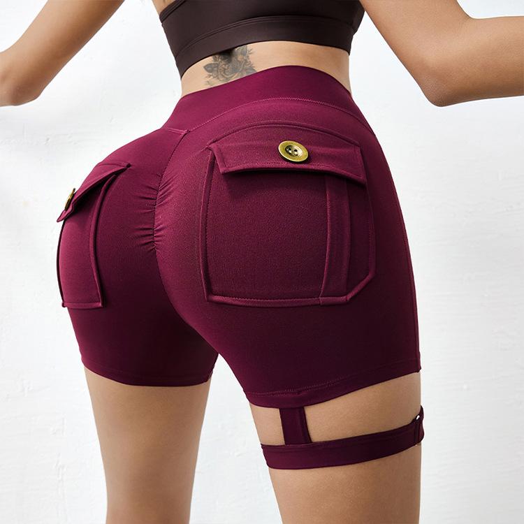 Pantalones cortos deportivos ajustados y elásticos de estilo europeo y americano con diseño de una sola pierna y color melocotón para mujer.