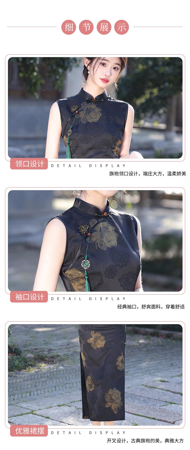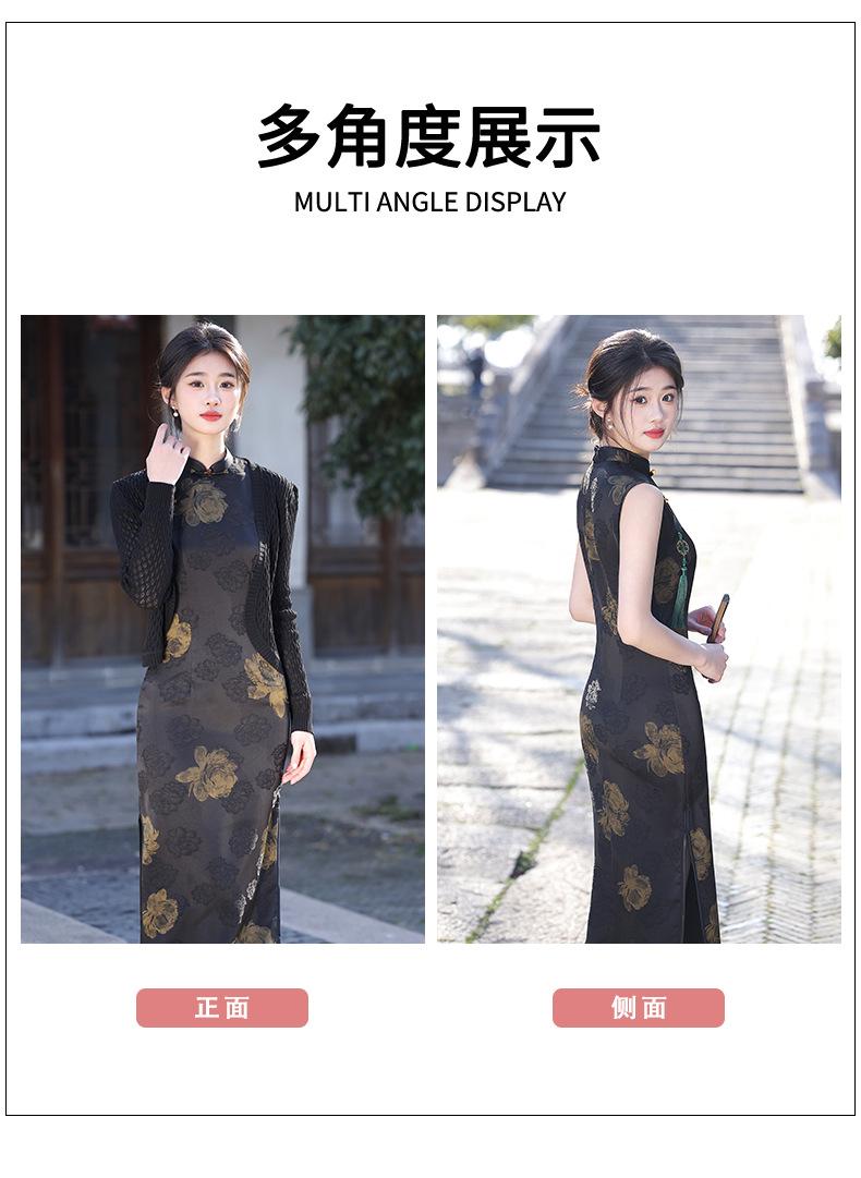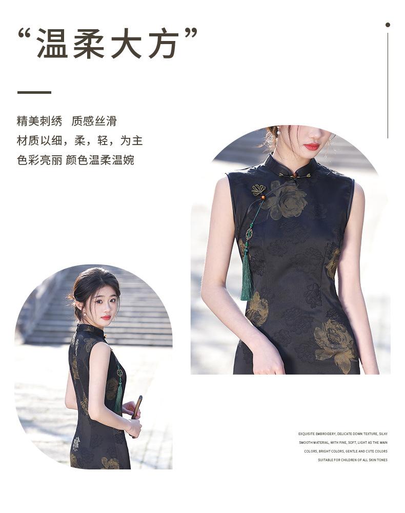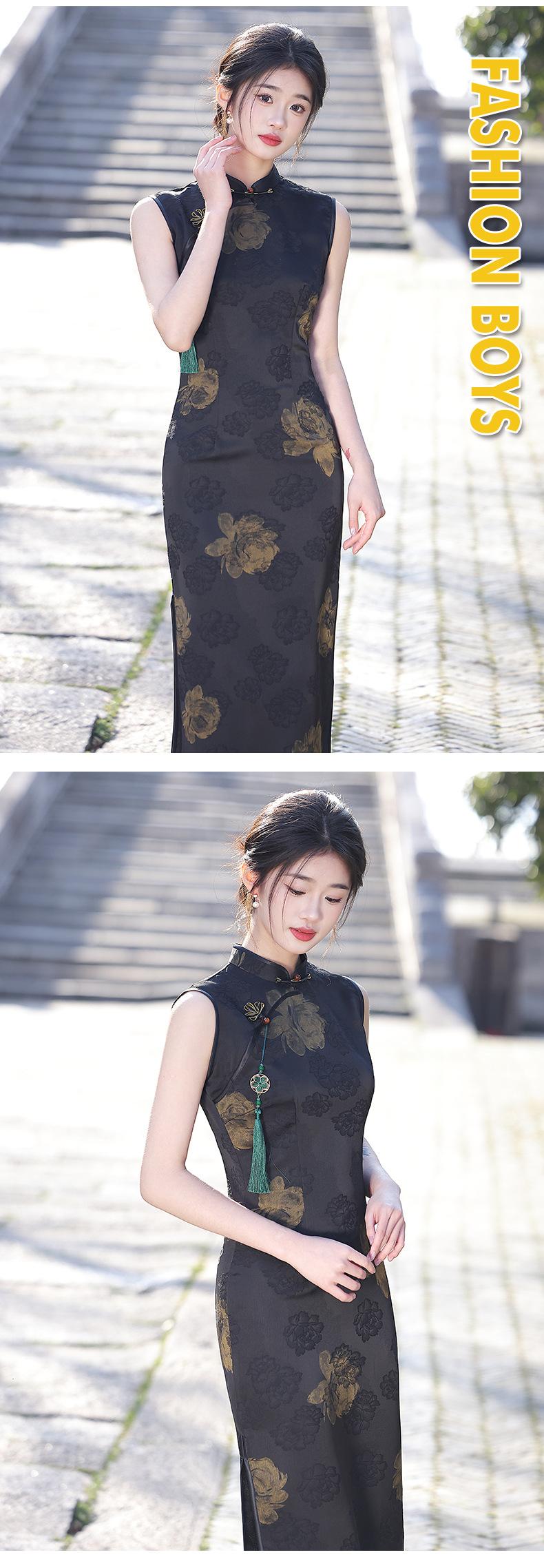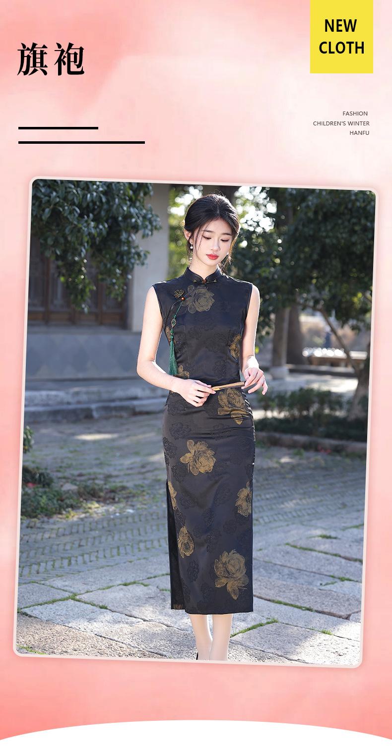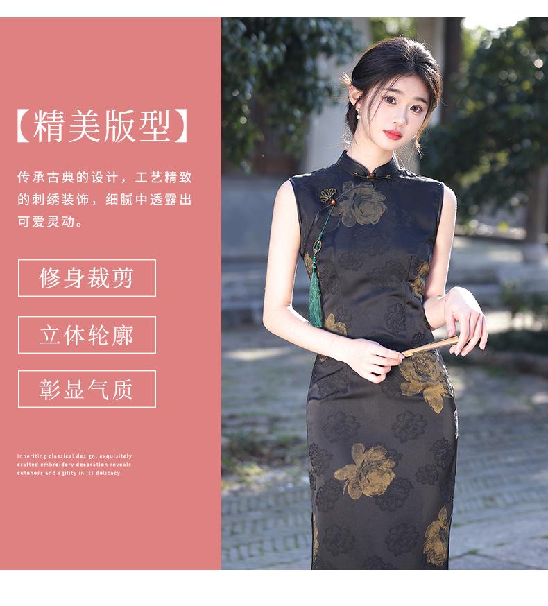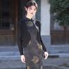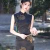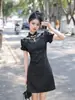 Cheongsam negro mejorado, nuevo estilo chino para niñas jóvenes, vestido elegante de verano ajustado para uso diario 2025