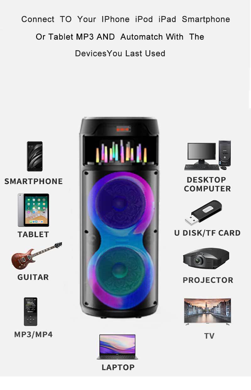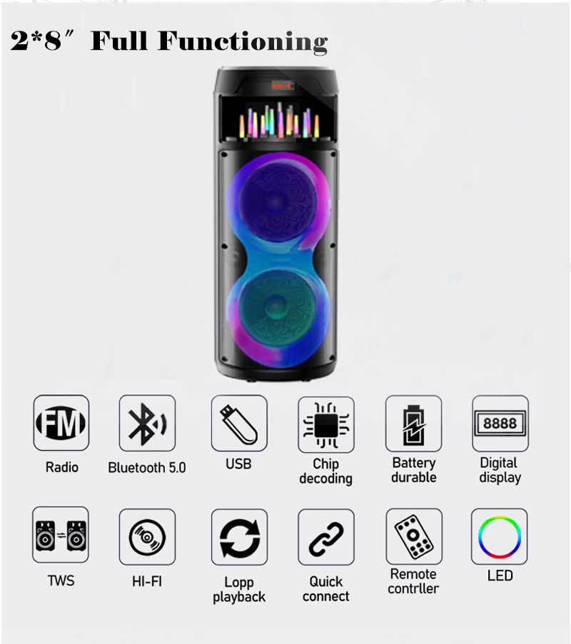 Ventas Directas de Fábrica Altavoz Bluetooth Multifunción Colorido de Plástico Doble de 8 Pulgadas Karaoke Baile Cuadrado Audio Móvil Portátil