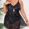 Traje de baño europeo y americano transfronterizo para comercio exterior para mujer talla grande conservador retro estampado falda de malla cubre abdomen adelgazante