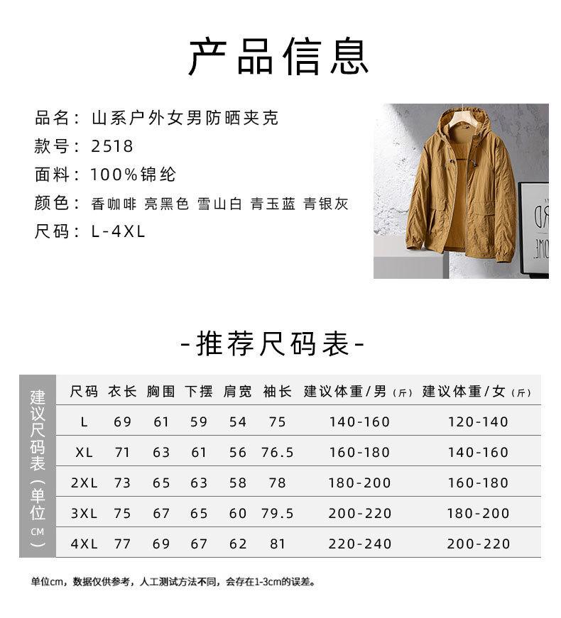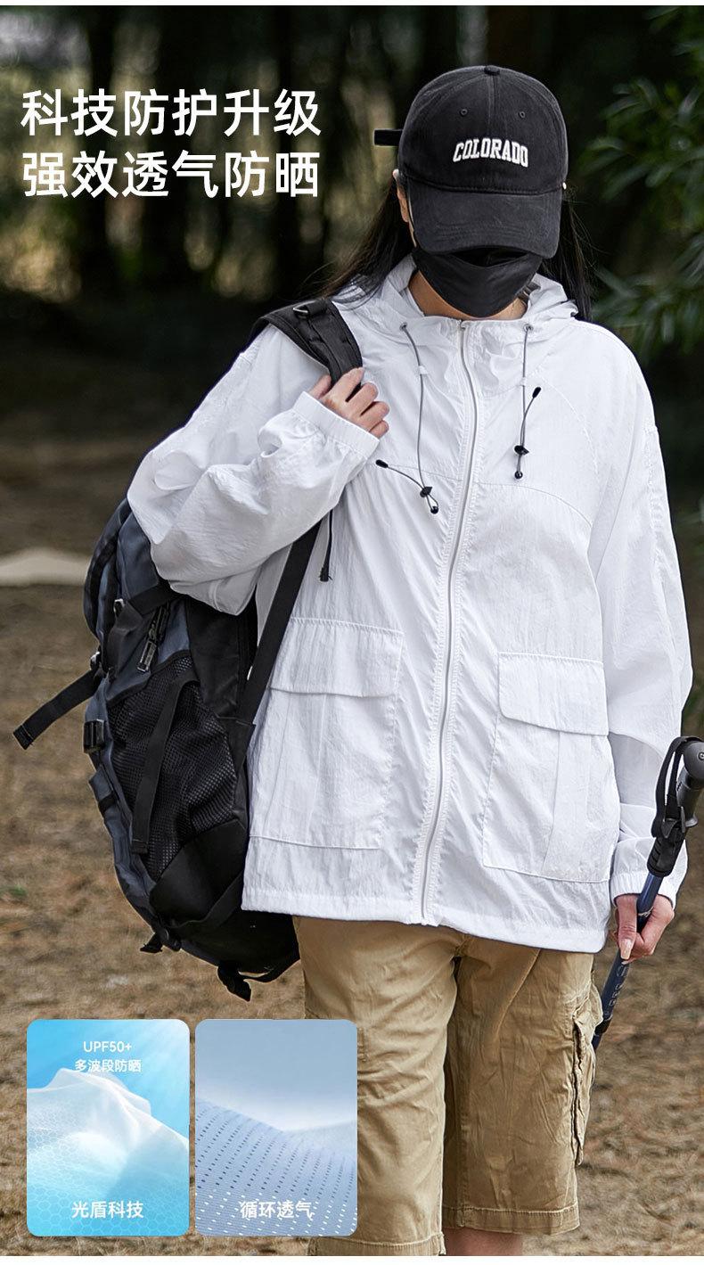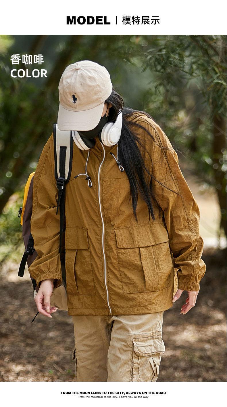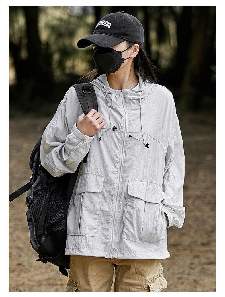 UPF50 Funcional Cortavientos Salpicaduras de agua Delgado Ligero Transpirable Pareja Exterior Montaña Chaqueta Protectora Solar Ropa de Piel
