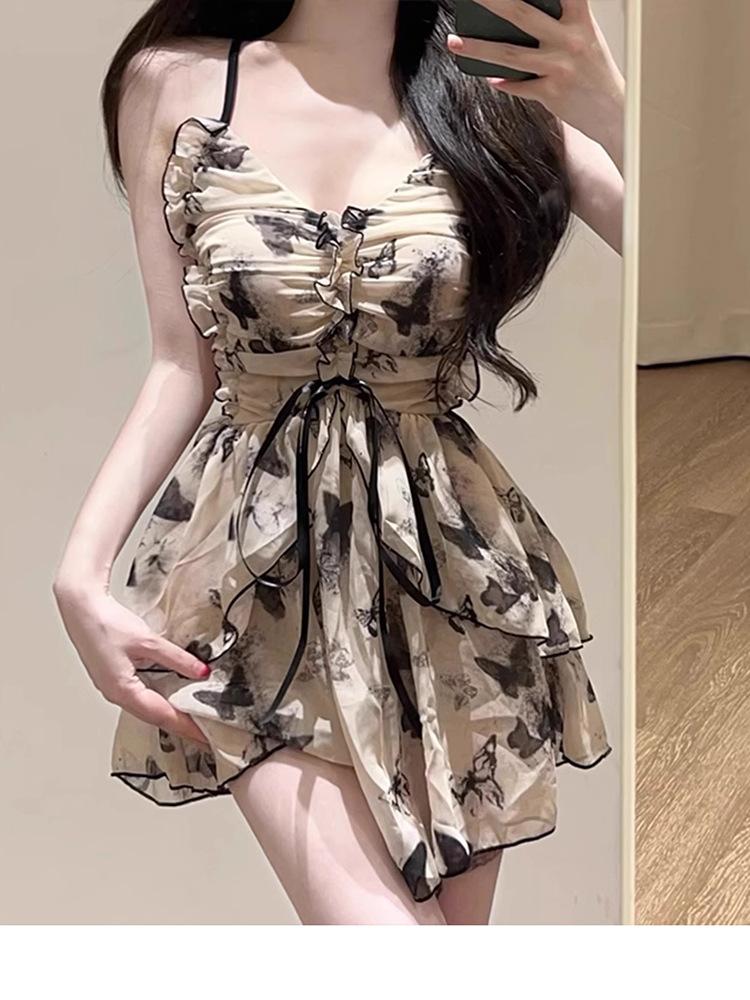 Traje de Baño para Mujer Retro Conservador Cubre Vientre Adelgazante de Una Pieza Sin Espalda Sexy Estilo Falda para Playa Aguas Termales Nueva Llegada 2025
