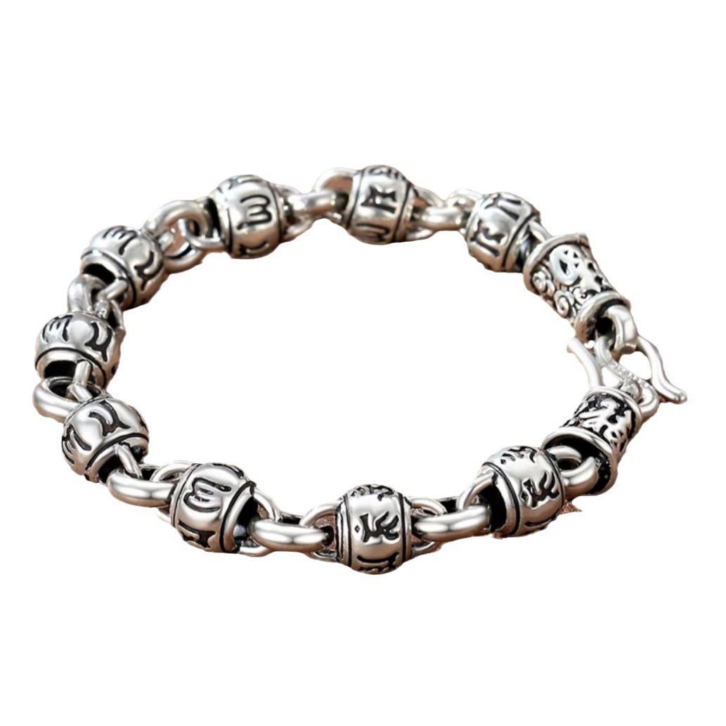 Xiang Xu 2024 - Pulsera de la fortuna con cuentas redondas de seis caracteres desgastados, estilo retro, para regalar a tu pareja.